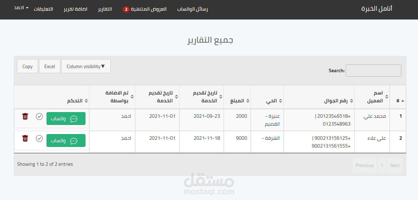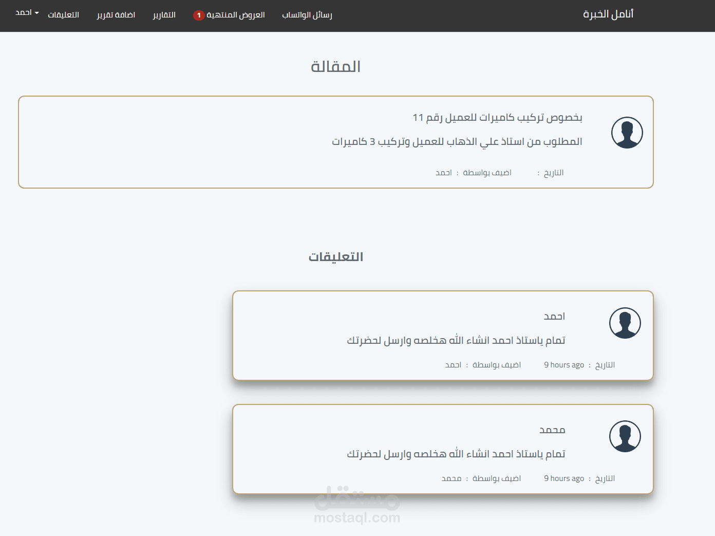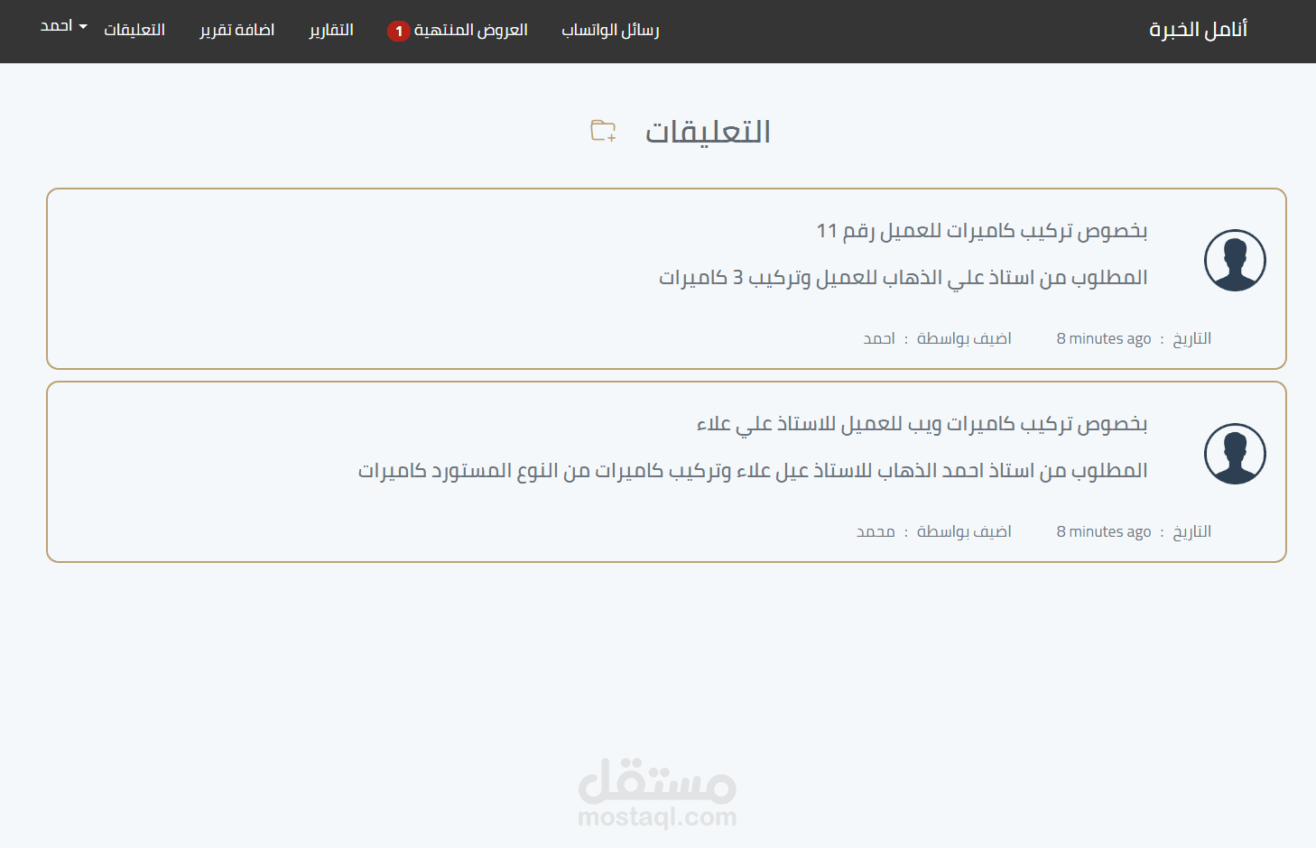 سيستم لادارة شركة تركيب كاميرات مراقبة و نظام محادثة بين الusers وارسال رسائل واتس اب للعملاء الذين علي وشك انتهاء عروضهم