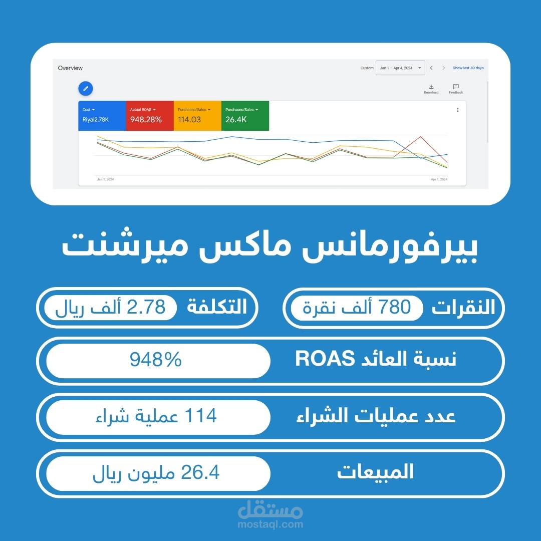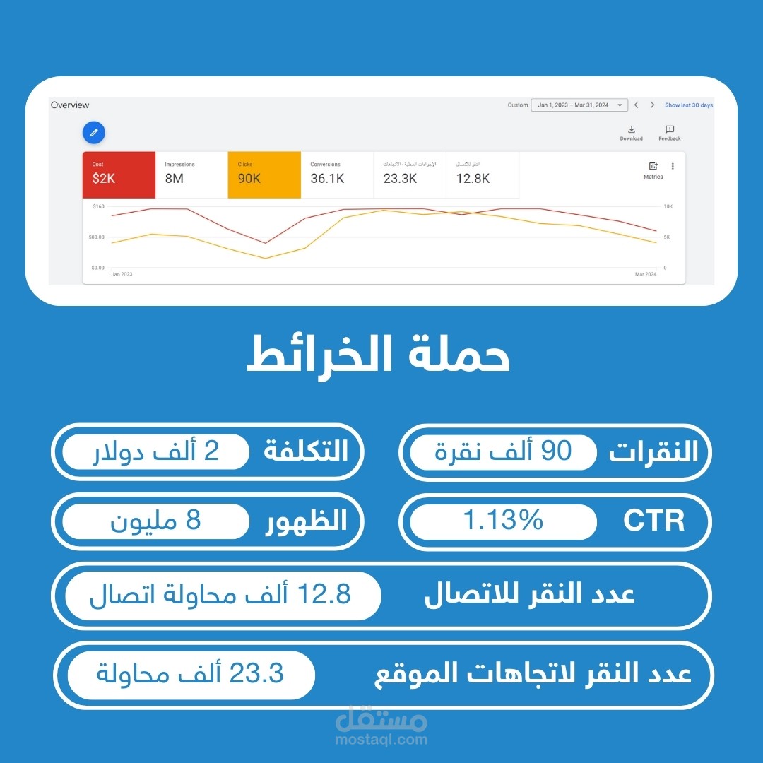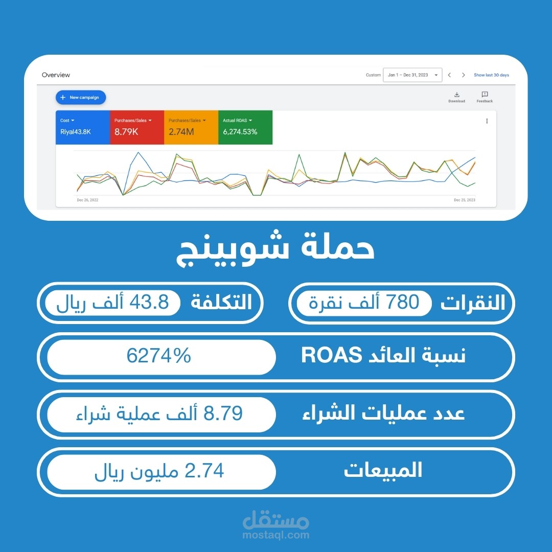 تم العمل على الكثير من الحملات الإعلانية على جوجل وكافة المنصات وتم تحقيق بفضل الله العديد من النتائج المميزة ونتج عنها أراء العملاء على مشاريعي في منصة مستقل وتستطيع الإطلاع على أرائهم.