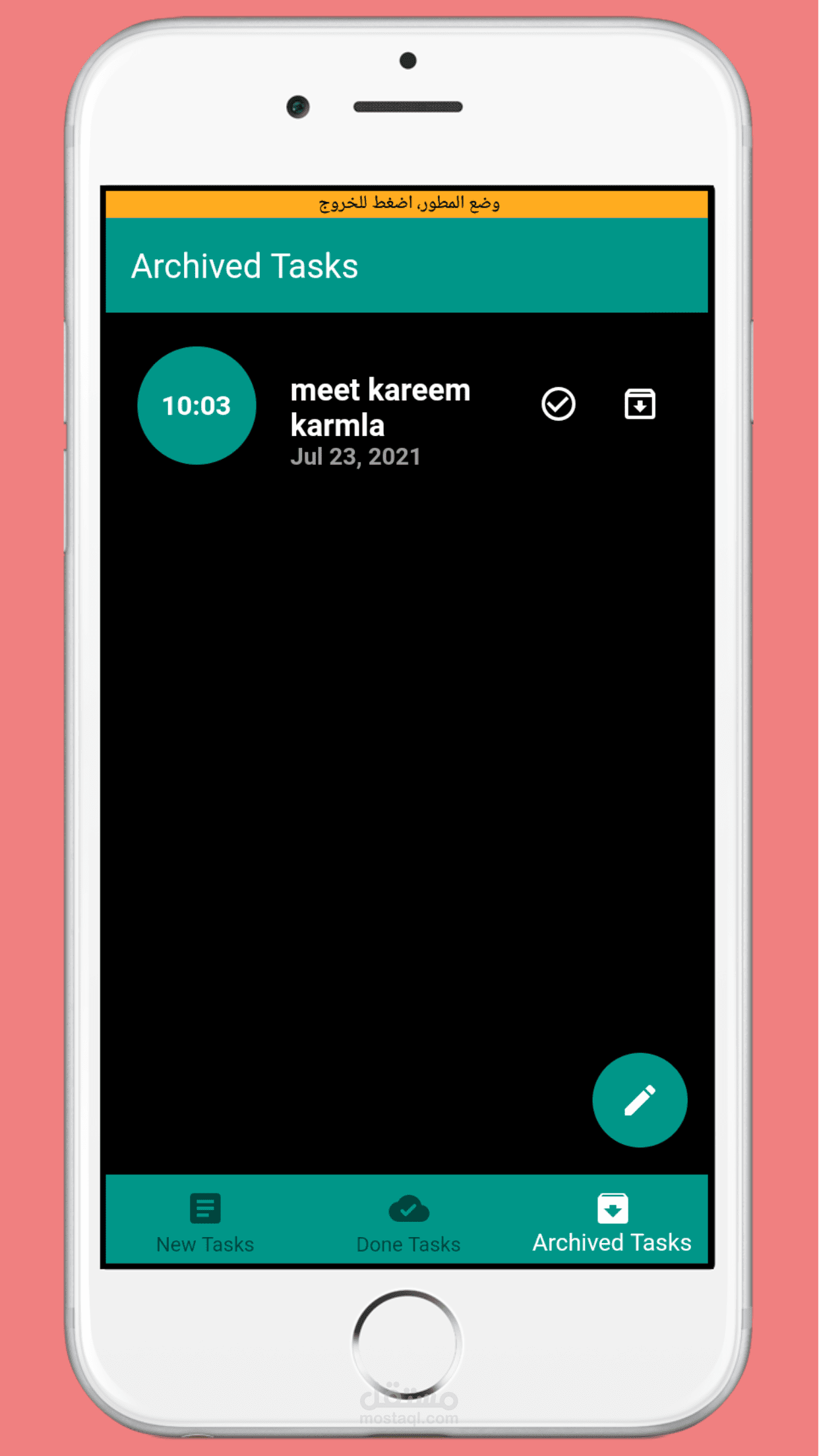 تطبيق للتذكير بالمهام باستخدام فلاتر ودارت وال sqflite تستطيع من خلاله اضافه المهام اليوميه لك وحذفها ووضها في المهام التي قمت بتنفيذها