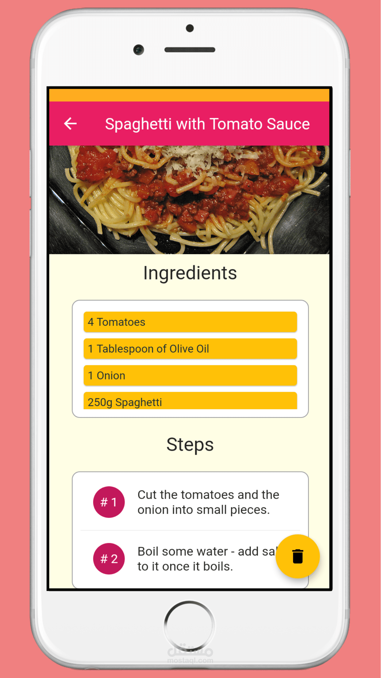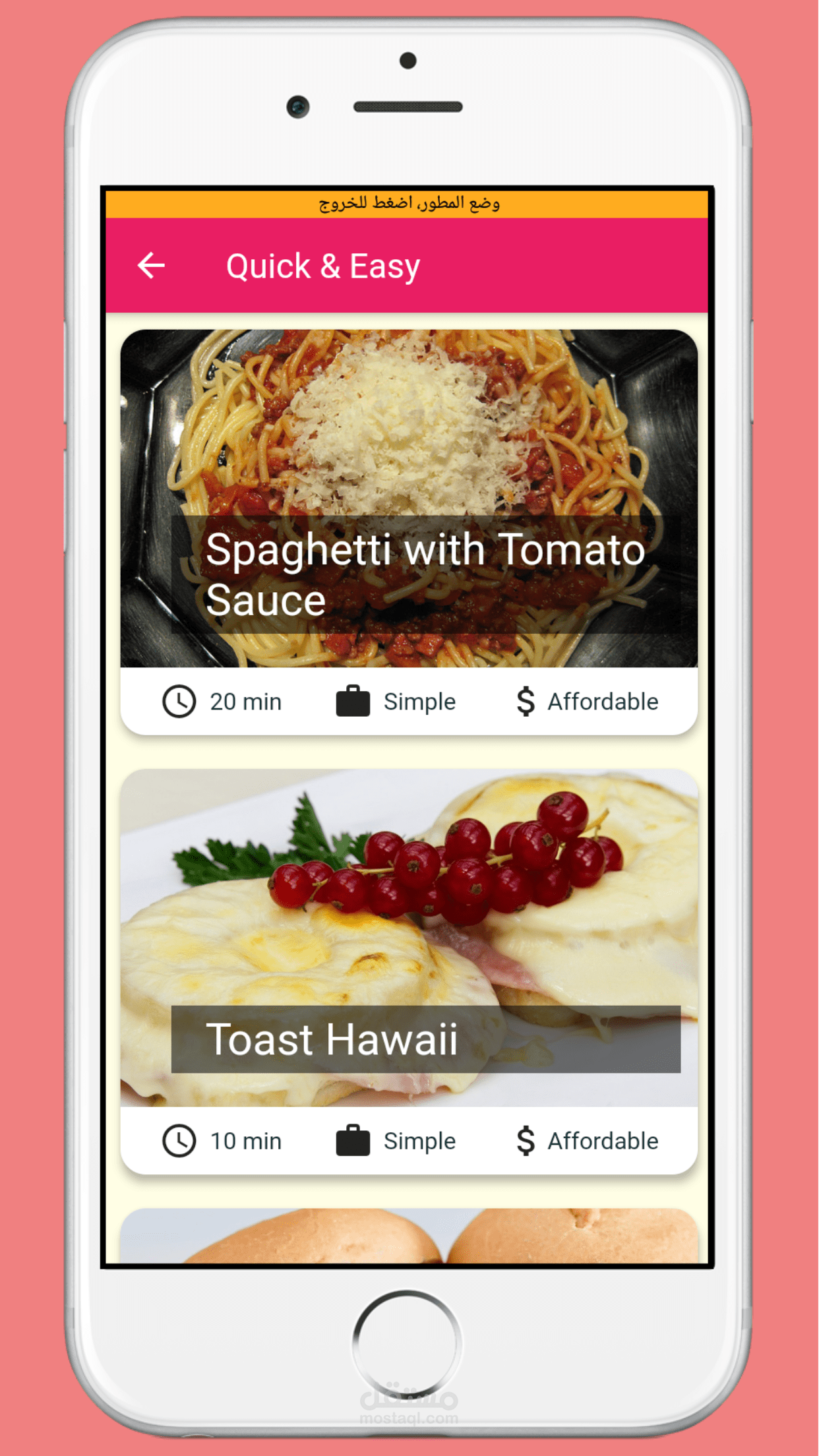 تطبيق لوصف وجبات الطعام ووضع كل وصفه بالمفضله باستخدام فلاتر
