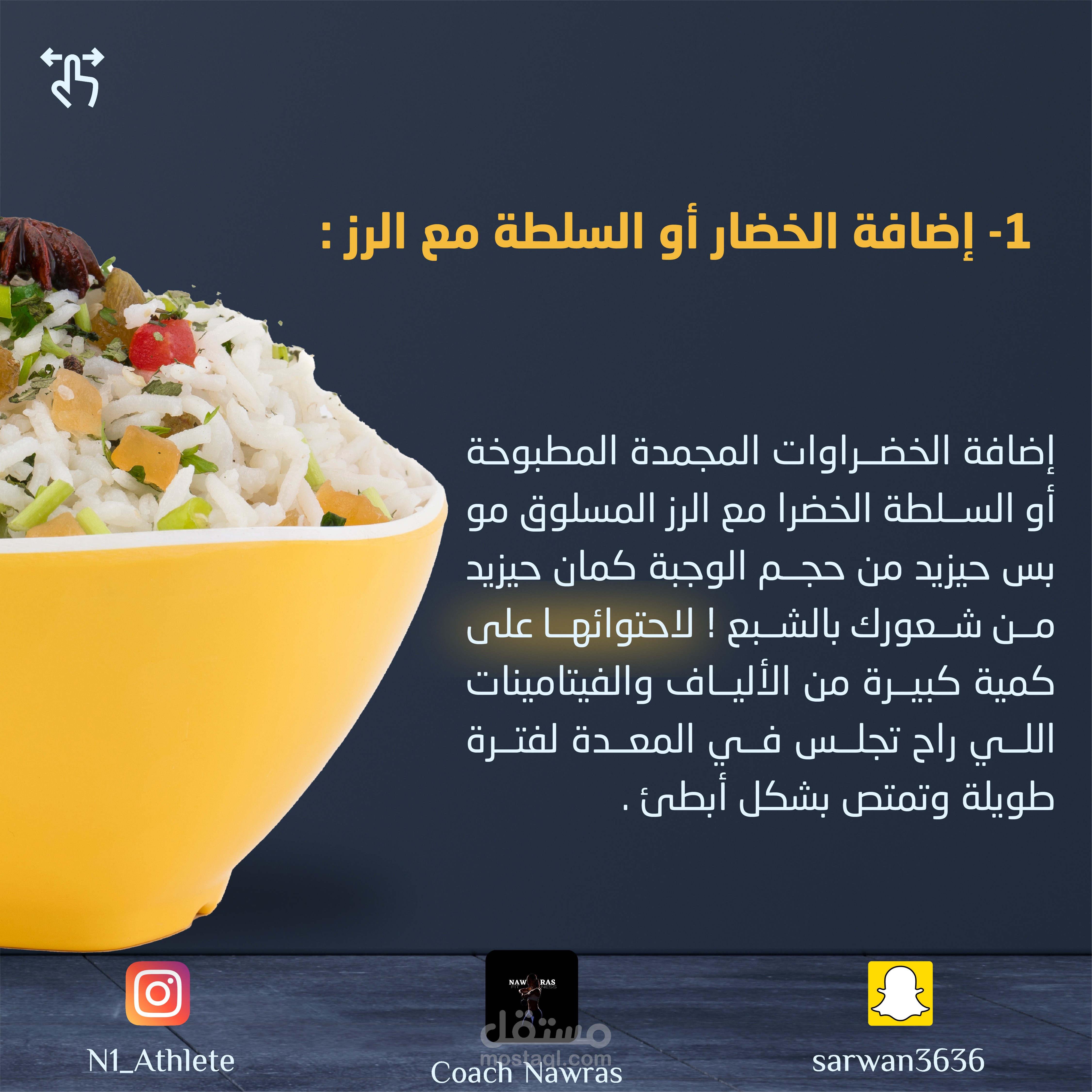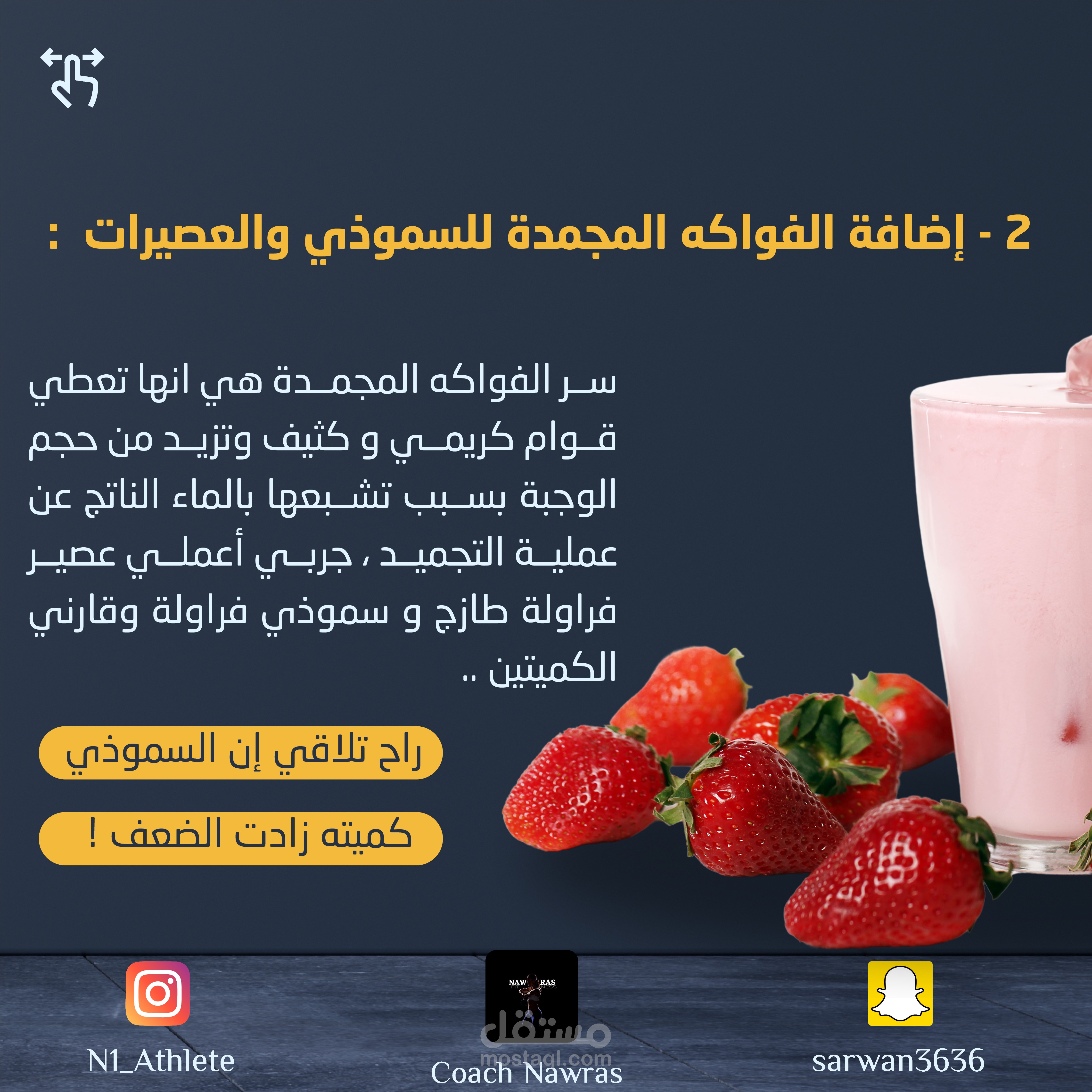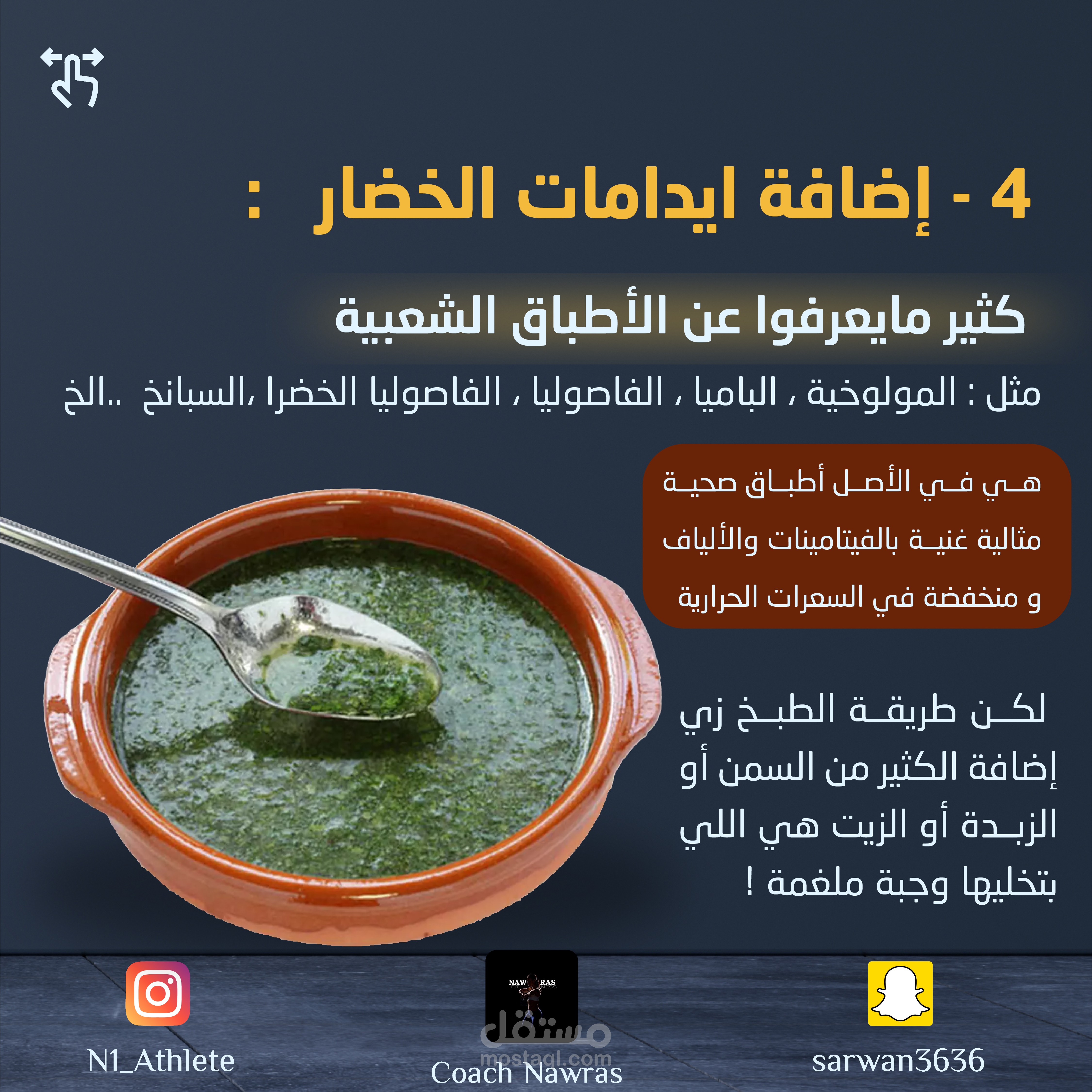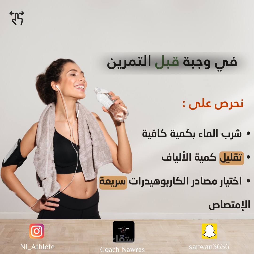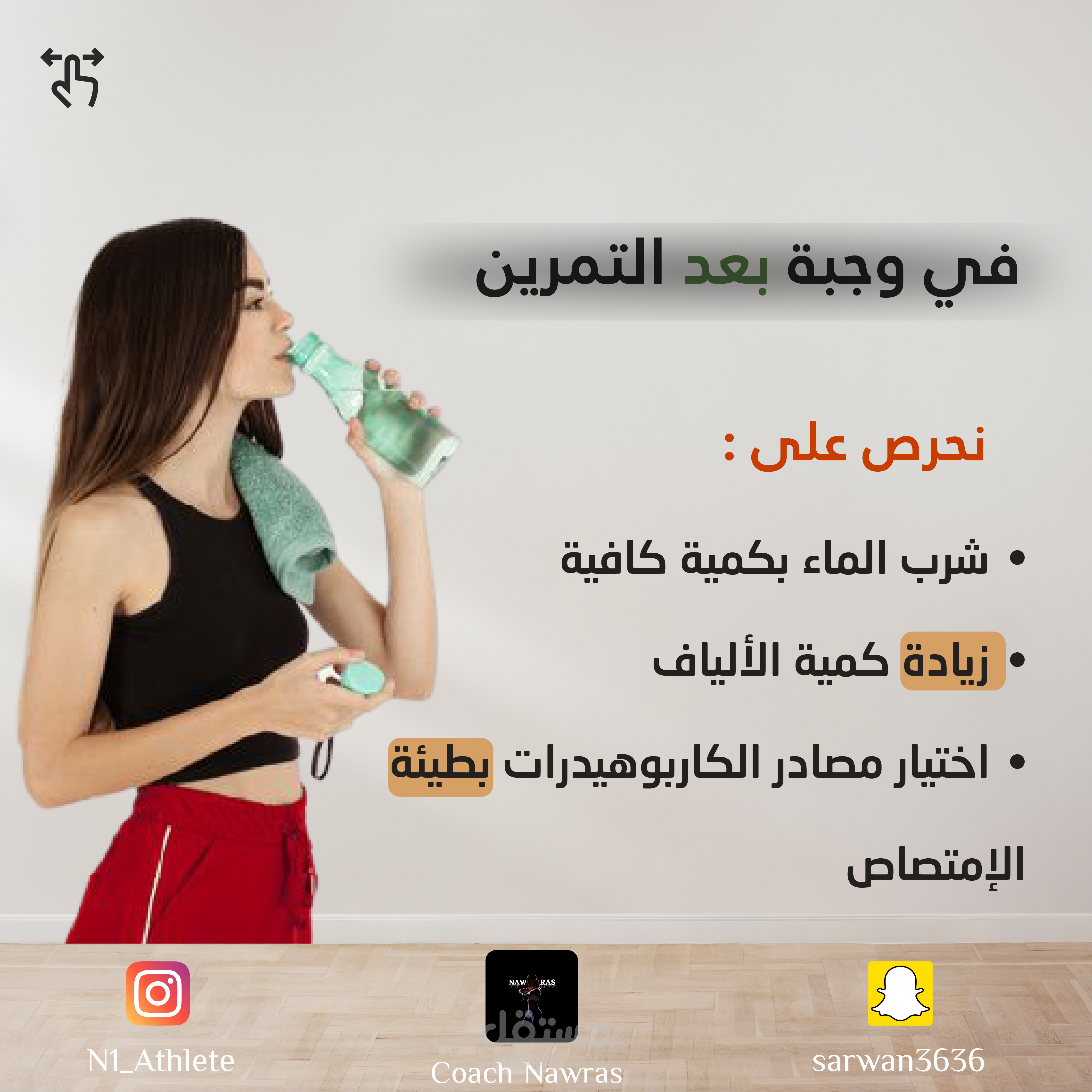 صفحة لمدربة مثابرة وشغوفة تسعى لايصال المعلومات الصحية والمفيدة عن طريق عرض المعلومات بطريقة تصاميم (الكاروسيل)