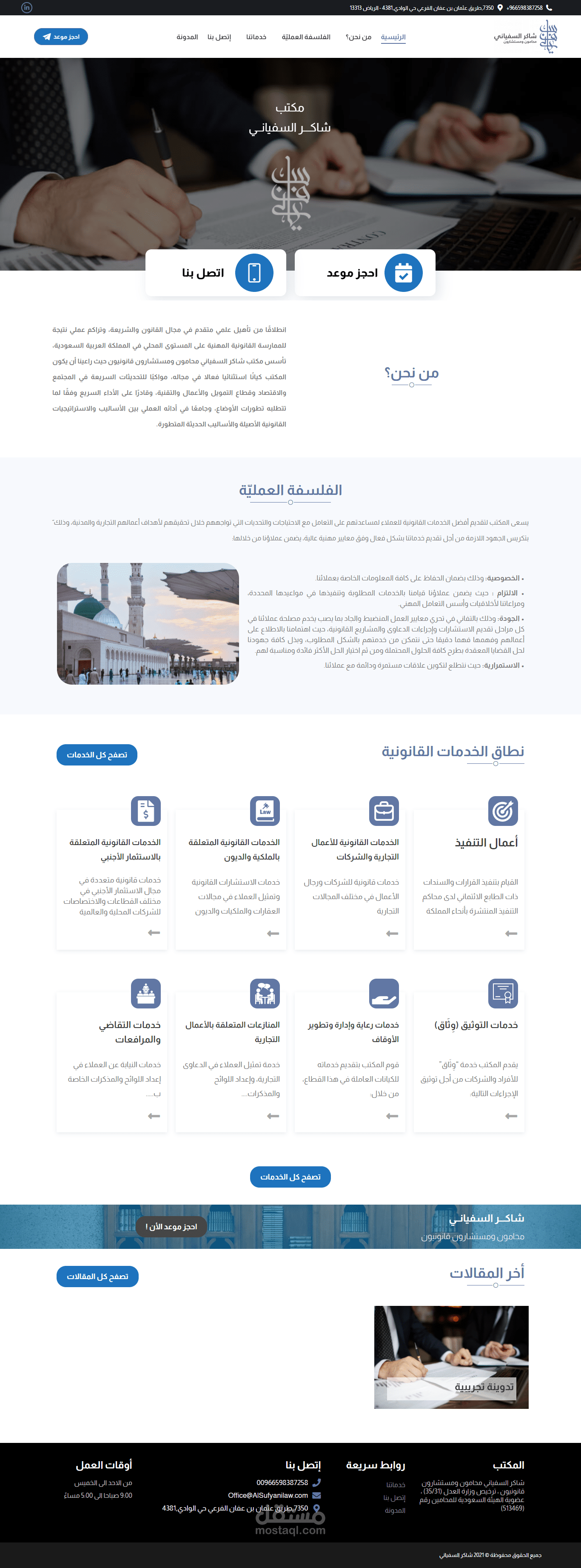 تصميم موقع تعريفي لمكتب محاماة مع نظام الحجز اونلاين