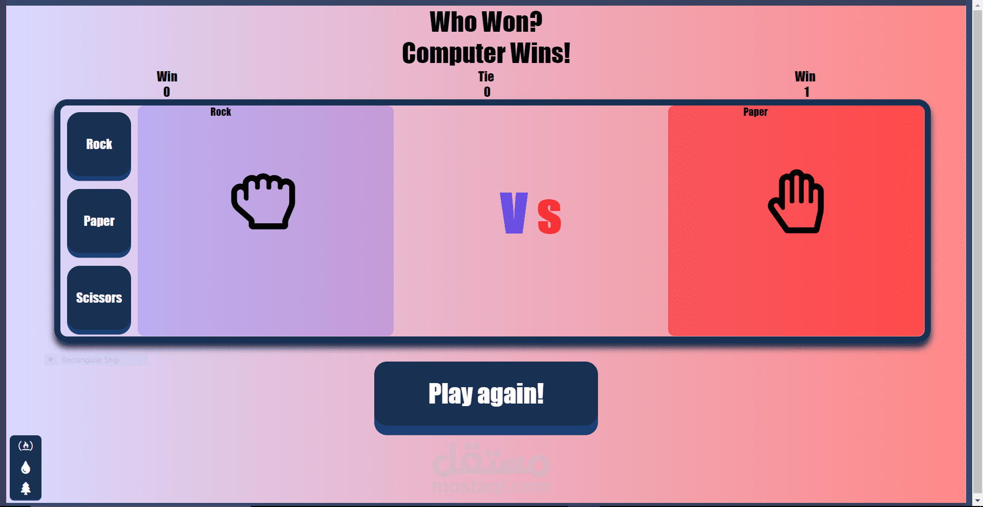 Simple fun Rock,Paper,Scissors Game made with HTML,CSS, AND JAVASCRIPT