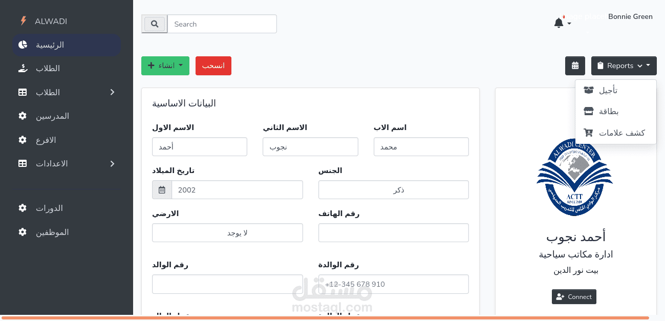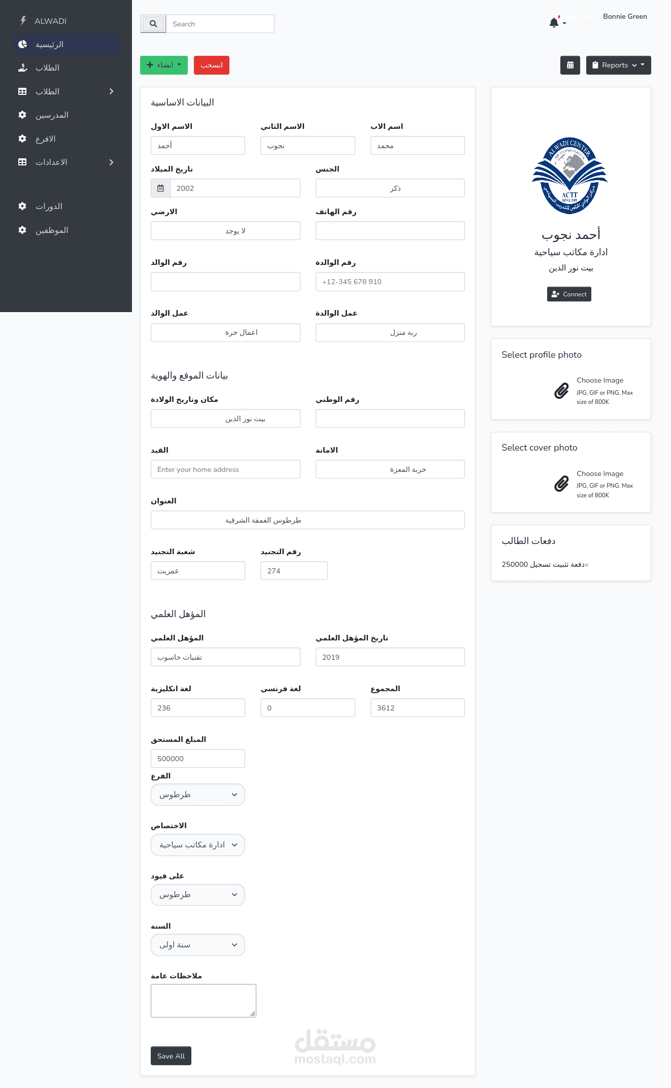 نظام ادارة معهد مع نظام اصدار شهادات وبطاقات للطلاب