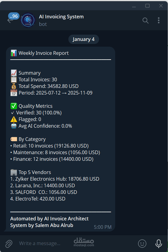 Weekly analytics reports via Telegram