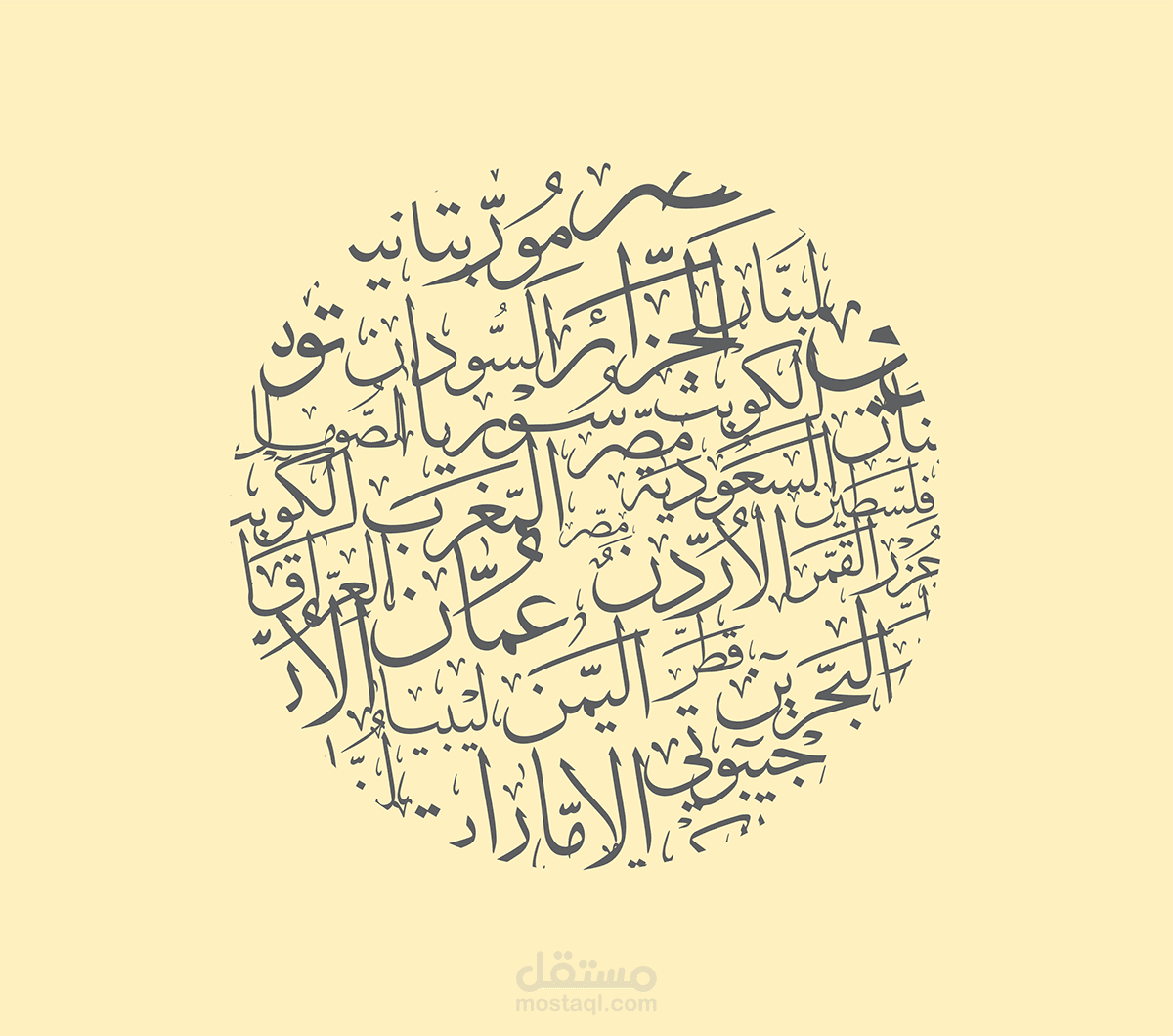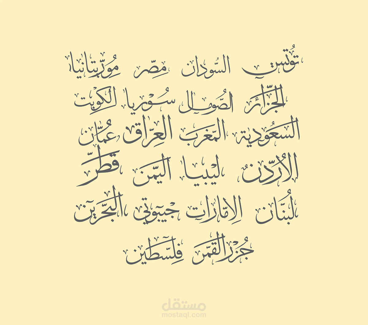 22 Arabic countries Arabic calligraphy by using Thoulth font