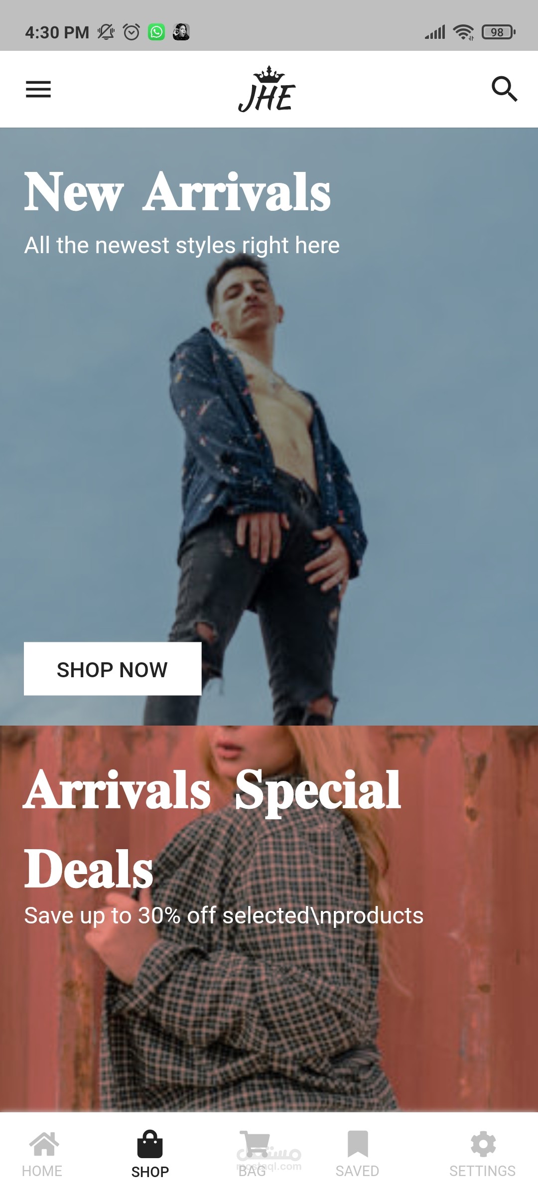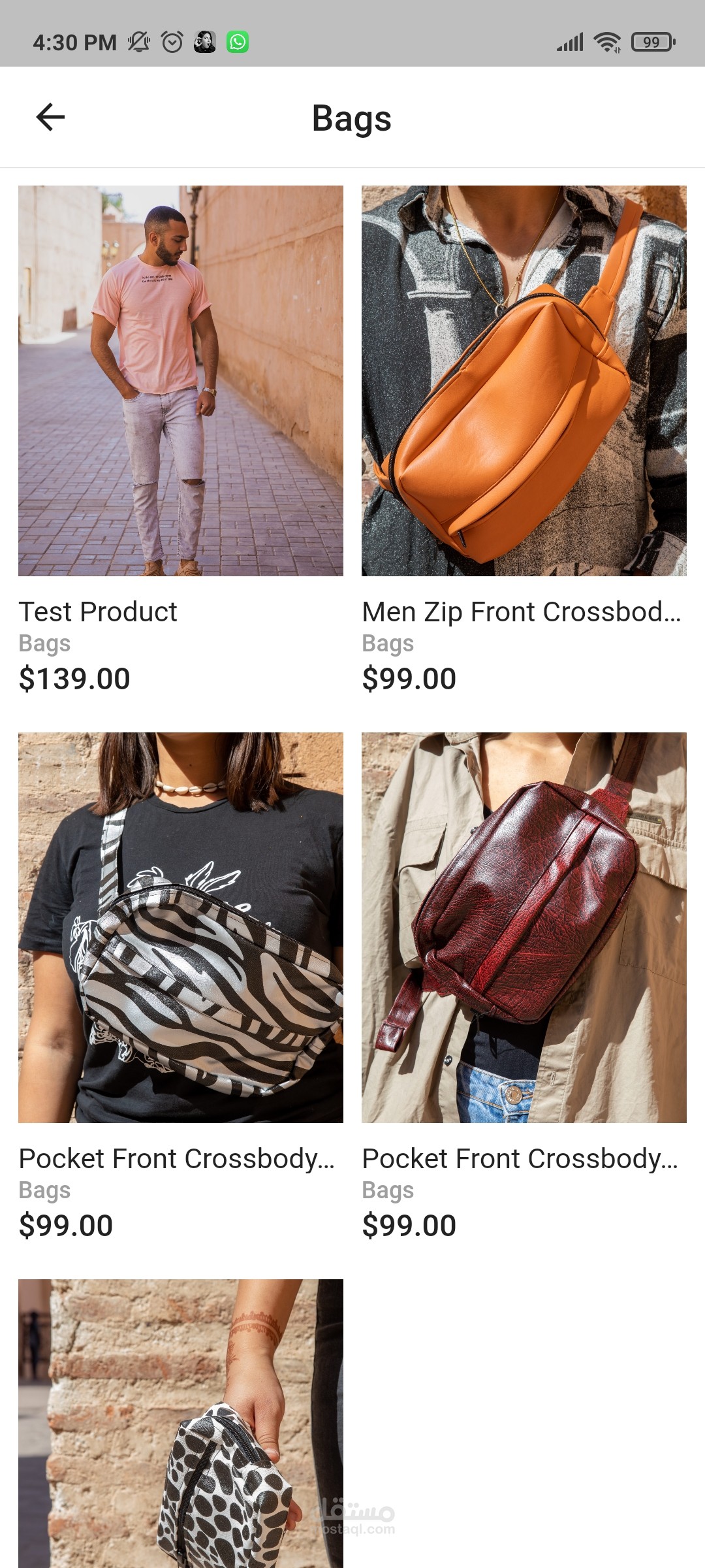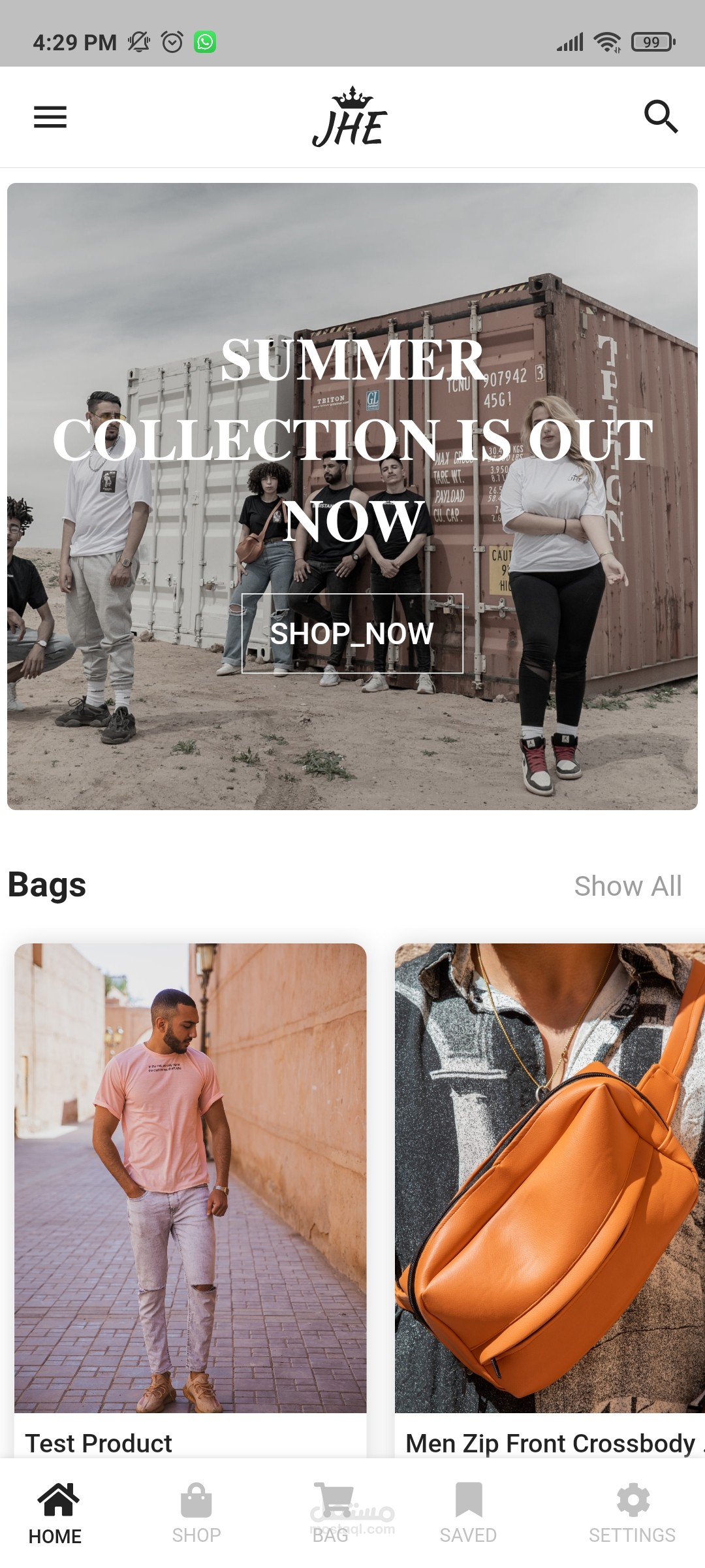 الشاشة الرئيسية (مع شريط البحث ، فئة المنتج ، الملف الشخصي ، ...)