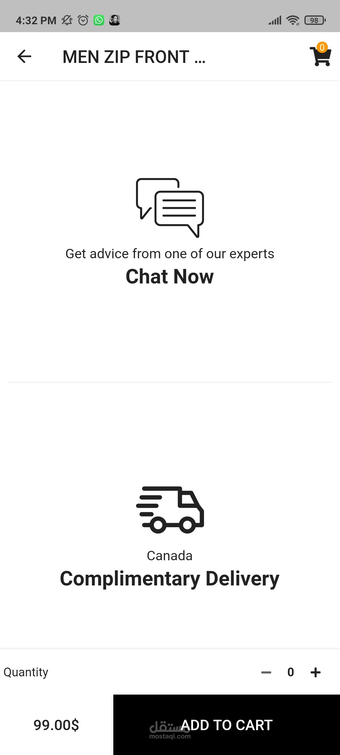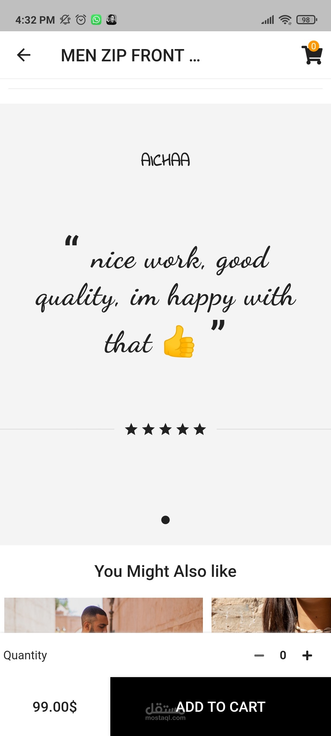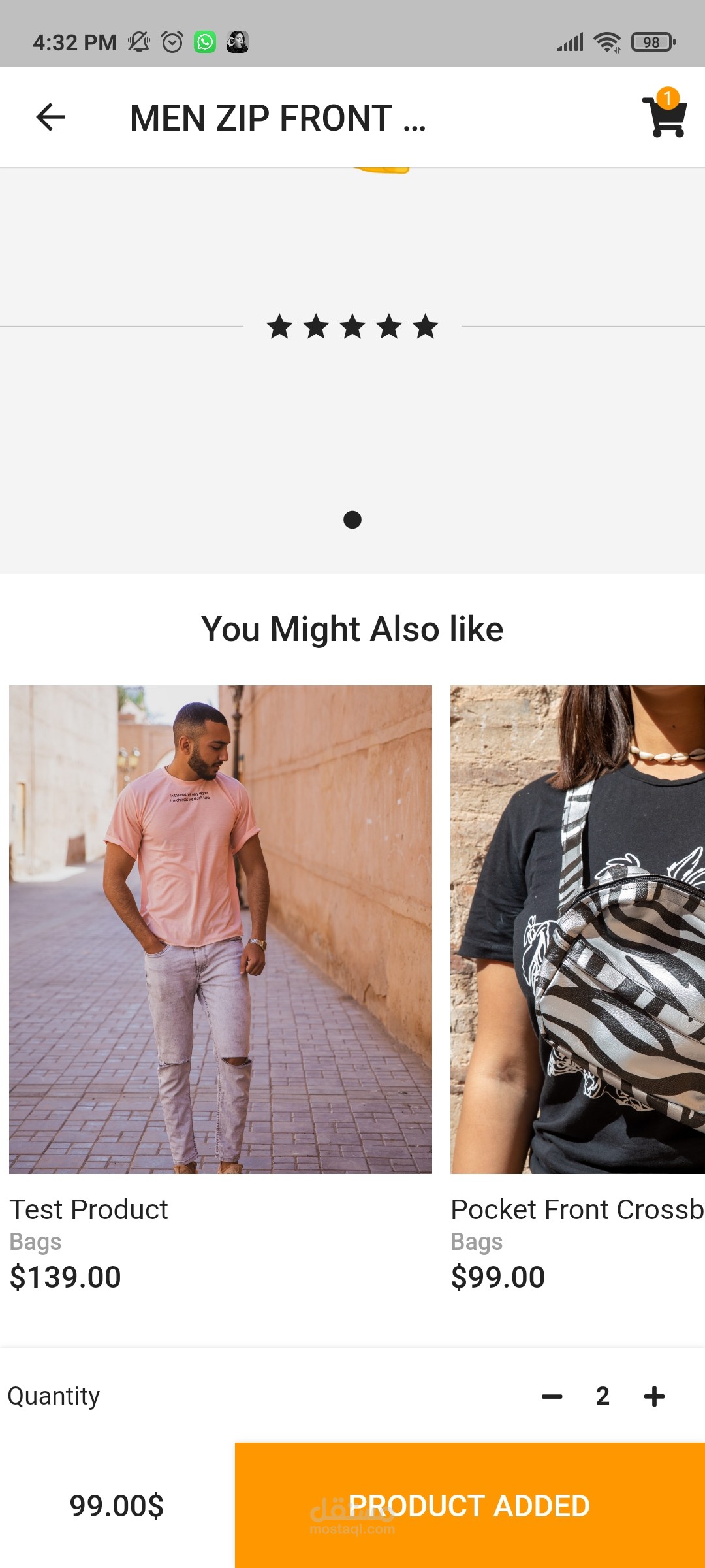 الشاشة الرئيسية (مع شريط البحث ، فئة المنتج ، الملف الشخصي ، ...)