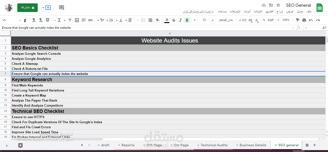 جميع النقاط التي وضعتها في هذا التقرير سيتم فحصها في موقعك عزيزي الزائر.