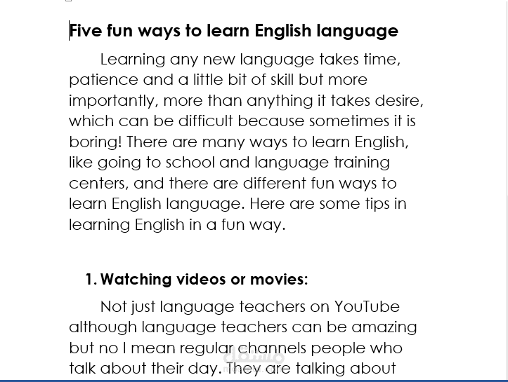 كتابة عنوان رئيسي وكتابة بعض التفاصيل عن النقاط الموجودة في المحتوى