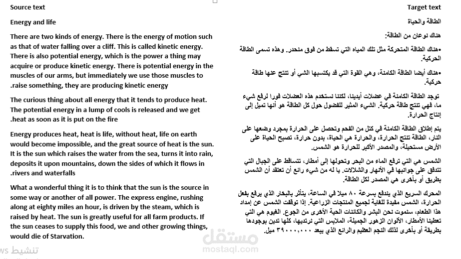 ترجمة نص من اللغة الإنجليزية الى اللغة العربية