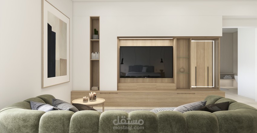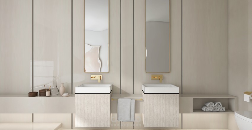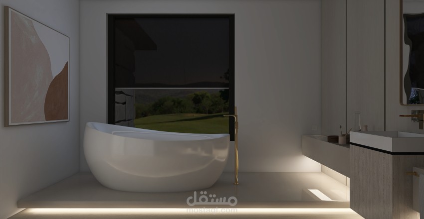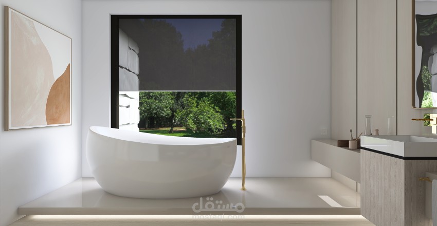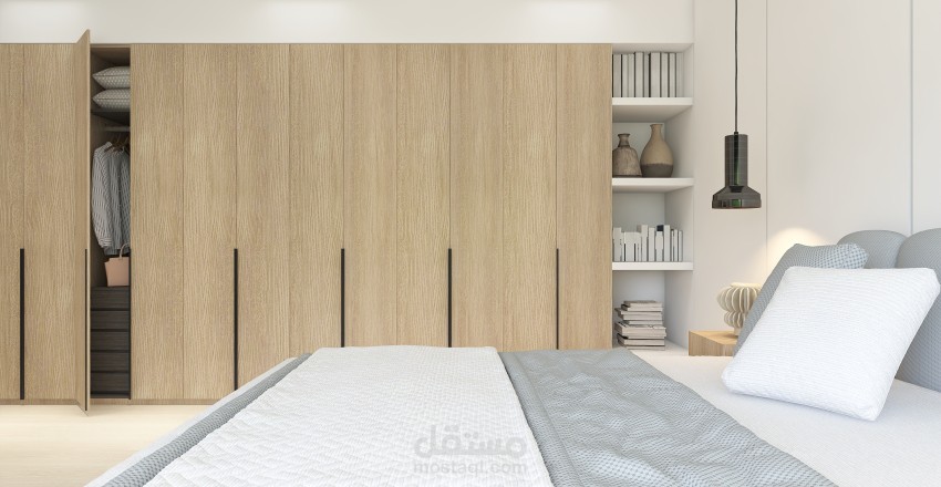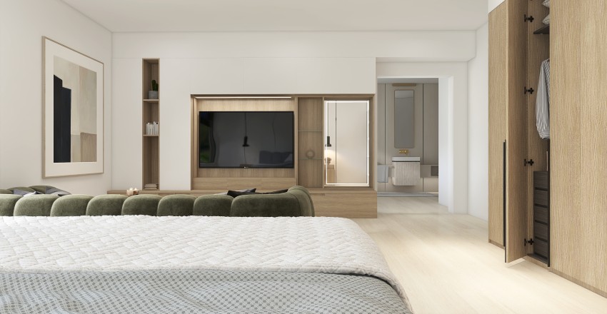 تصميم 3D مودرن لغرفة نوم رئيسية بحمام