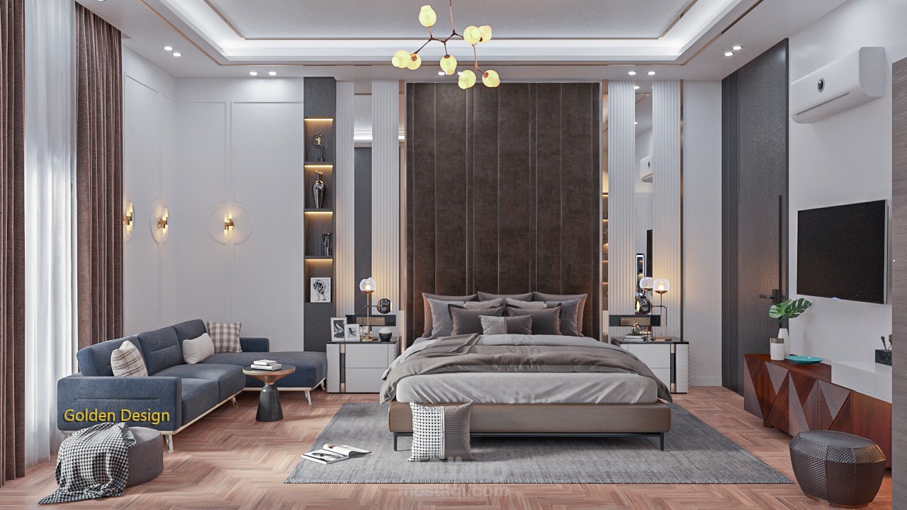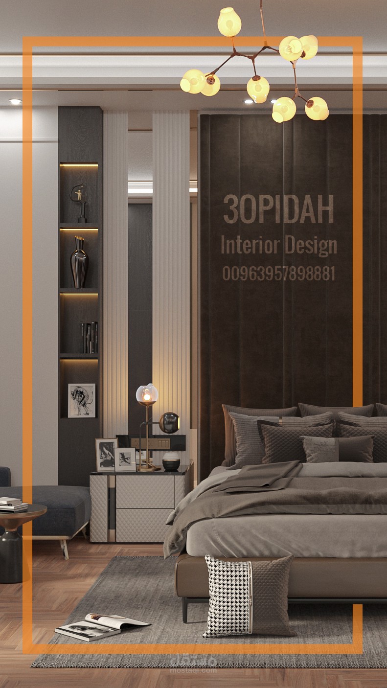 تصميم داخلي لفراغ نوم رئيسي بالإضافة إلى إعداد كافة الرسومات التنفيذية التفصيلية اللازمة لمرحلة التنفيذ، بدقة وحرفية عالية..