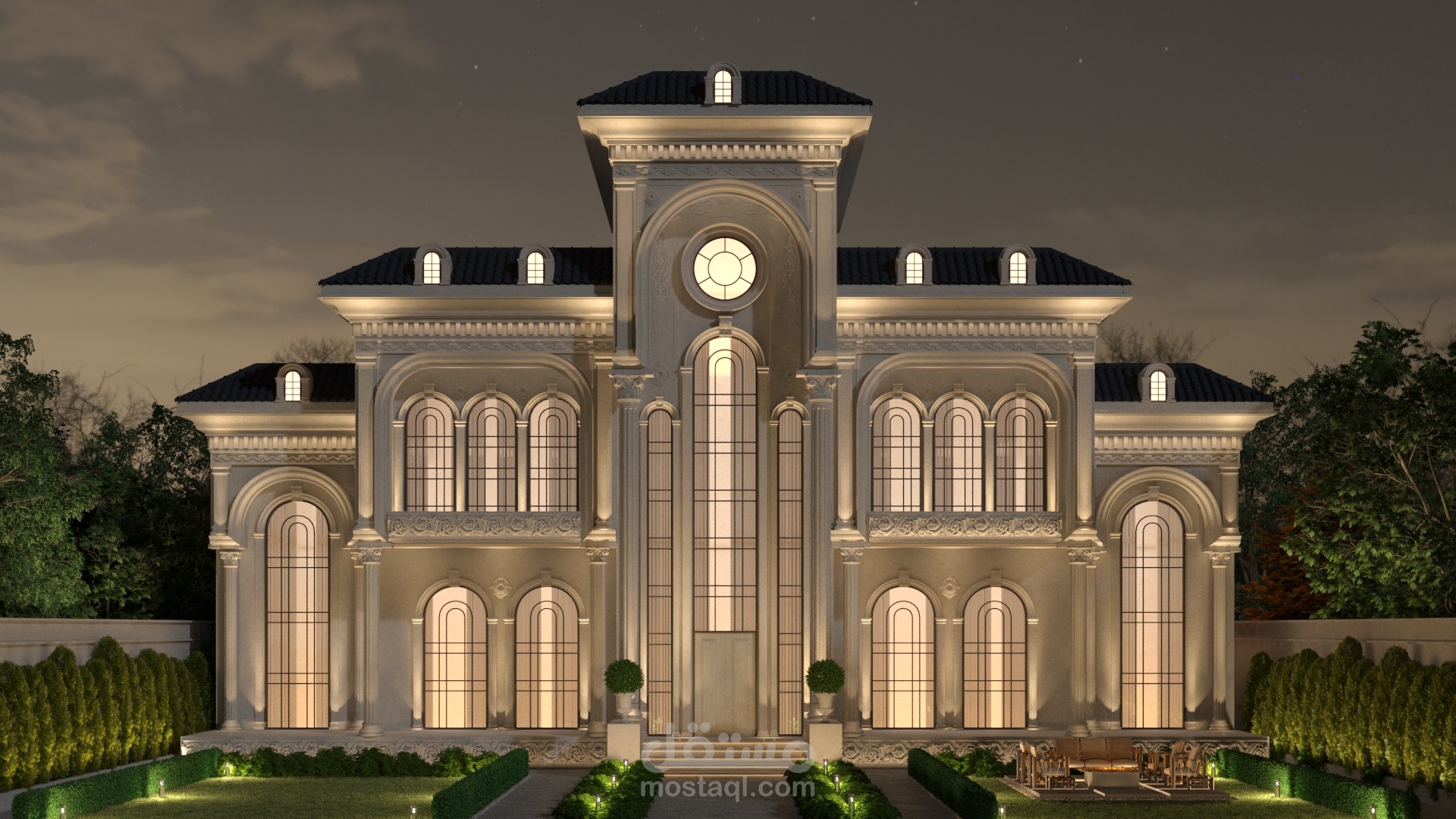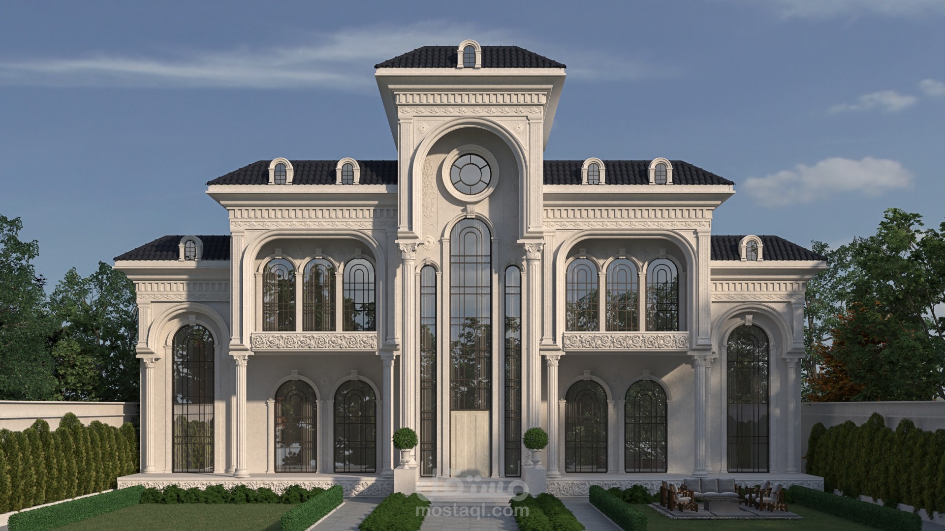 تصميم واجهة معمارية لفيلا بطراز كلاسيكي في دولة الإمارات العربية