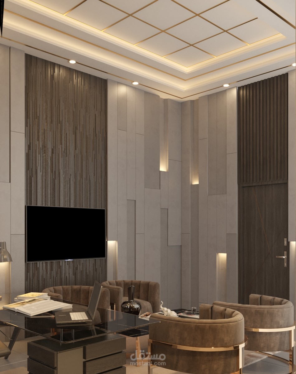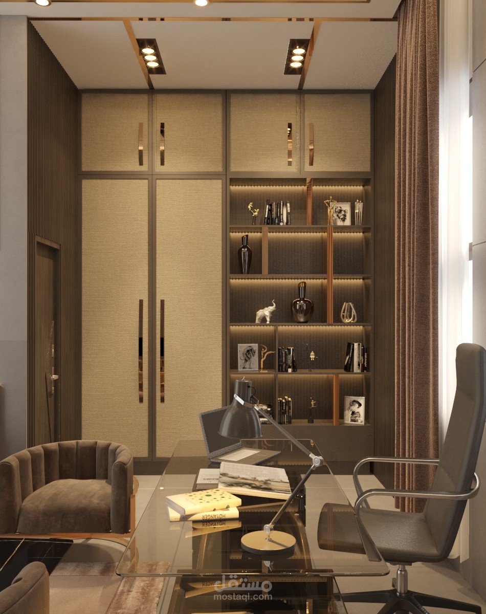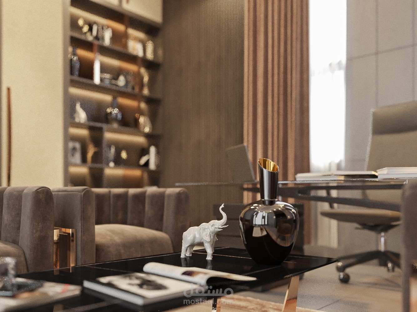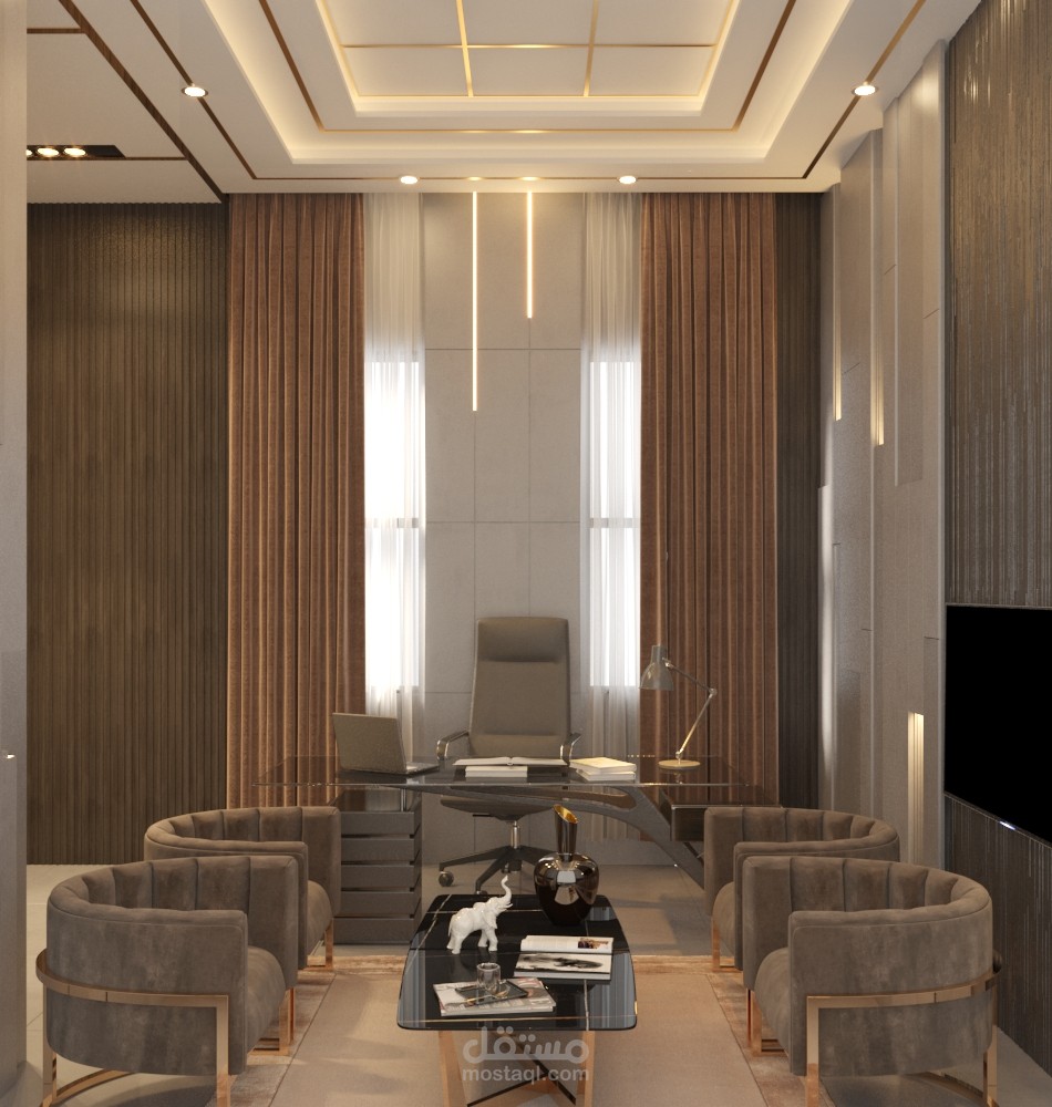 تصميم داخلي لفراغ مكتب مدير في مبنى إداري