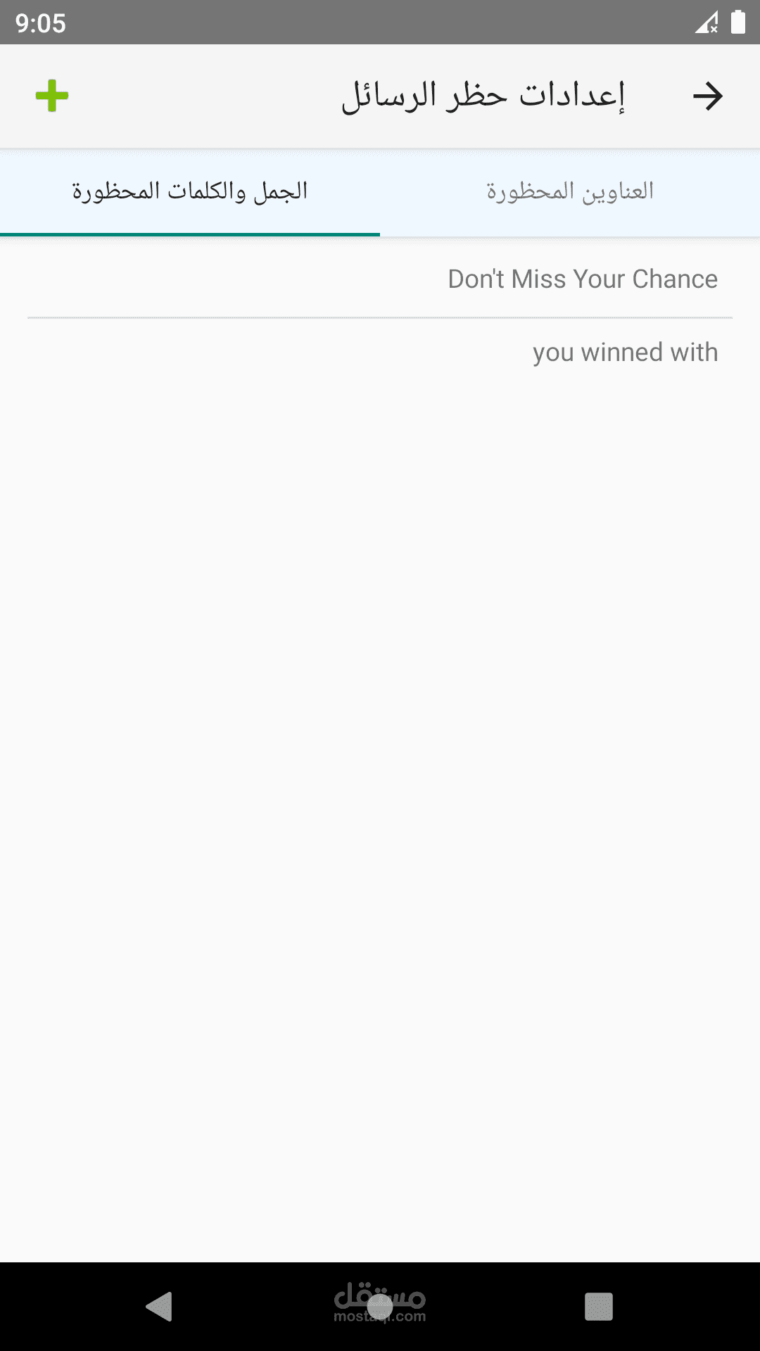 - حظر الرسائل غير المرغوب فيها حسب كلمات محددة في الرسالة