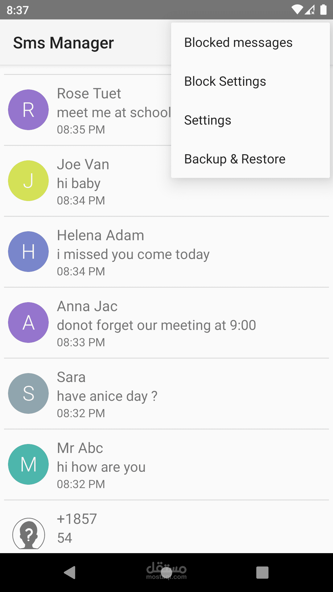حظر الرسائل غير المرغوب فيها - النسخ الاحتياطي واستعادة الرسائل