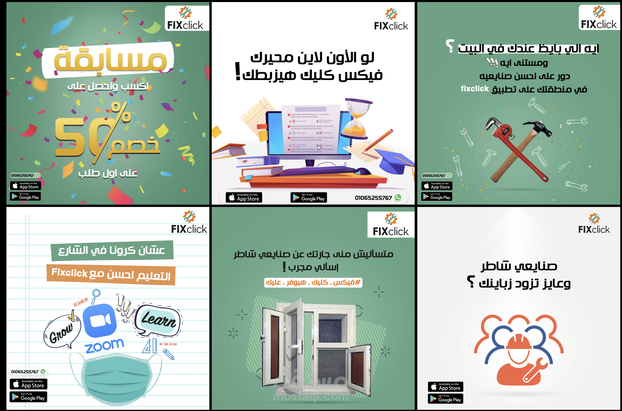 فيكس كليك هو تطبيق للحرفيين في مصر ، باشتراك شهري قيمته بسيطة ، عن طريق التطبيق تسطيع عرض اعمالك اذا كنت حرفي ،