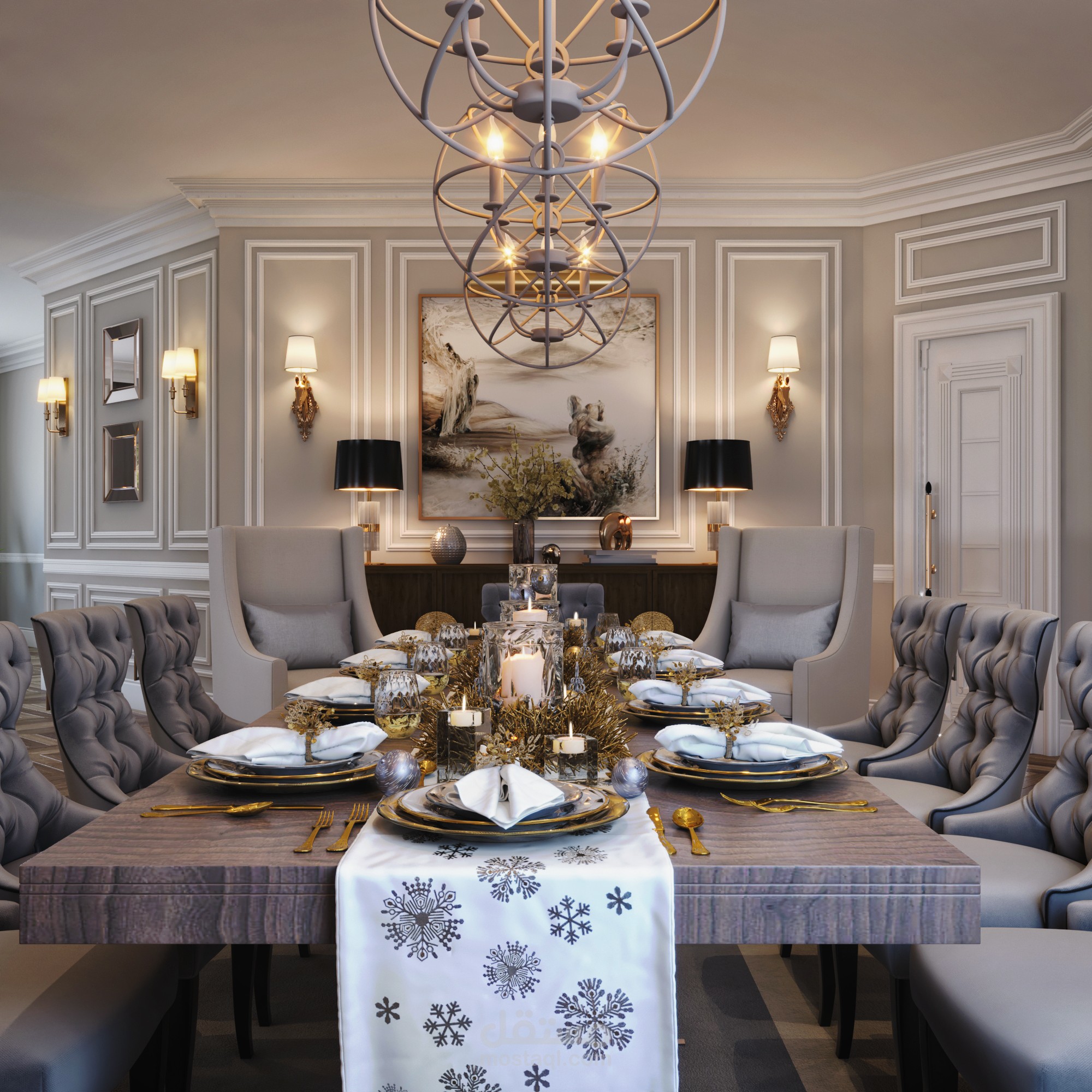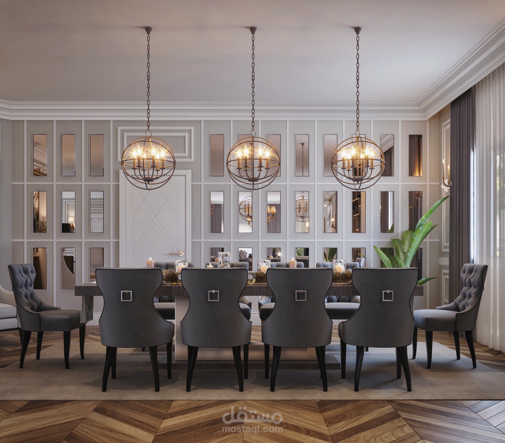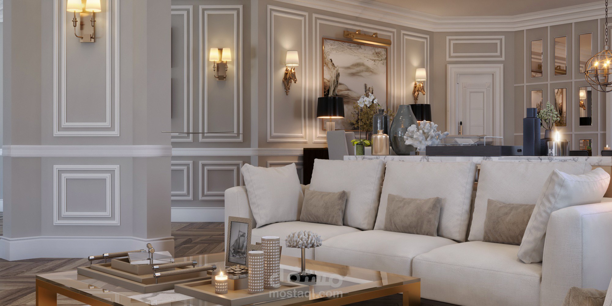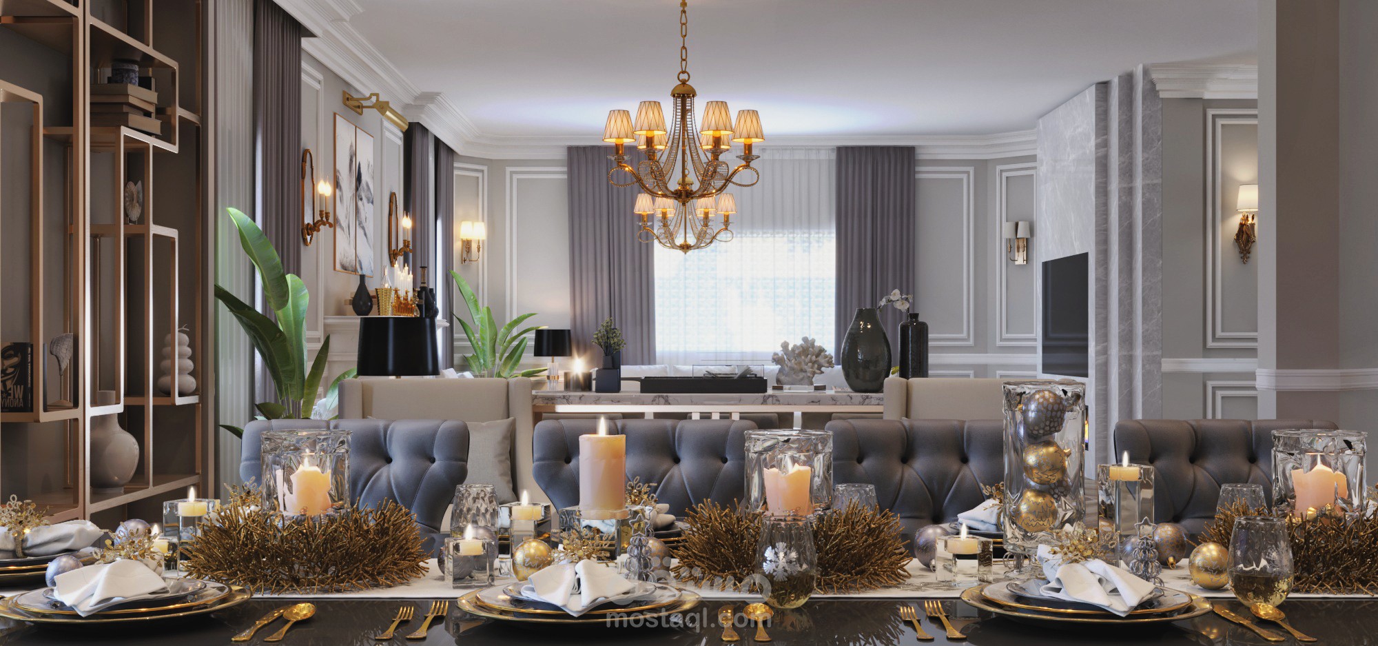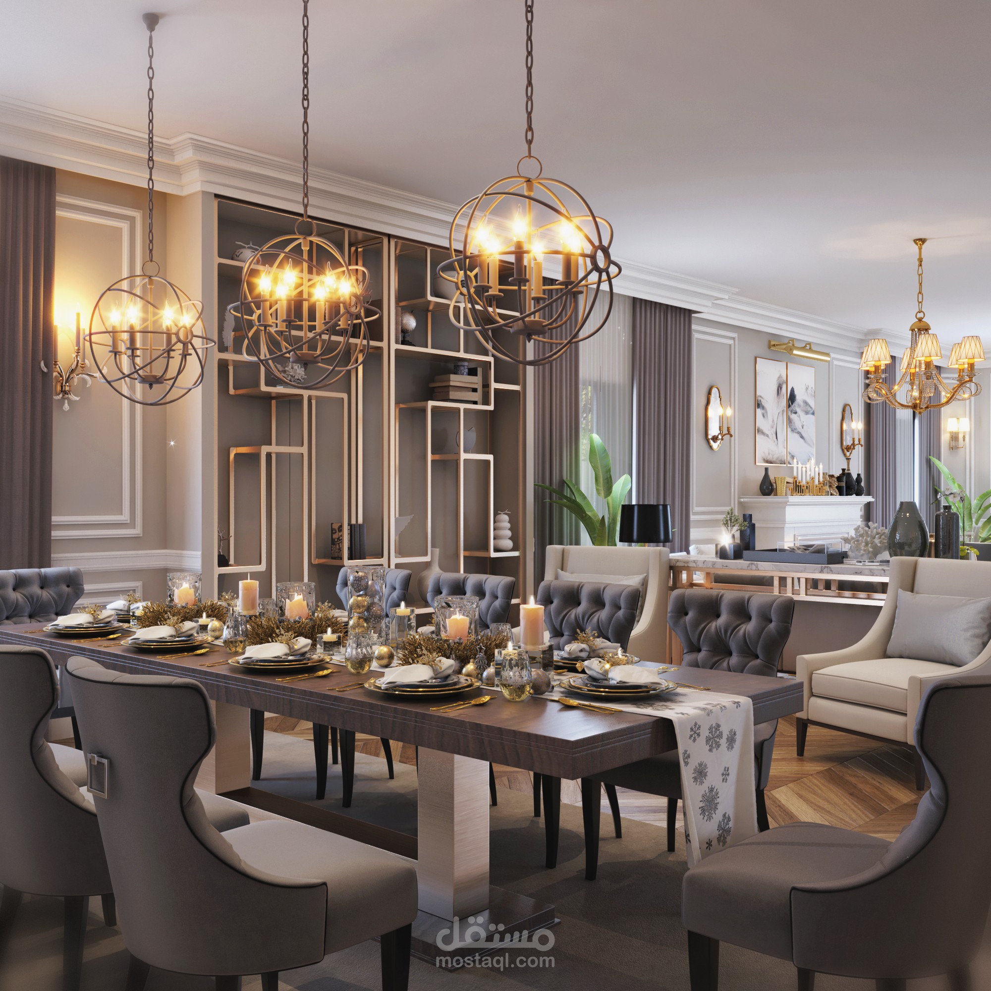CONTEMPORARY RECEIPTION &DINING AREA IN PALACE