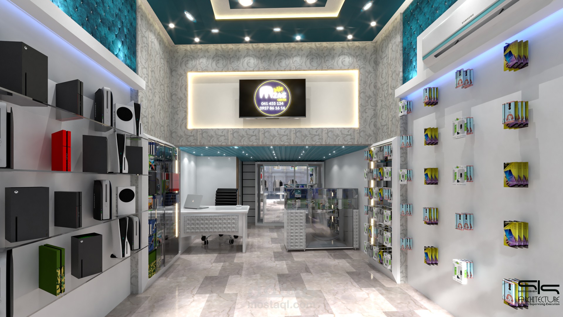 تم انشاء العمل بالاعتماد على برامج هندسية مثل autocad - sketchup - vray - photoshop