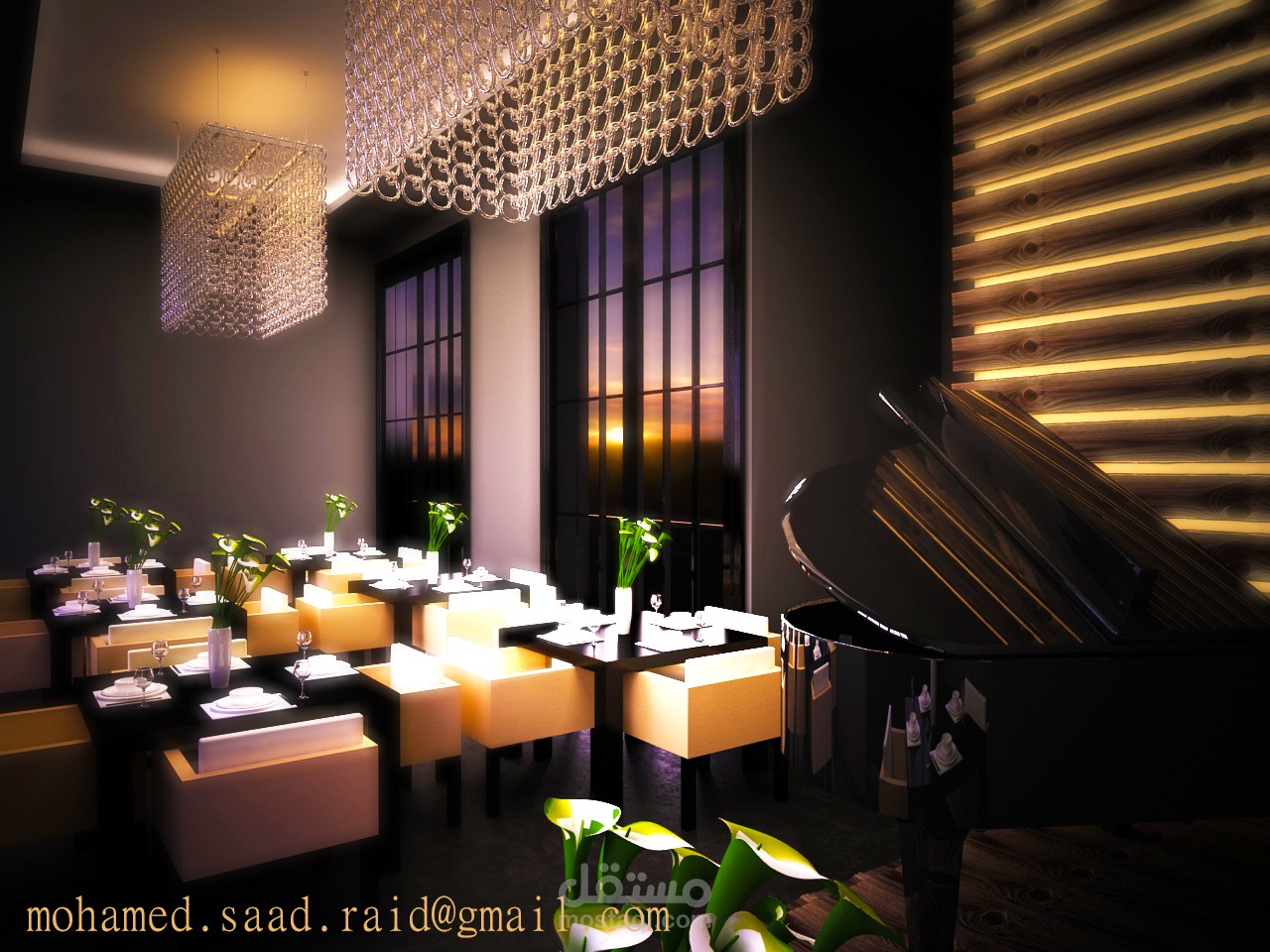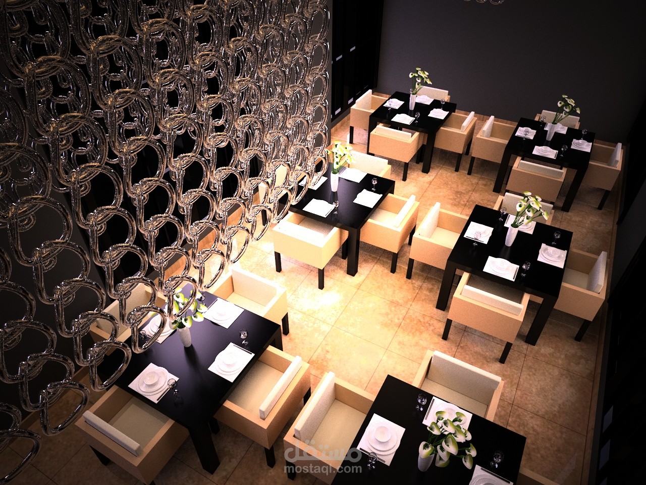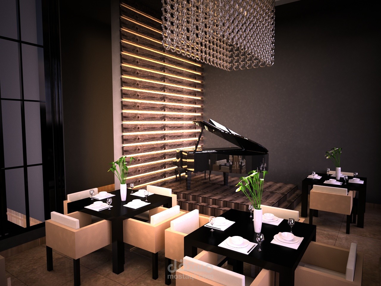 attractive design of small resturant with warm lighting and
