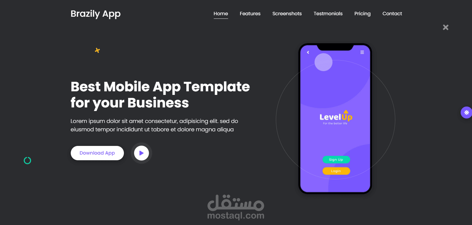 موقع لعرض تطبيق معين متجاوب مع كل الشاشات ويحتوي علي الشكل الغامق والفاتح