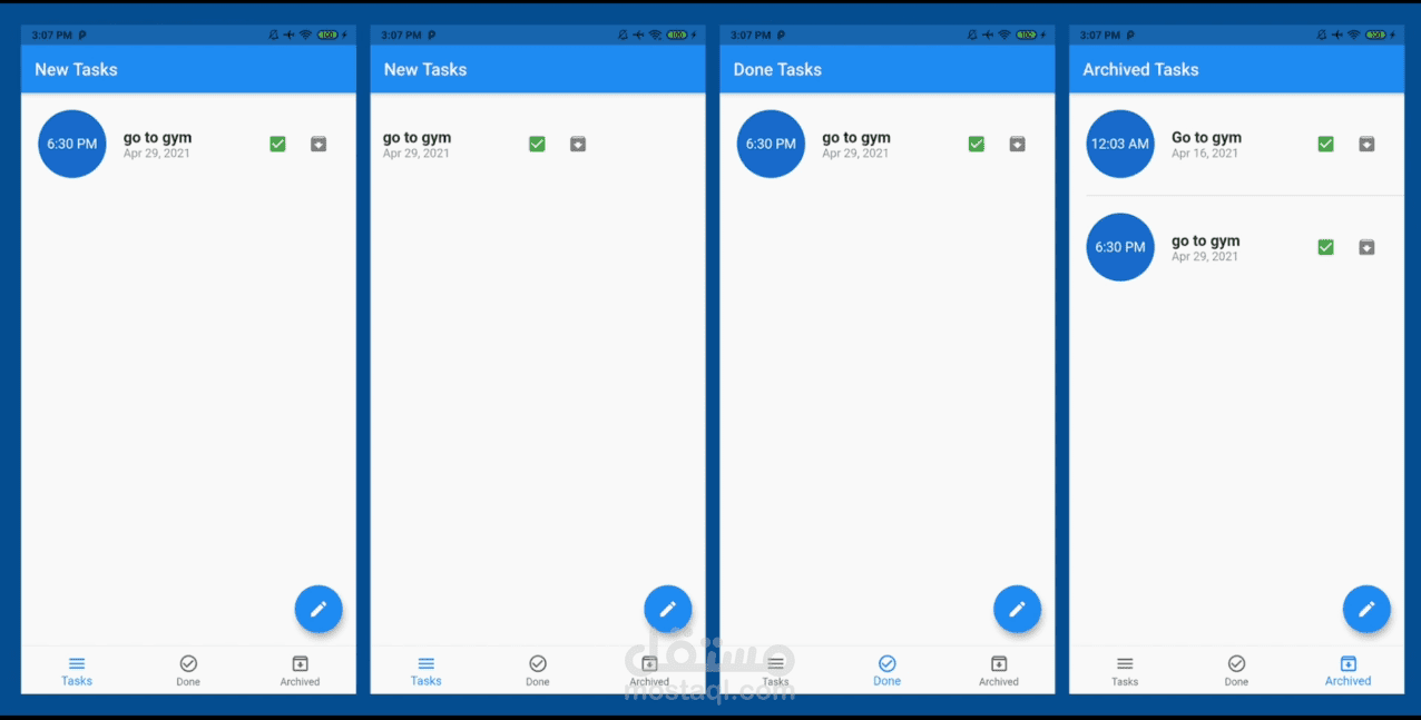 تطبيق Tasks تم إنشاءه بإستخدام تقنية فلاتر الحديثة هو تطبيق لتسجيل مهامك اليومية التي تريد إنجازها ولذلك عن طريق تسجيل المهمة وتحديد الوقت والتاريخ ثم بعد ذلك يمكنك وضعها في قائمة