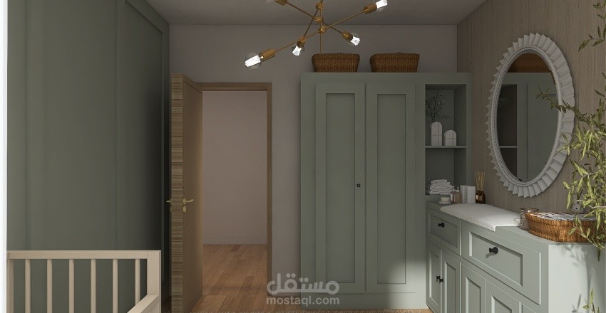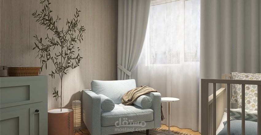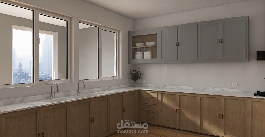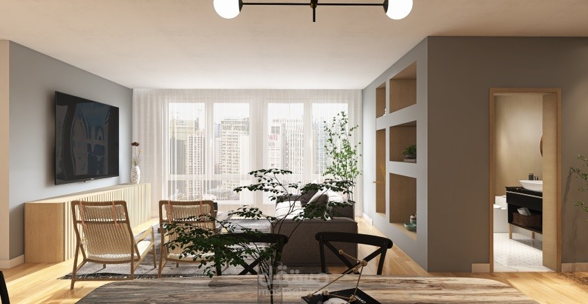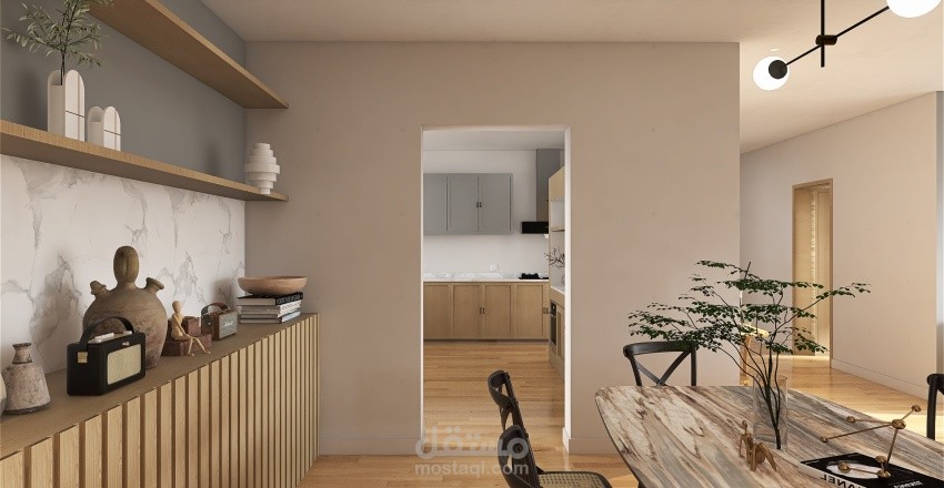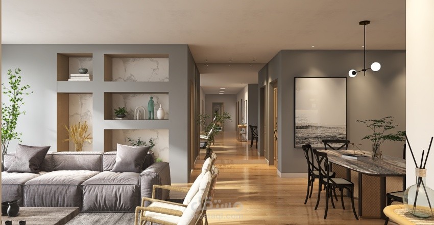 تصميم ثلاثي الابعاد لشقة صغيرة مودرن ناعم