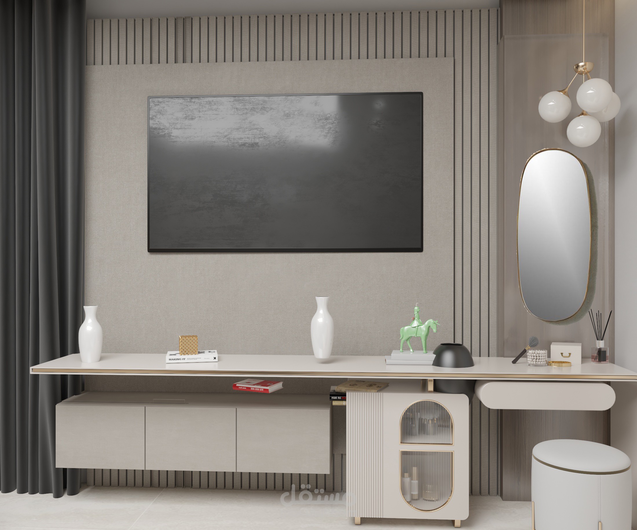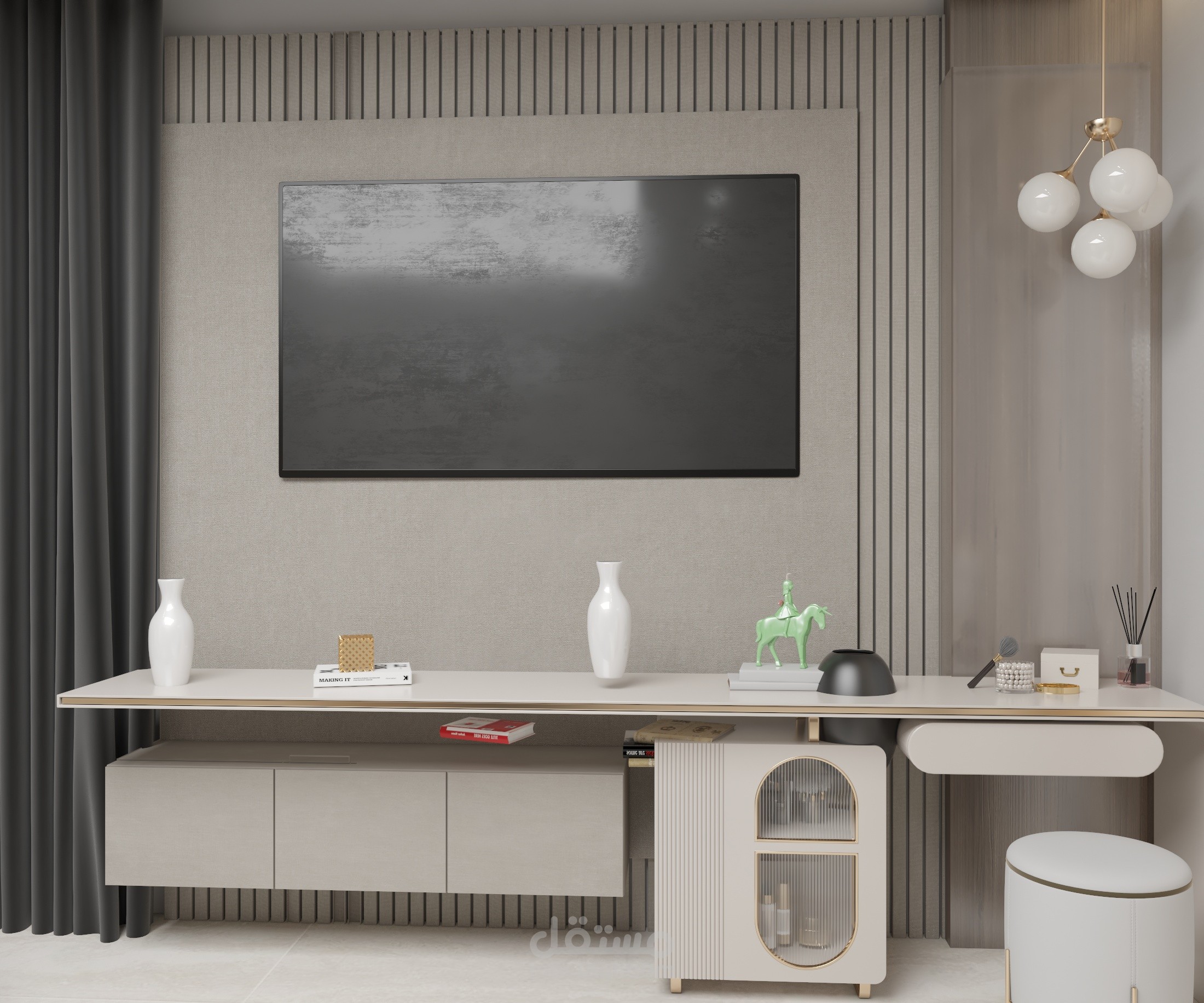 تم تصيم هذا العمل على الطراز الحديث , و استعمال برنامج الاوتكاد والثردي ماكس ورندر فيري ..