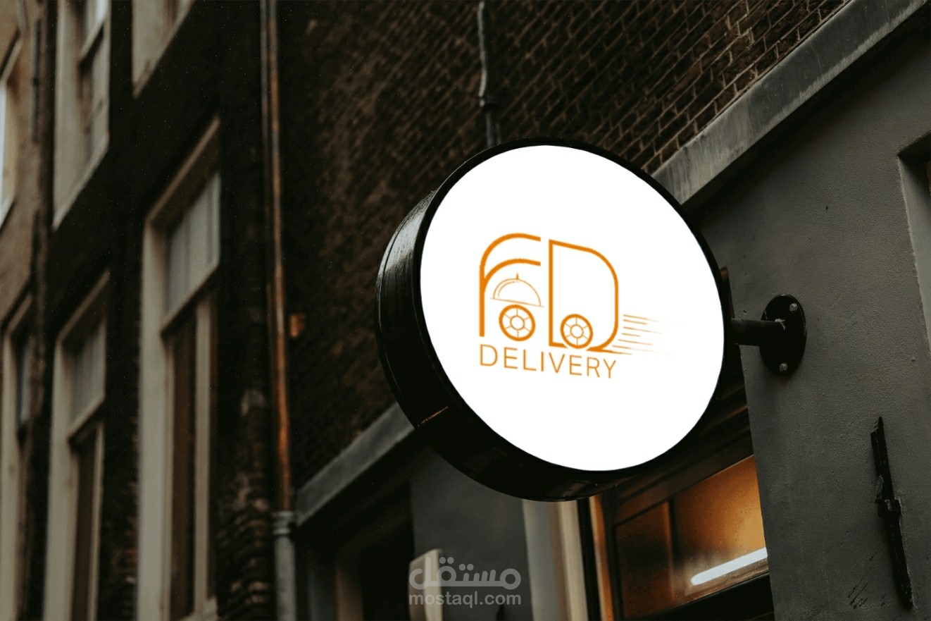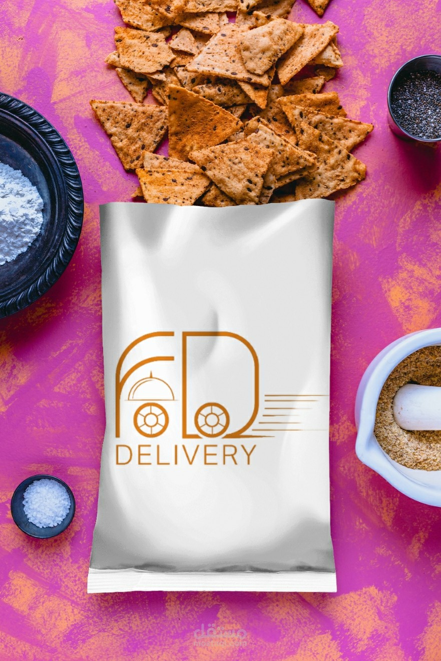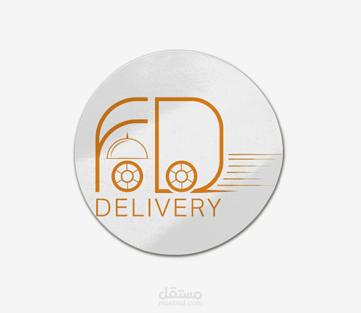 شعار فود دليفري عبارة عن دمج احرف و اطباق ووعجلات تدل على الحركة تم تصميم الشعار على الاليستريتور