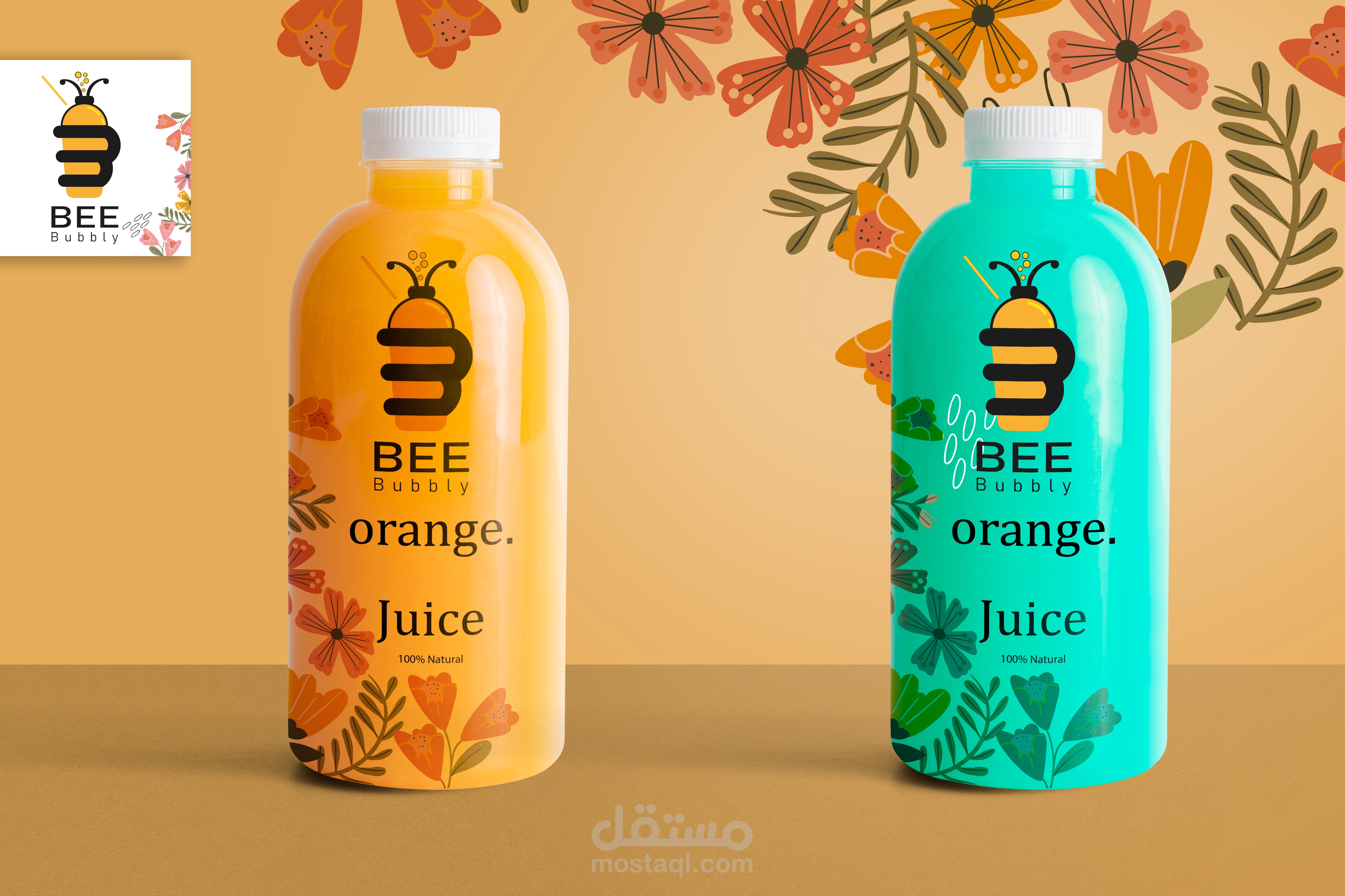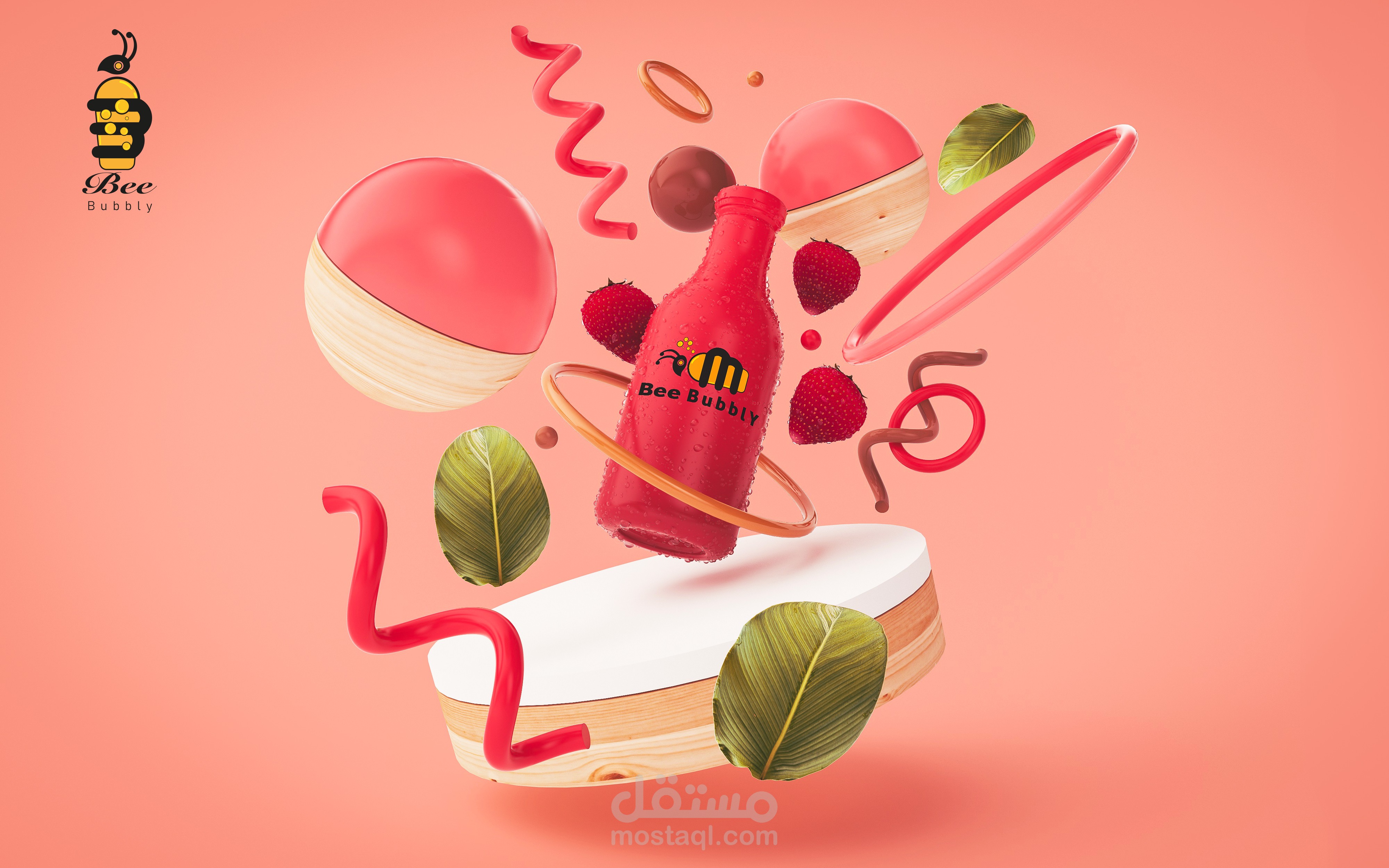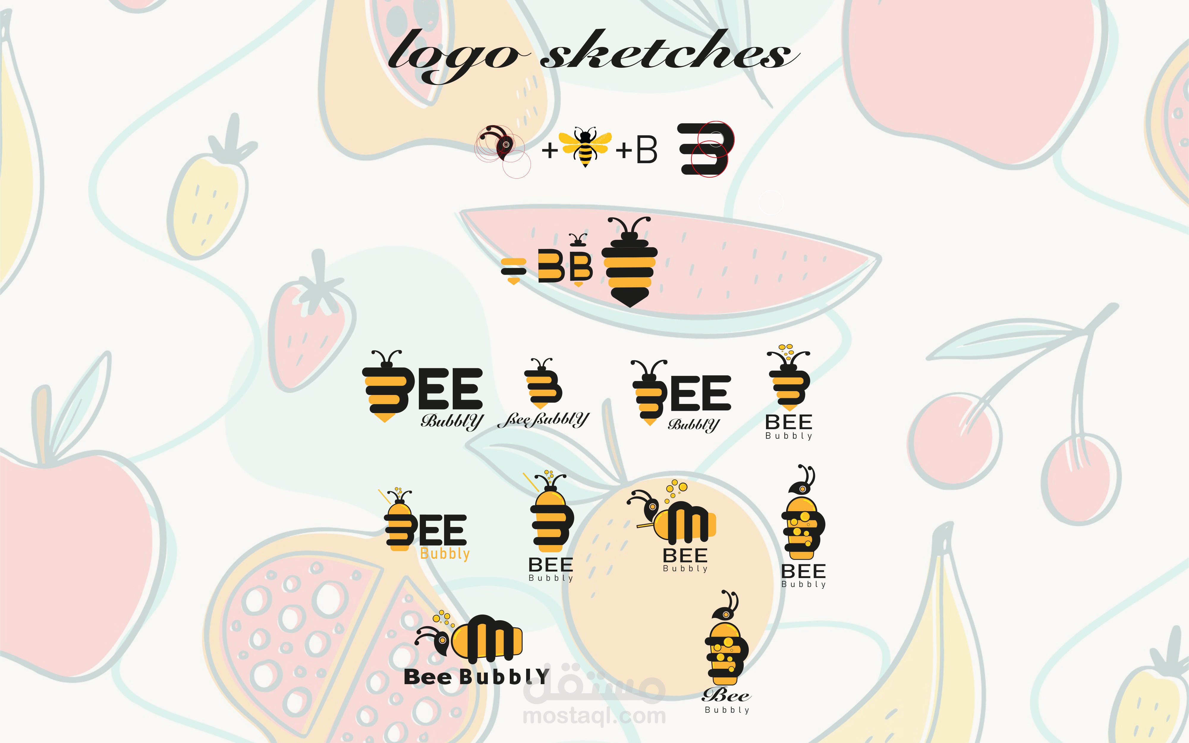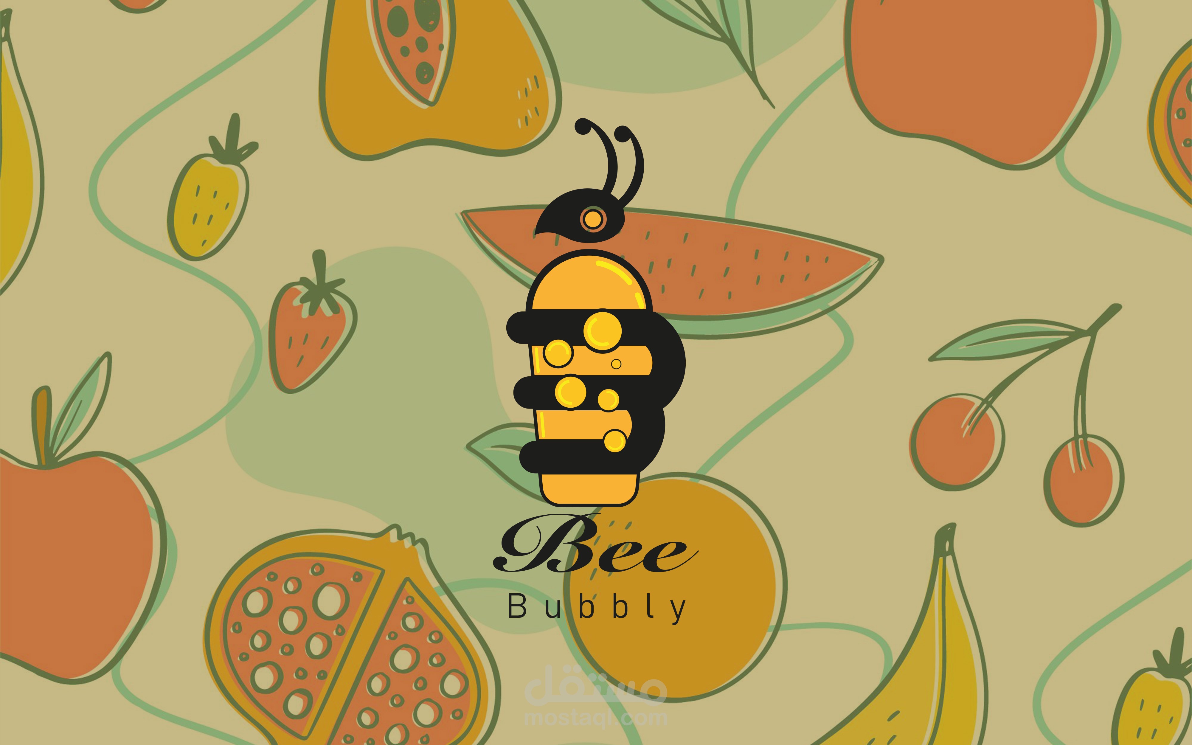 الفكره في التصميم دمج B و الكوب و النحله التي تعتبر العنصر الاساسي