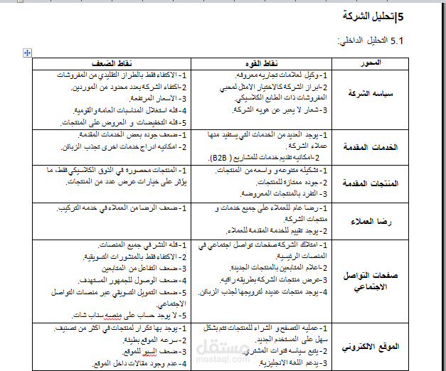 2: تحليل داخلي وخارجي للمشروع, حيث يتم التحليل بجوانب كثيره عن المشروع و صفحاته و موقعه و اهم نقاط القوه والضعف الداخليه و الخارجيه.