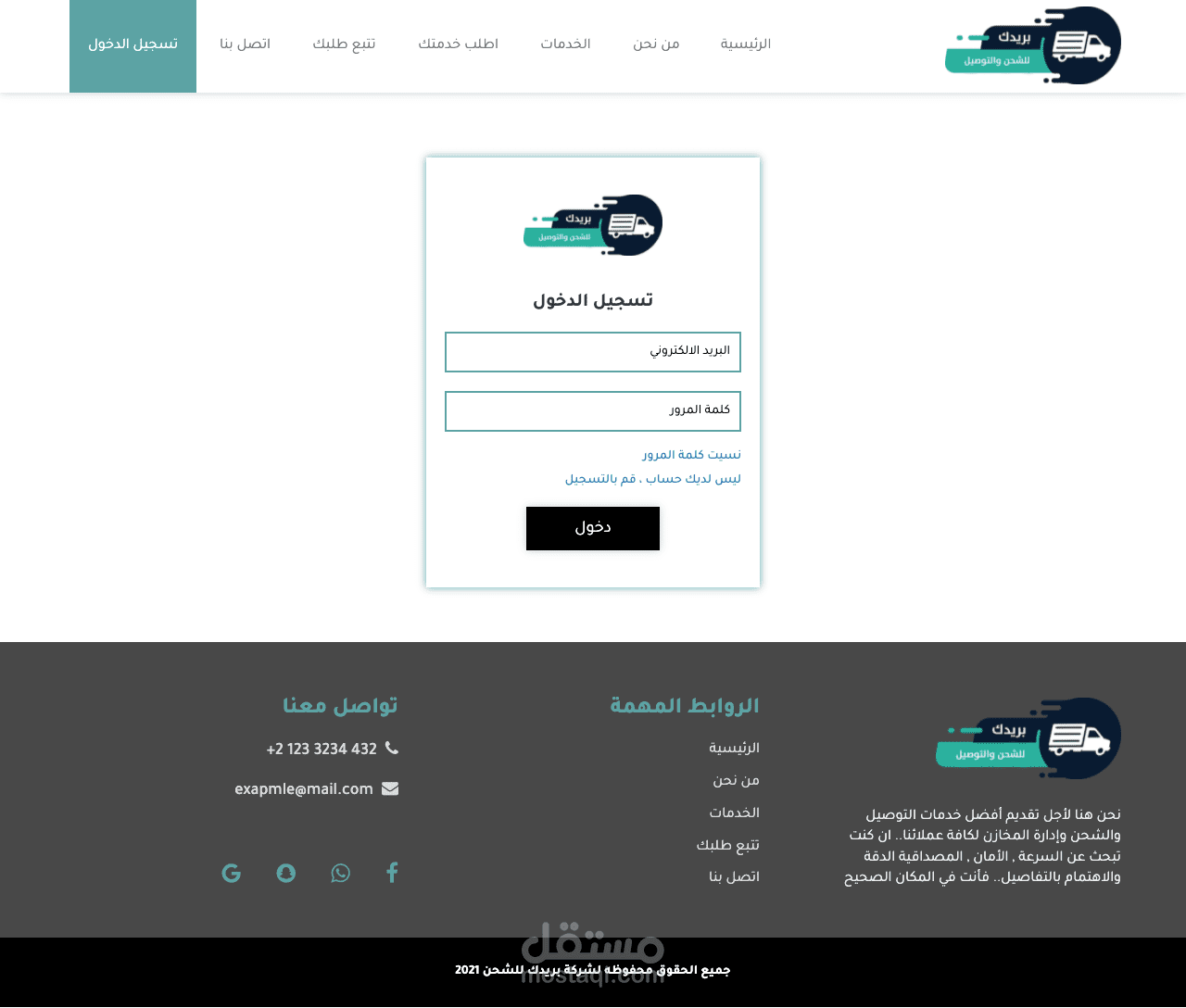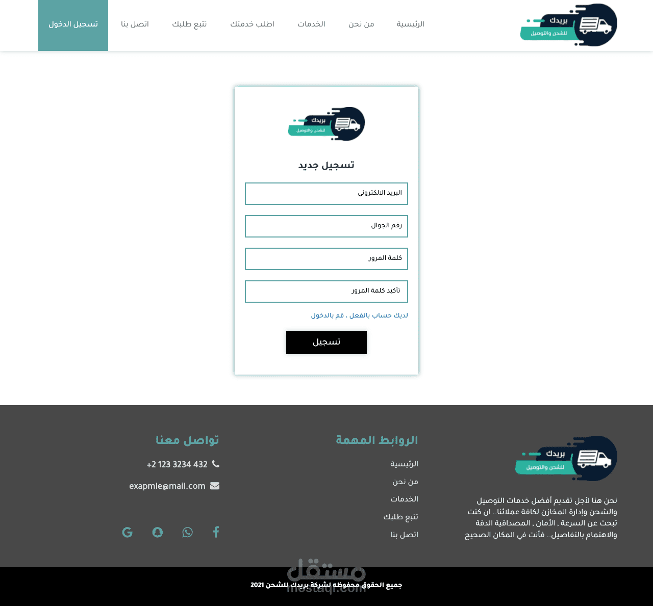 هو عبارة عن تطبيق ويب لشركة متخصصه في مجال الشحن