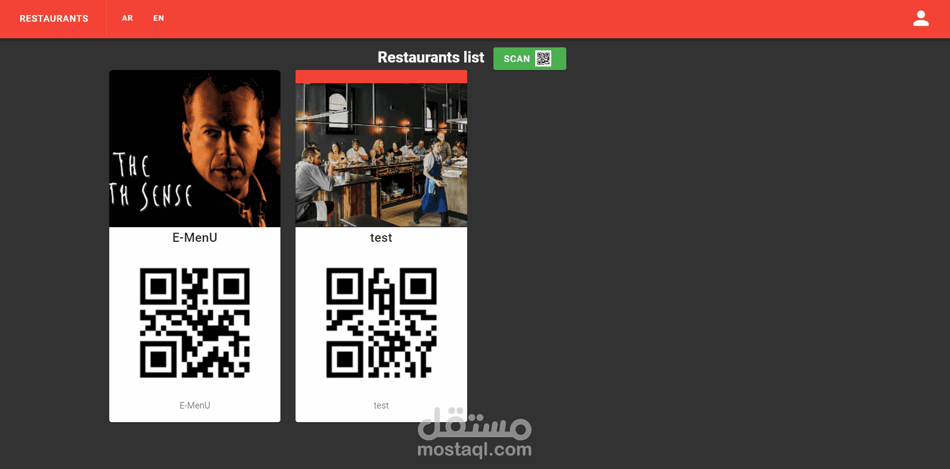 الموقع يسمح لمسح ال QR Code لتحصيل منيو المطعم