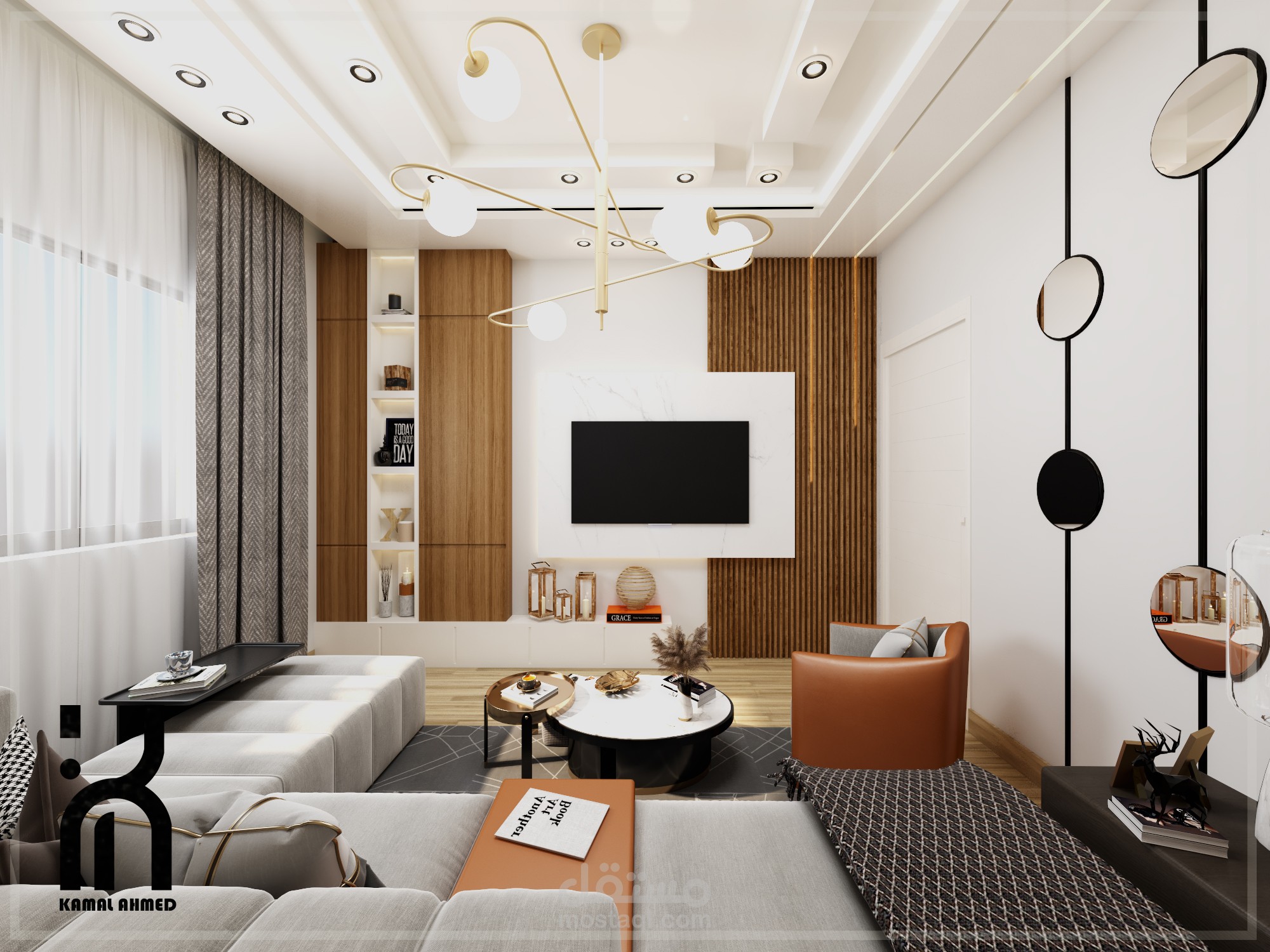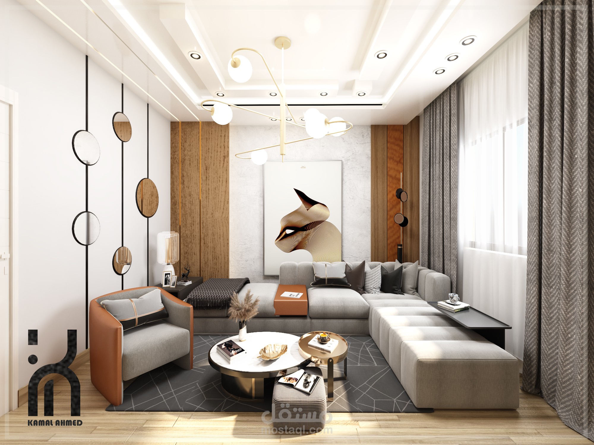 تصميم غرفة معيشة تتميز بالفخامة والبساطة في التصميم