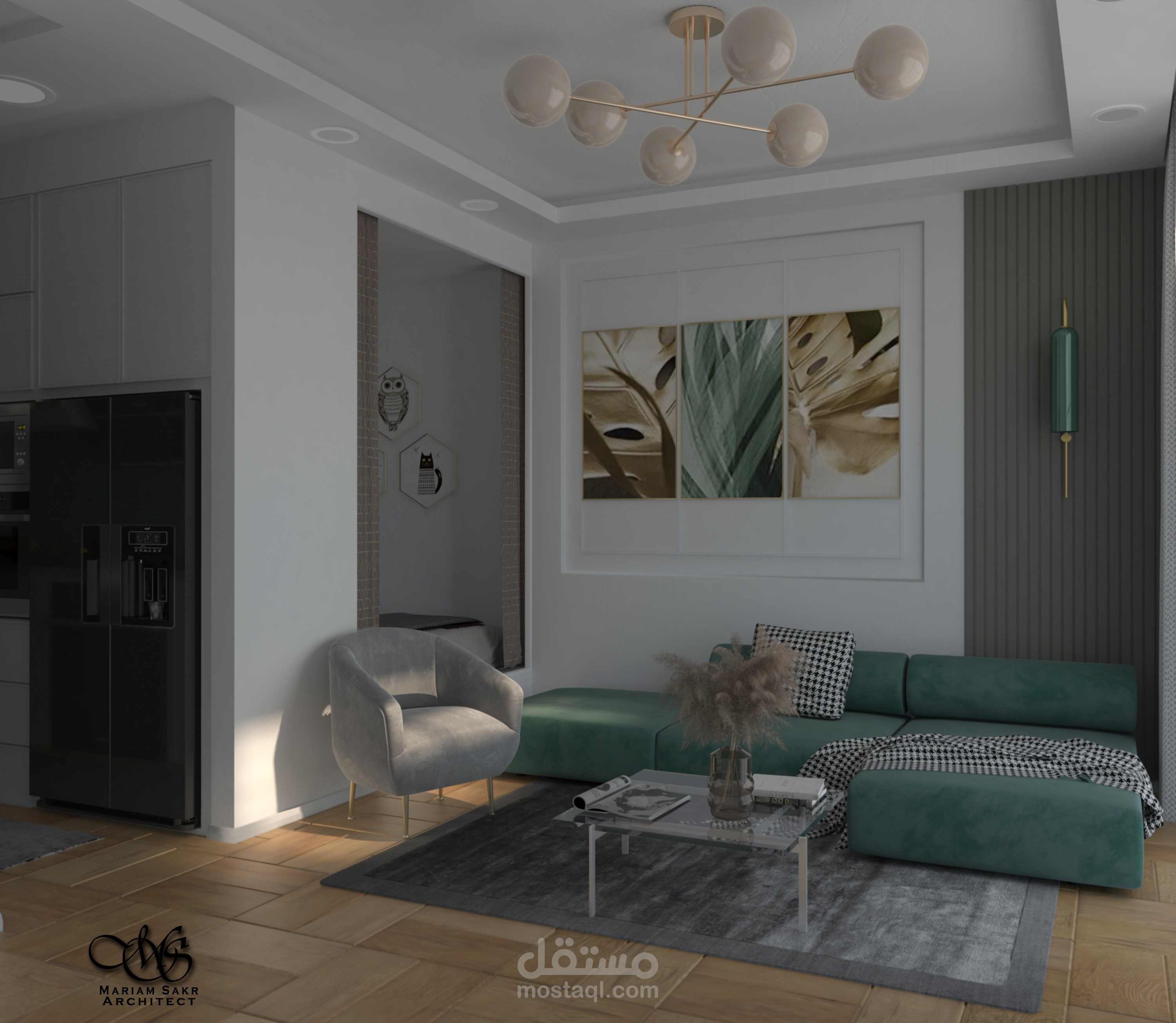 الفراغات صاله متصله بشكل مباشر بالمطبخ وفراغ النوم