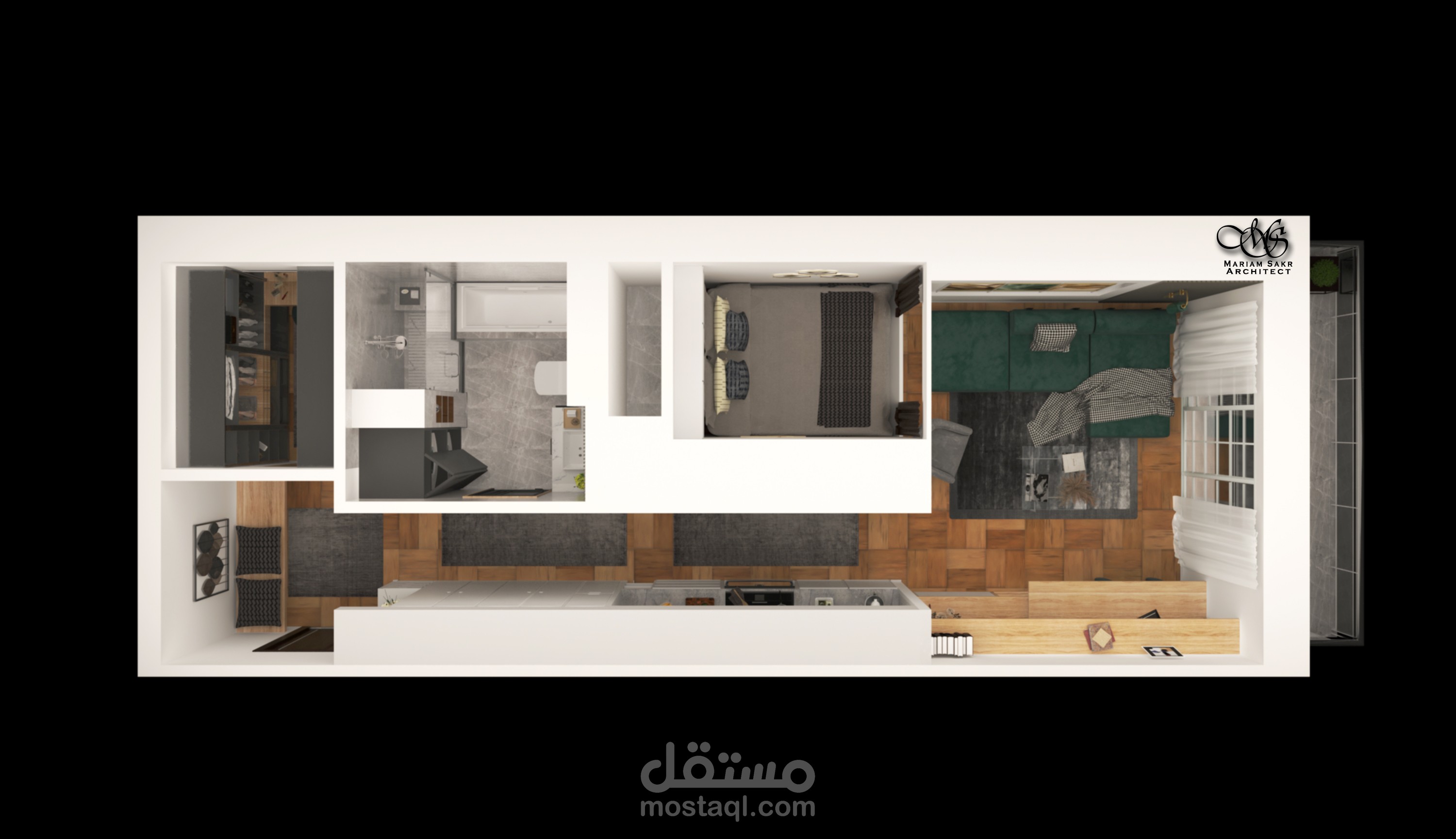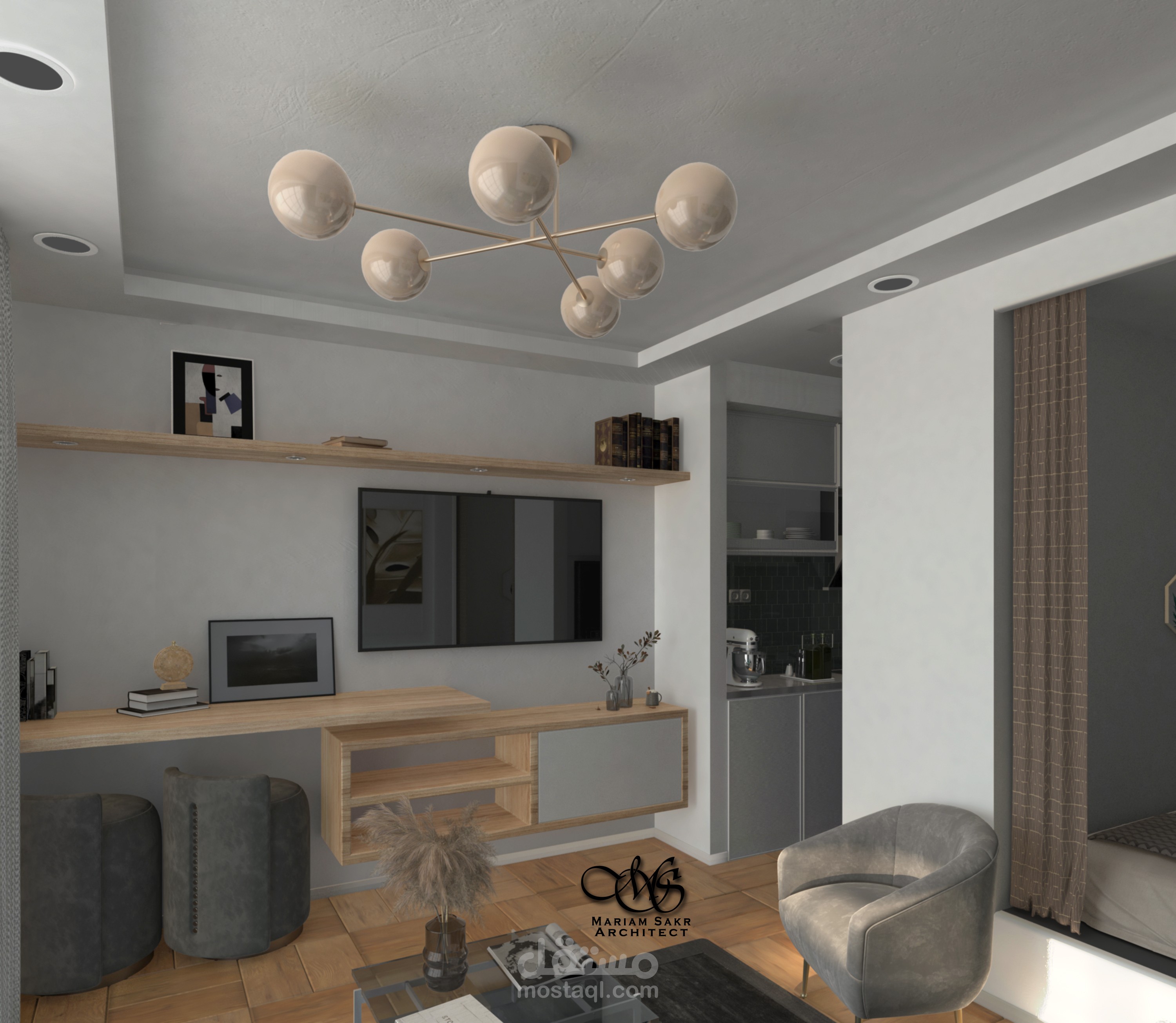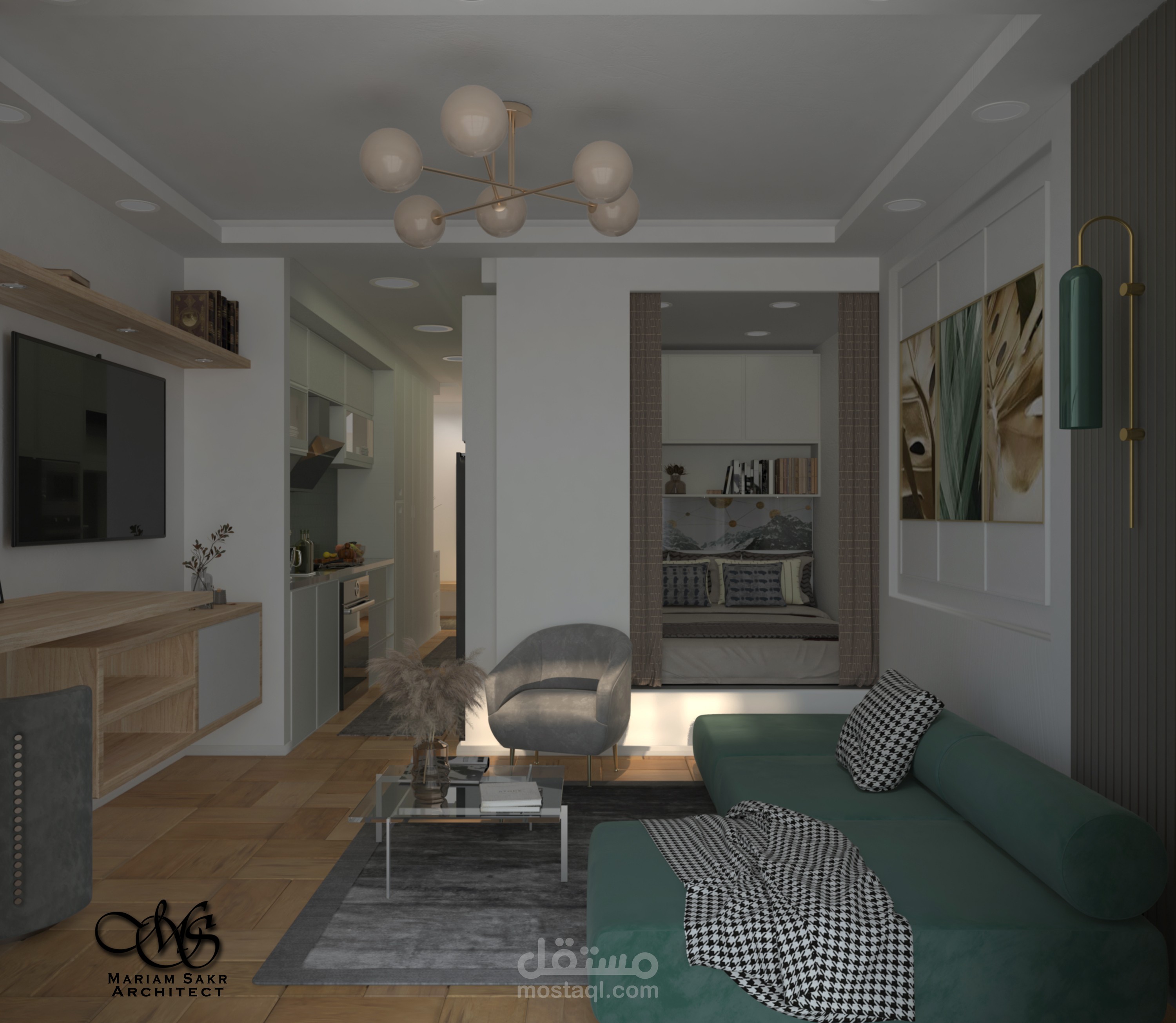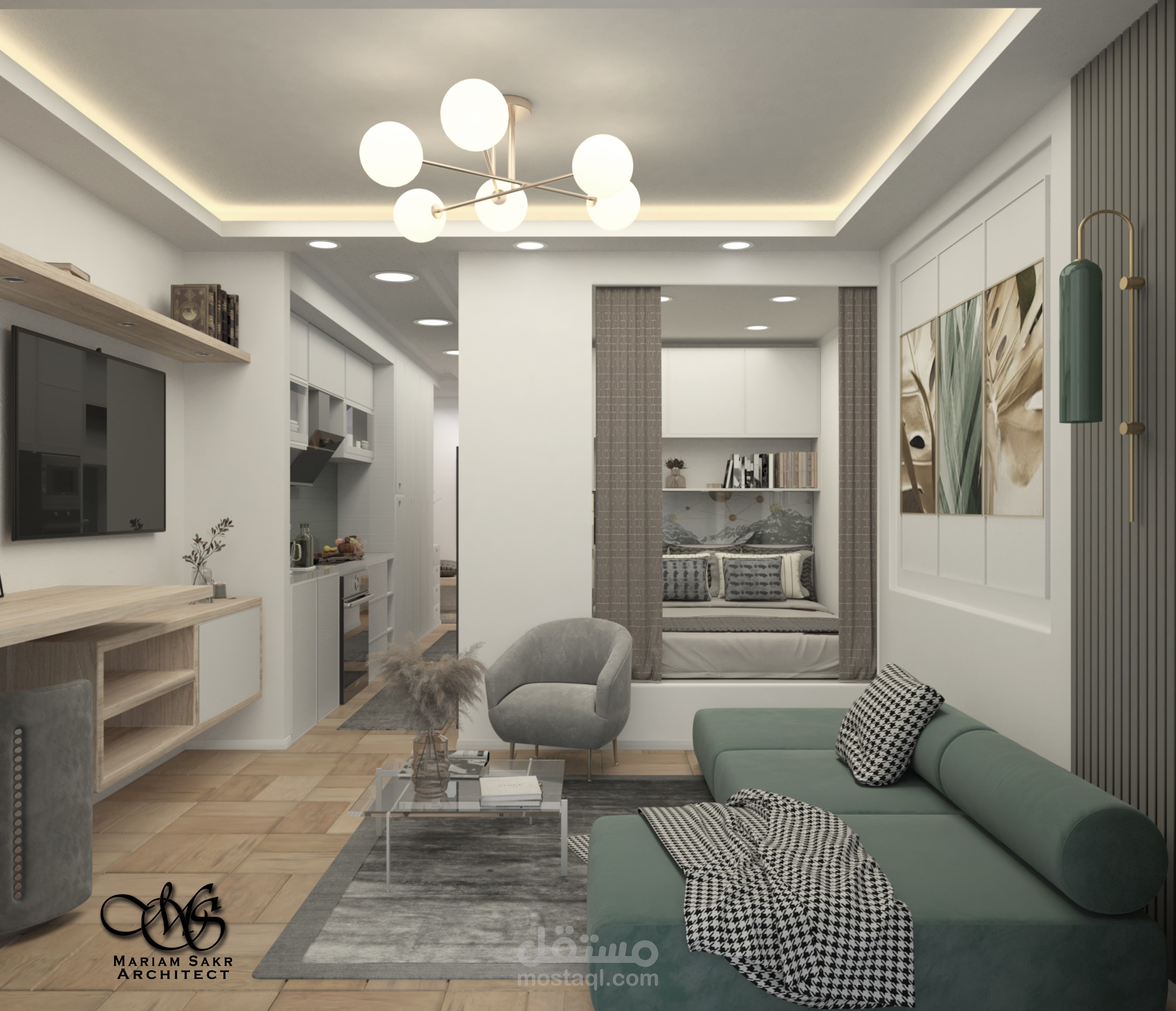 تصميم شقة استوديو بطراز حديث