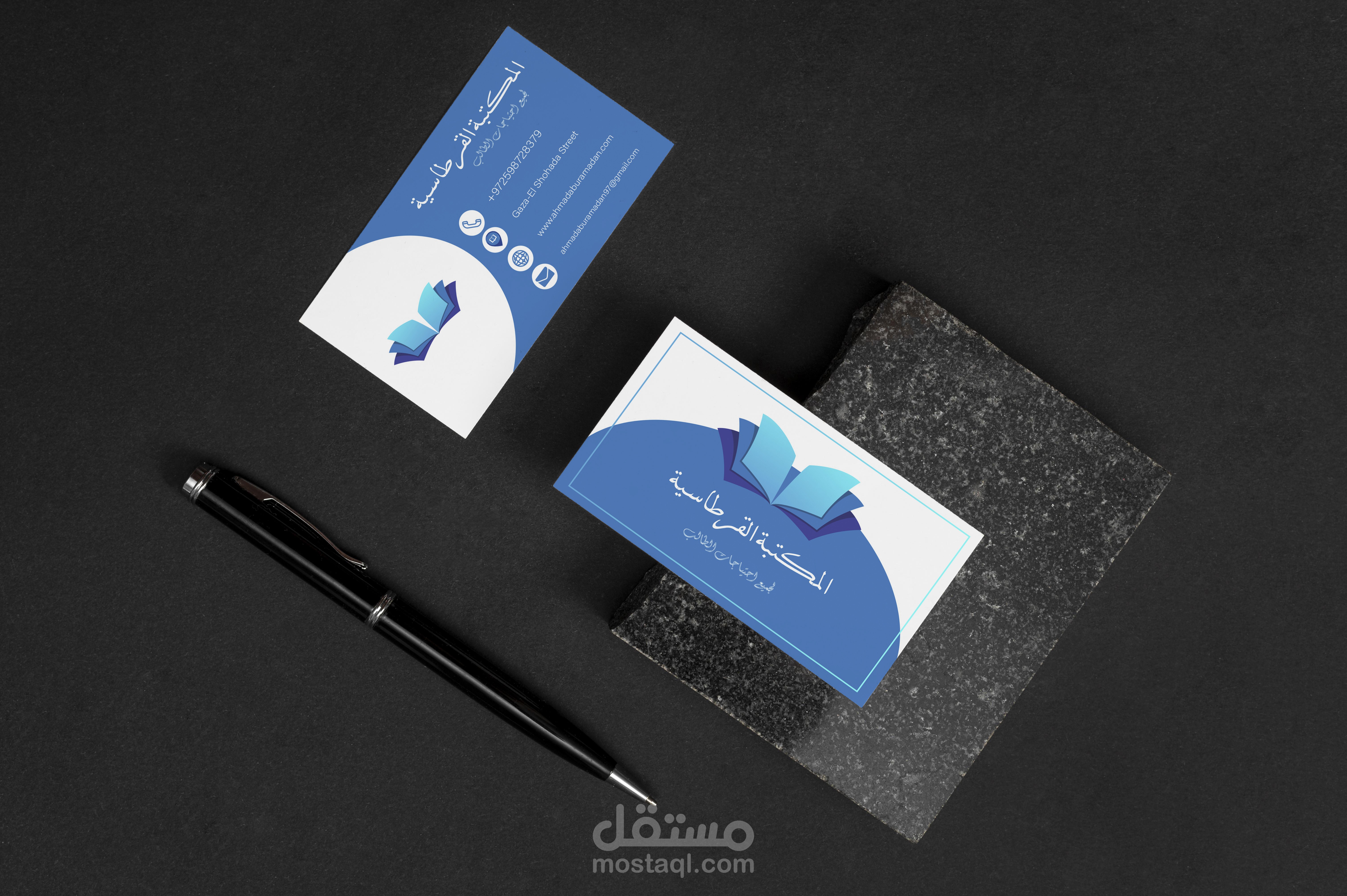 تصميم هوية بصرية لمكتبة قرطاسية بكامل تفاصيلها من كرت شخصي للمكتبة , رول اب , يافطة محل(لوحة اعلانية) , اقلام , ترويسة , وكل ما يلزم داخل الهوية البصرية .