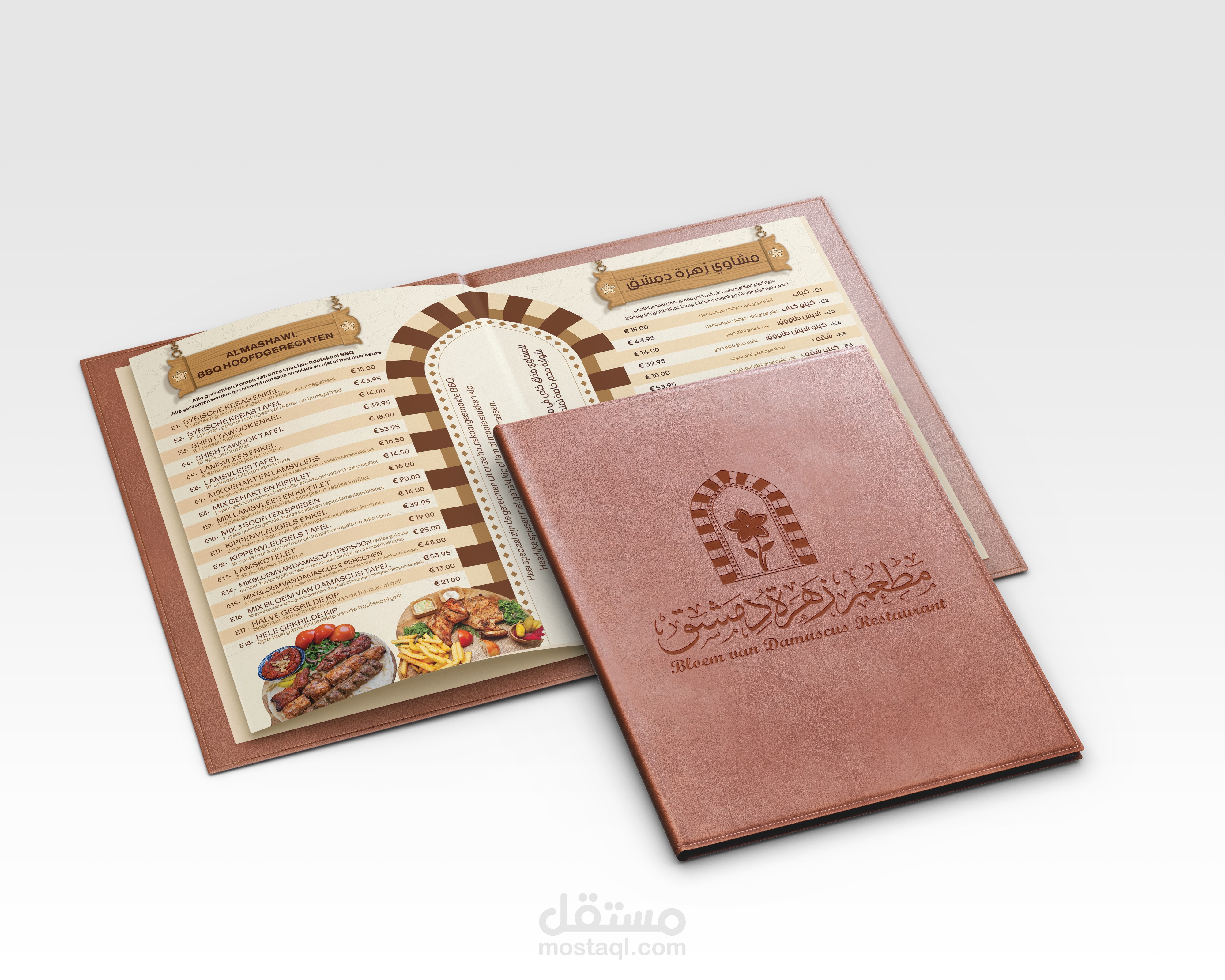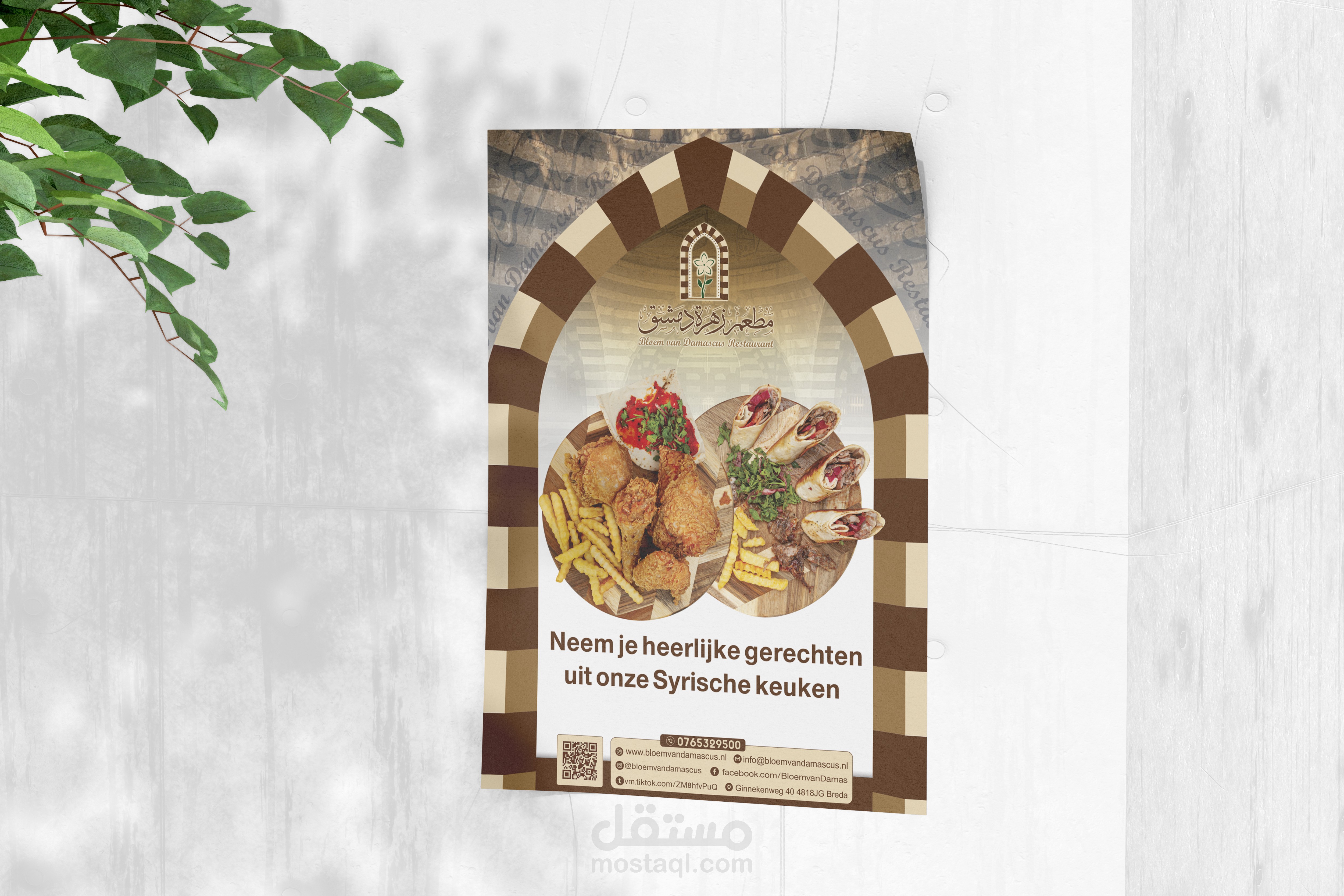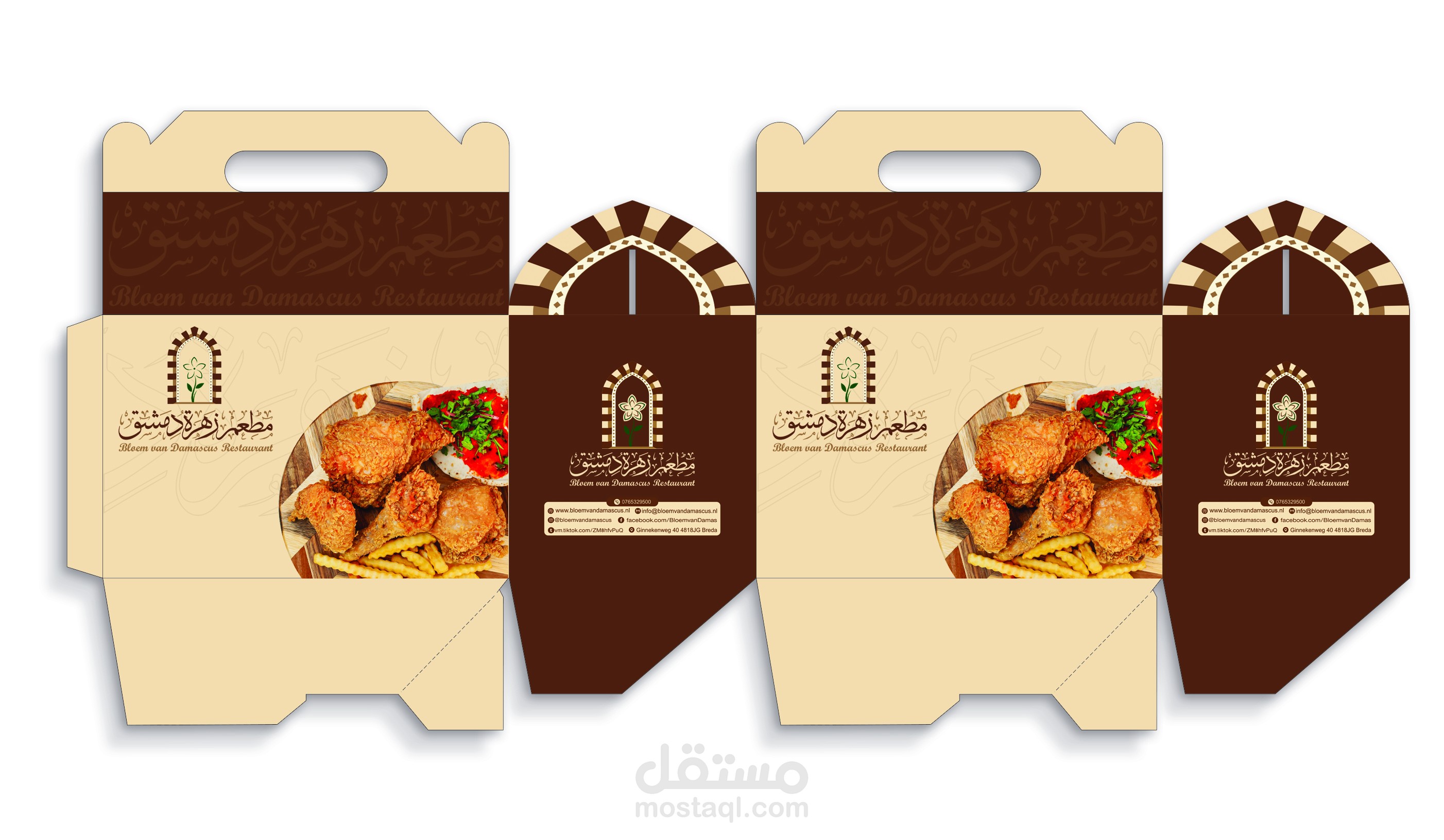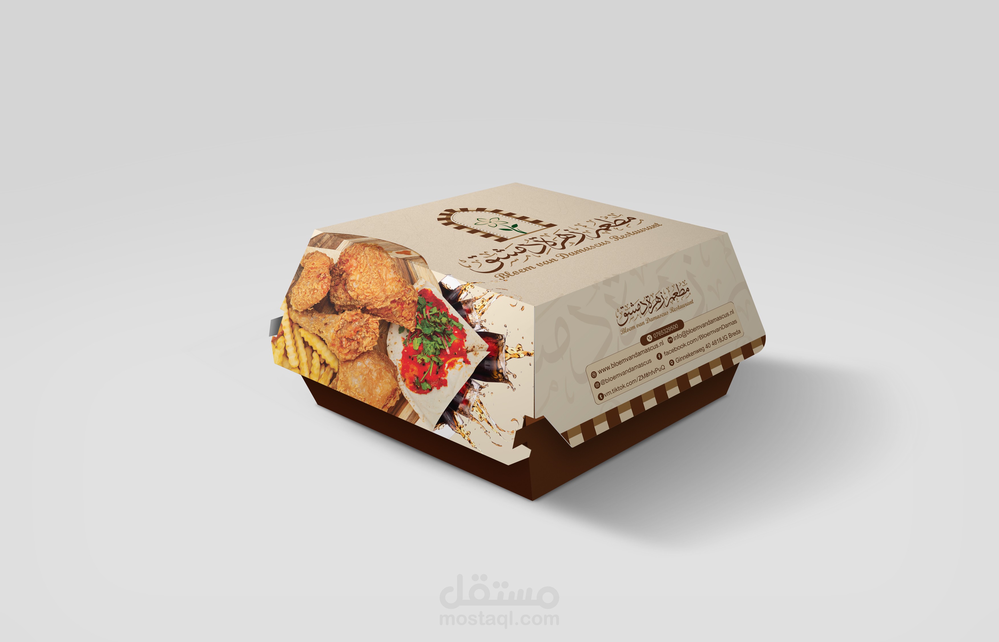 هوية بصرية متكاملة لمطعم يمثل الهوية السورية وبالاخص الهوية الدمشقية ويجسدها عبر تصاميم تحاكي التراث الدمشقي والممزوج بعطر الياسمين الدمشقي