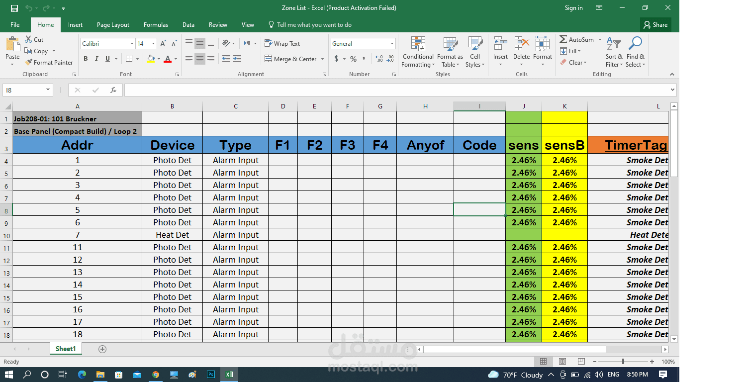 This is a sample of a project that was to rearrange and organize data from pdf to excel sheet to be entered into fire alarm software.