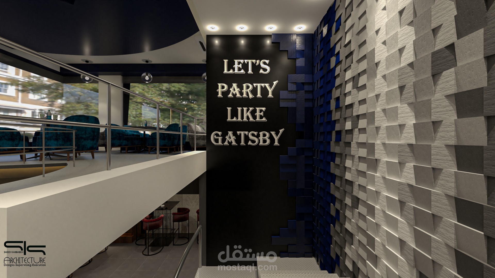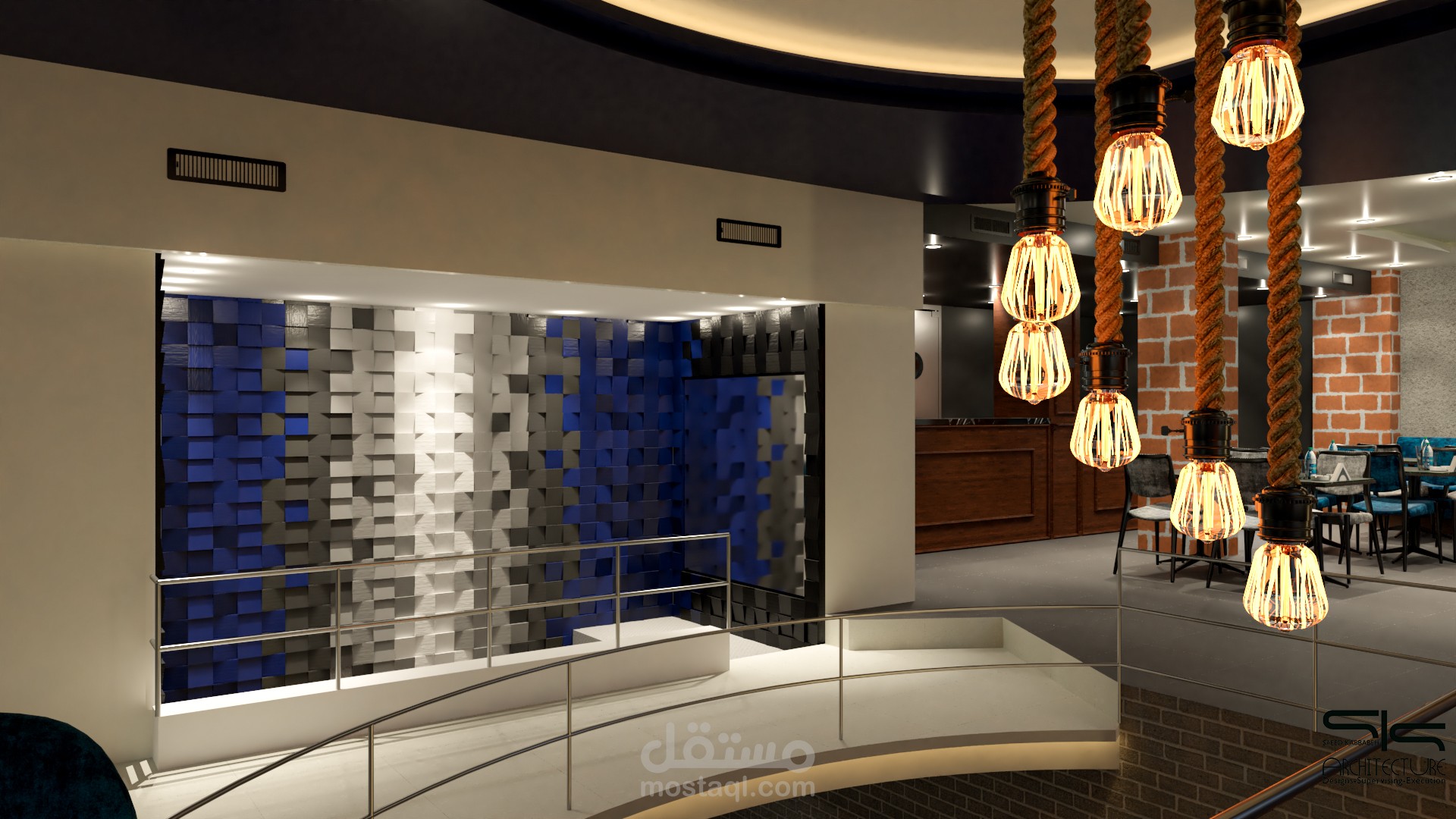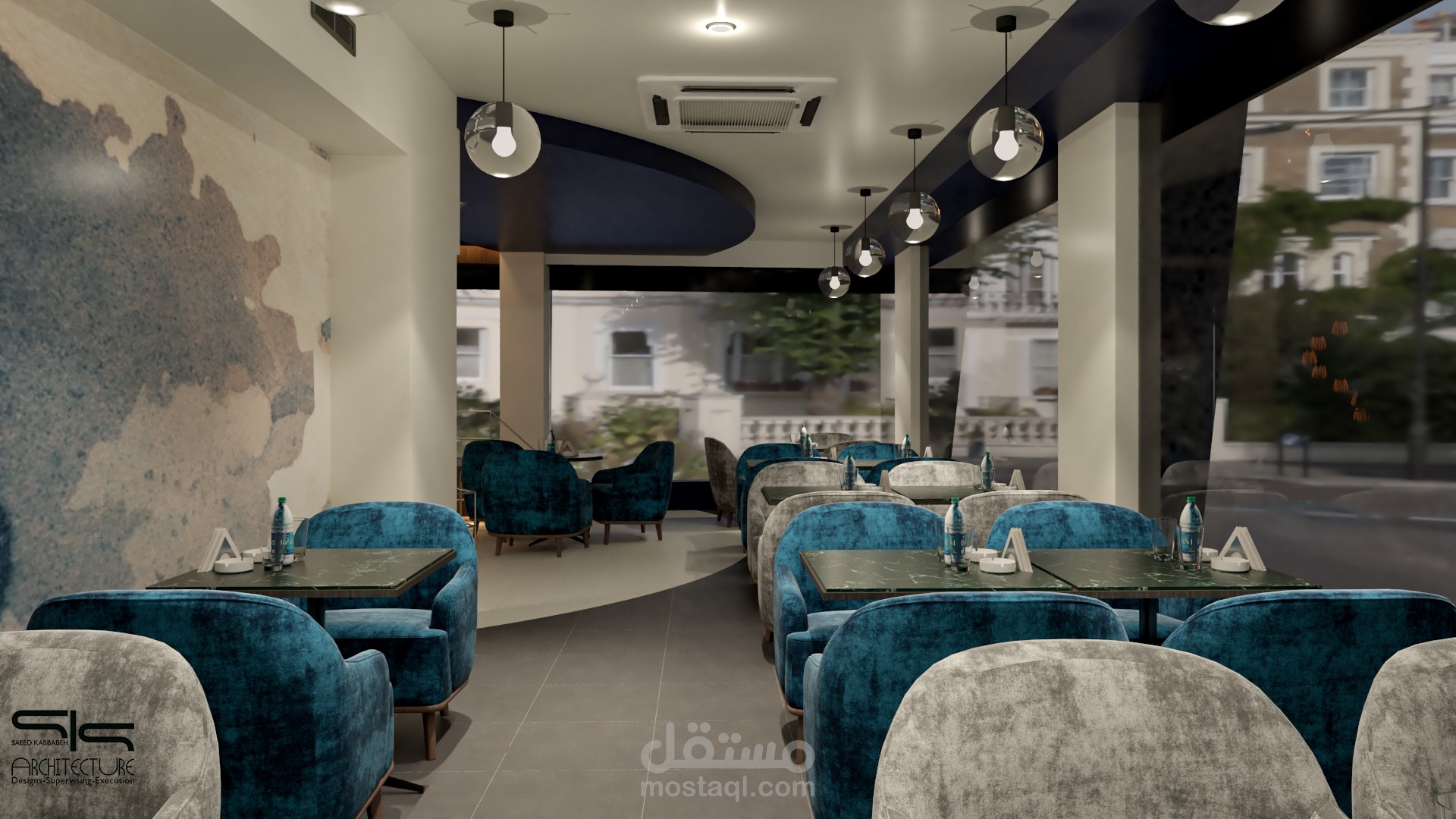 تم انشاء العمل بالاعتماد على برامج هندسية مثل autocad - sketchup - vray - photoshop