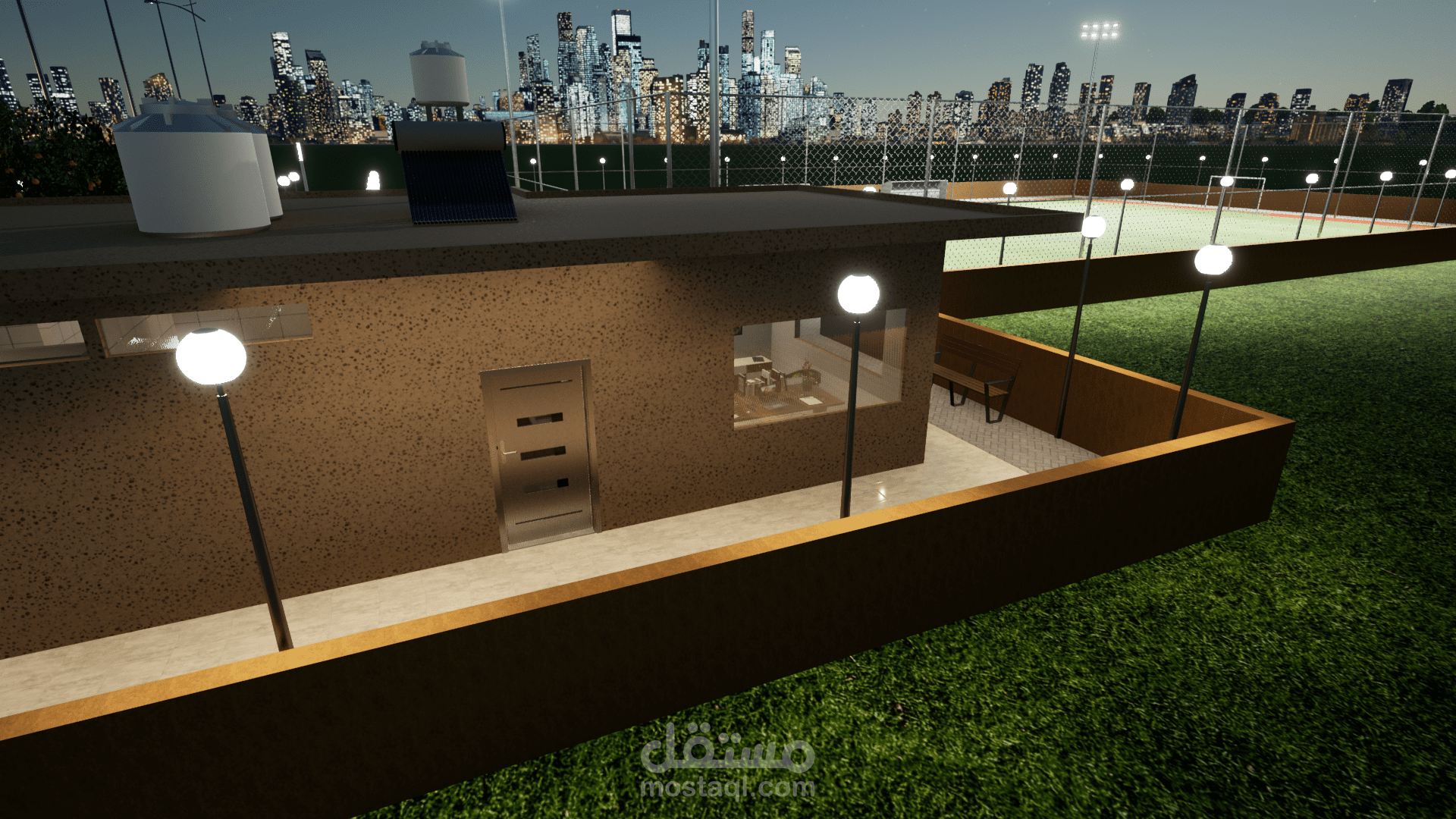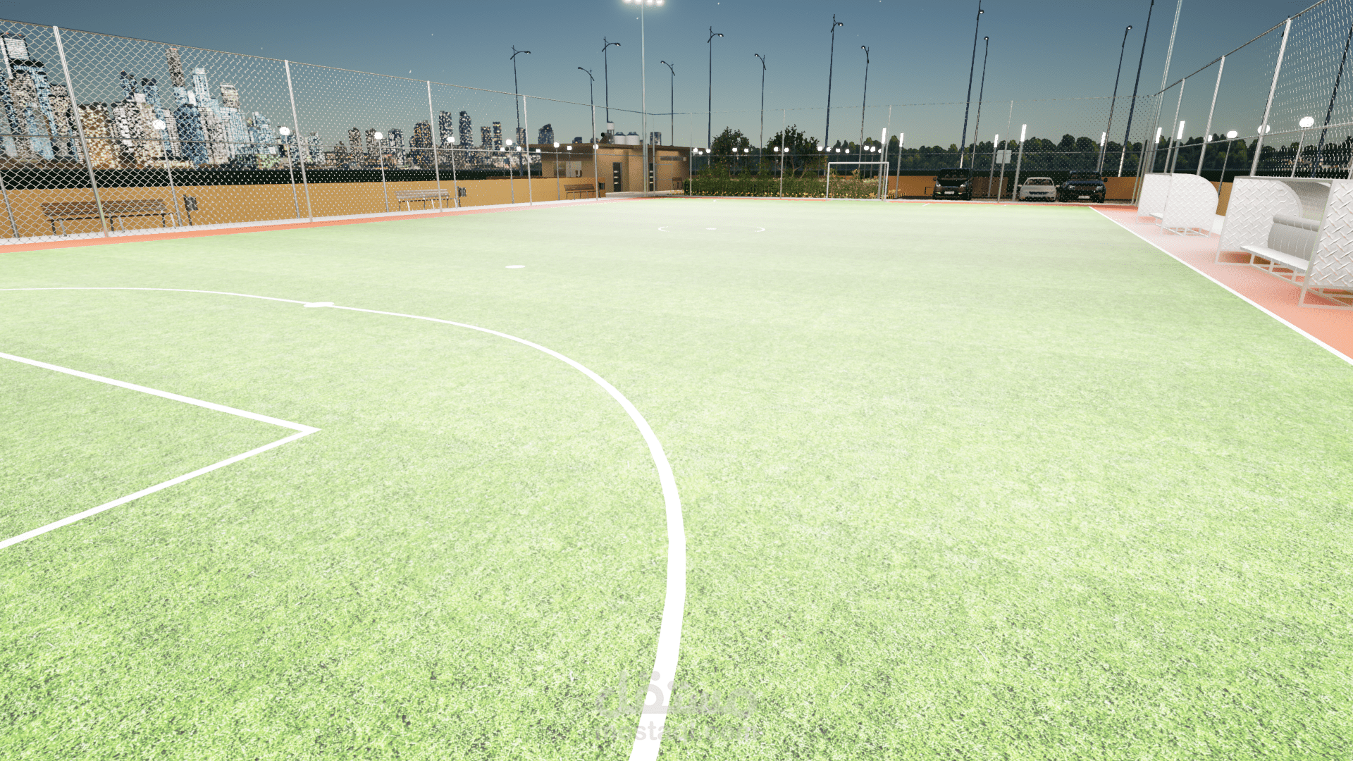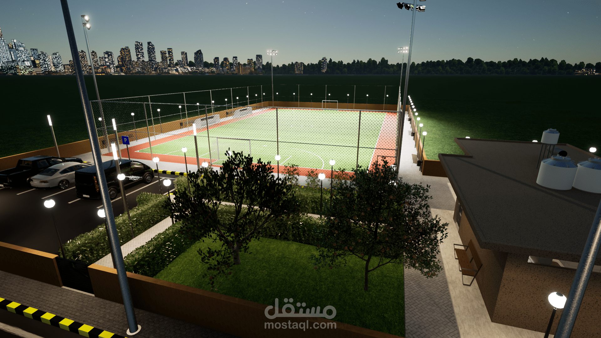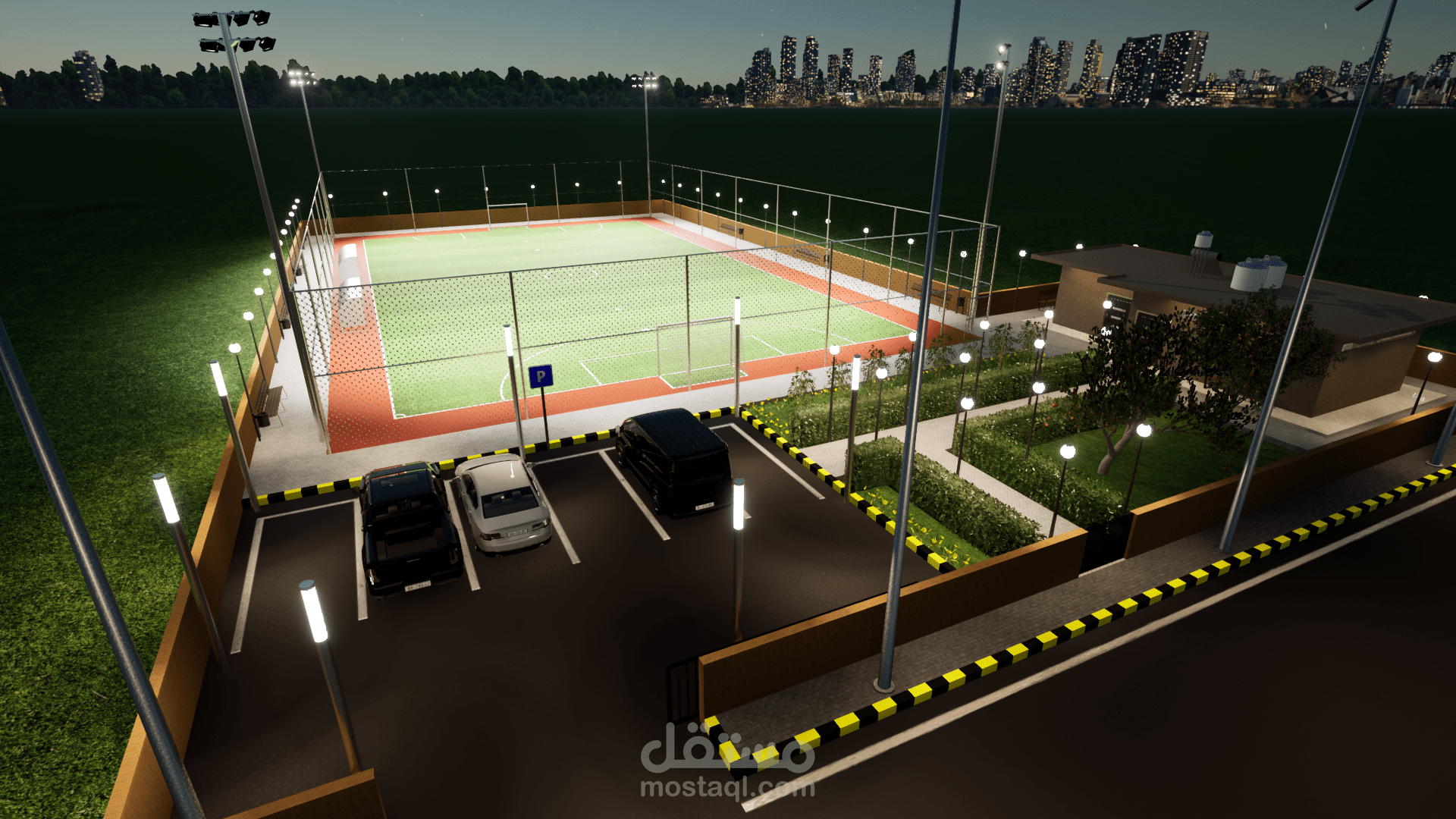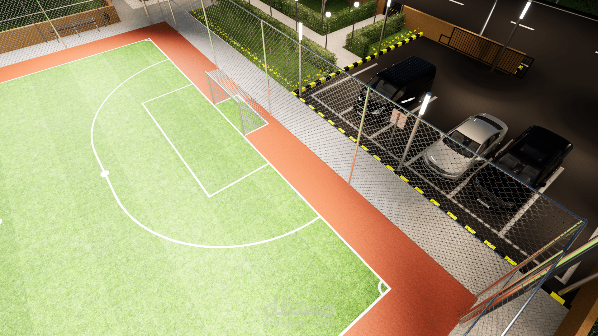 تصميم وتنفيذ ملعب كرة قدم خماسي مع كافة المخططات التنفيذية