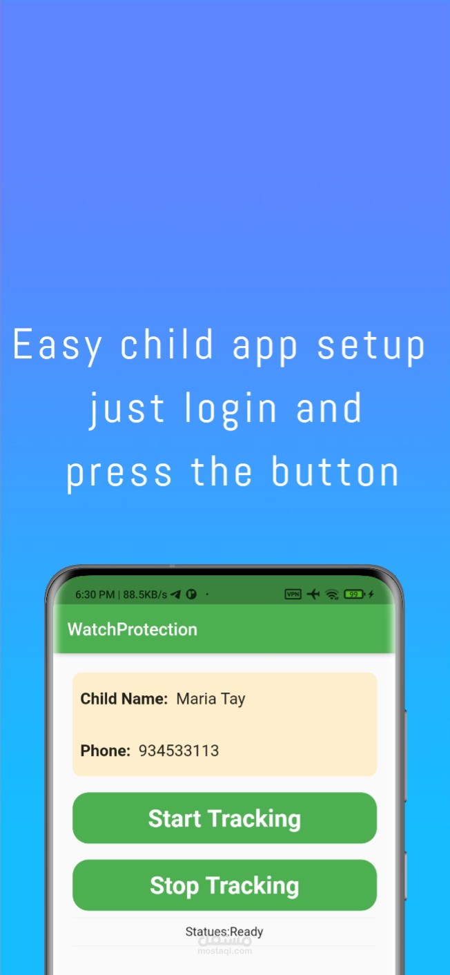 3. التطبيق تم تصميمه بحيث يكون نشط دائما دون استهلاك كبير لبطارية جهاز الطفل.