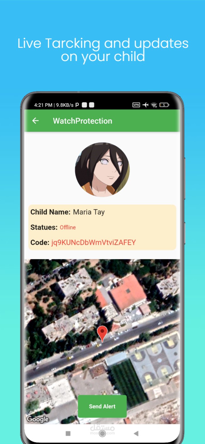 1. تحديد الموقع الدقيق للطفل وارساله لتطبيق الاهل بكل الاوقات عن طريق Google Maps