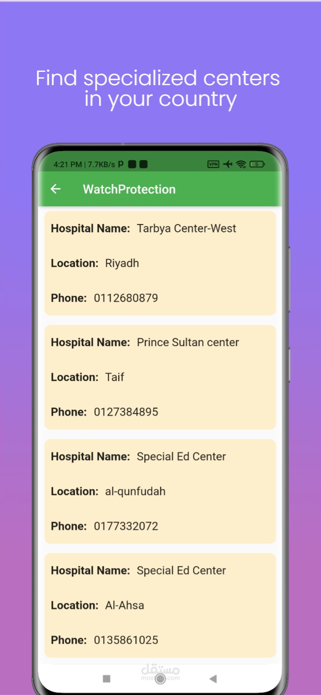 3. ممكن للاهل ارسال اشعار للجهاز الموجود عليه تطبيق الطفل, الإشعار يصدر صوت انذار عالي لينبه اي شخص قريب من الطفل بوجود حالة طارئة ويرسل رقم ولي الأمر للجهاز ليتم التواصل معه.