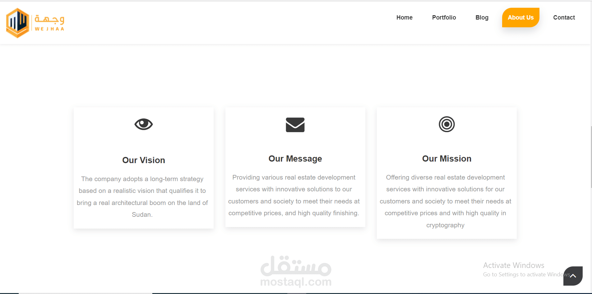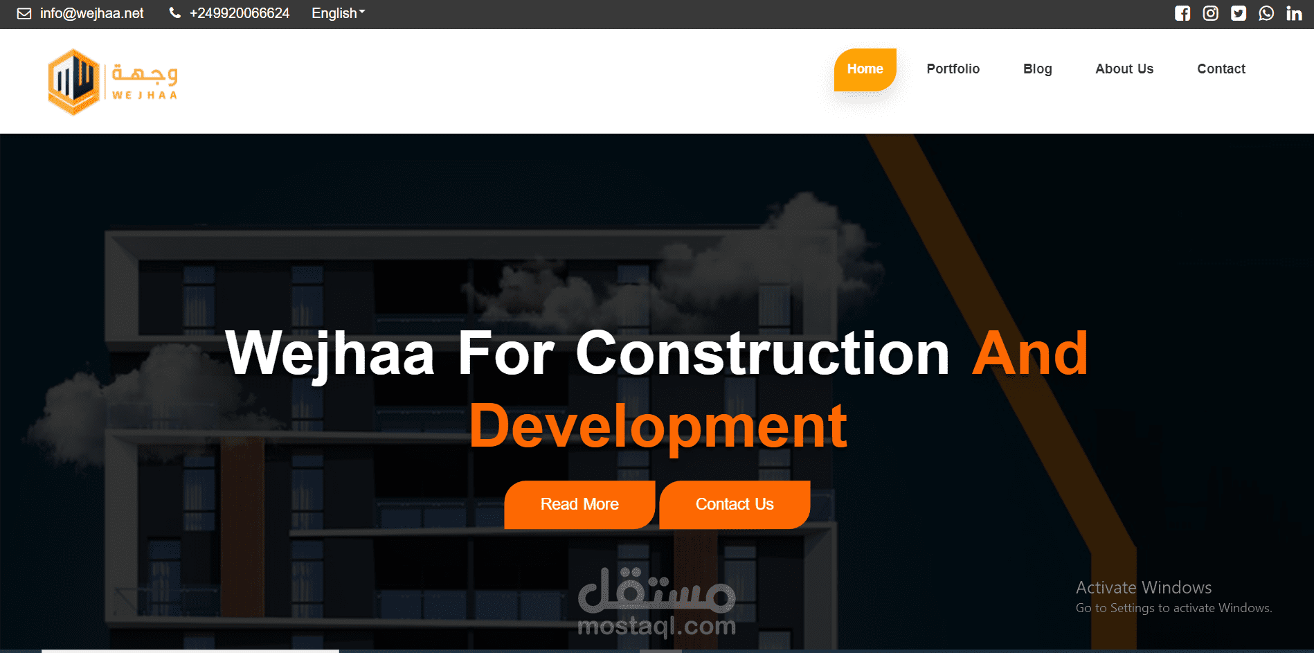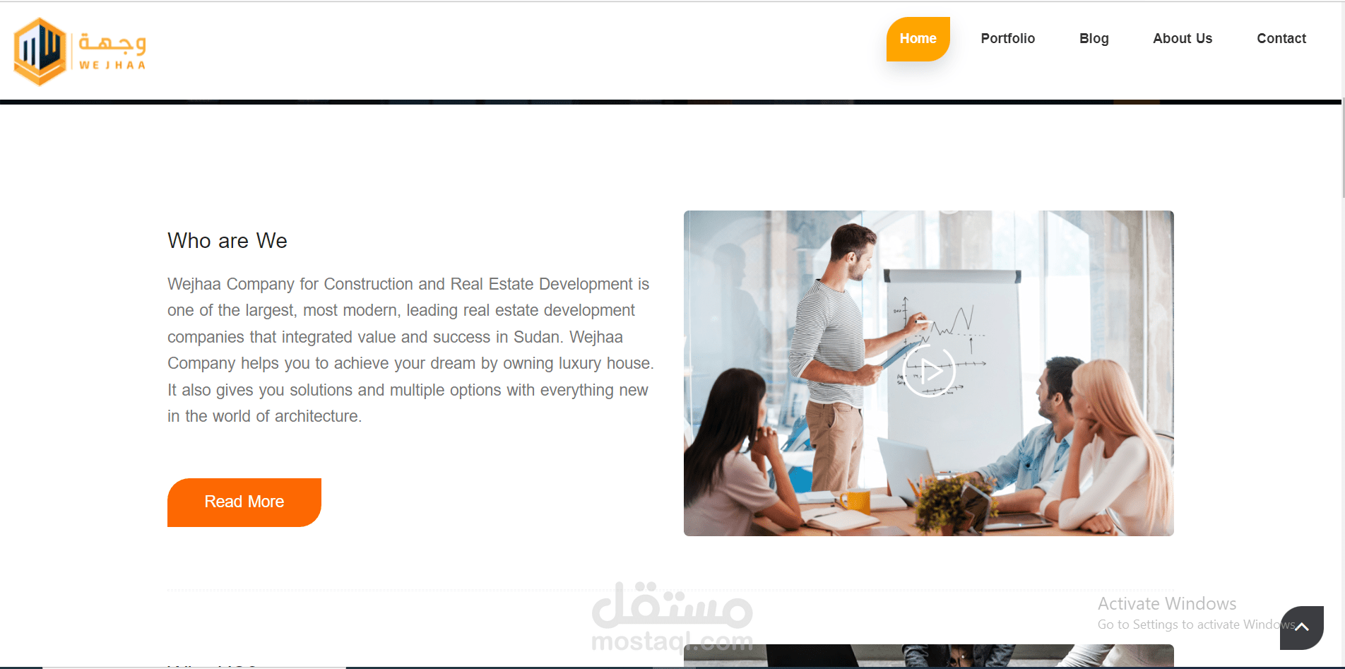 موقع تعريفي لصالح شركة وجهة للإنشاء والتطوير العقاري يحتوي على الصفحة الرئيسية - المشاريع - من نحن- تواصل معنا