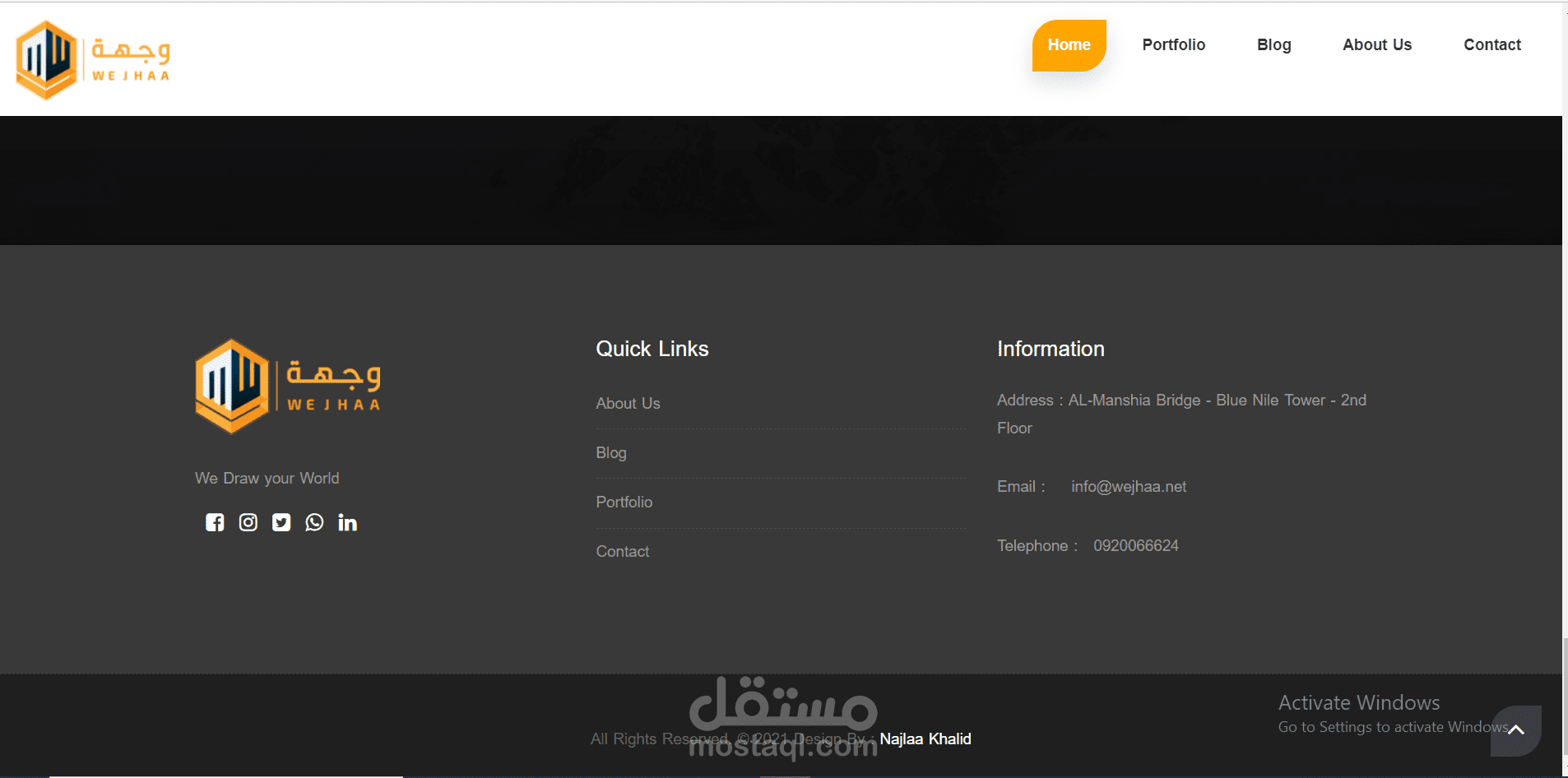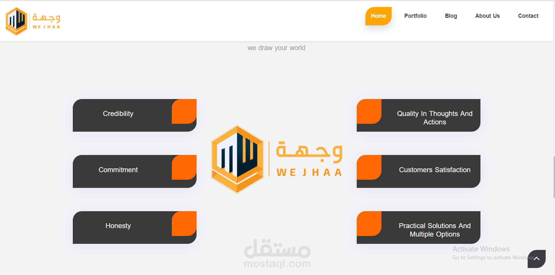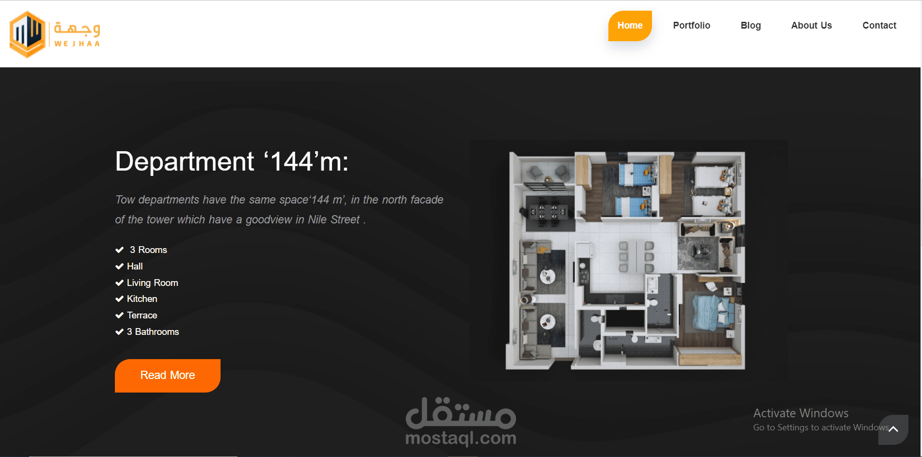 موقع تعريفي لصالح شركة وجهة للإنشاء والتطوير العقاري يحتوي على الصفحة الرئيسية - المشاريع - من نحن- تواصل معنا