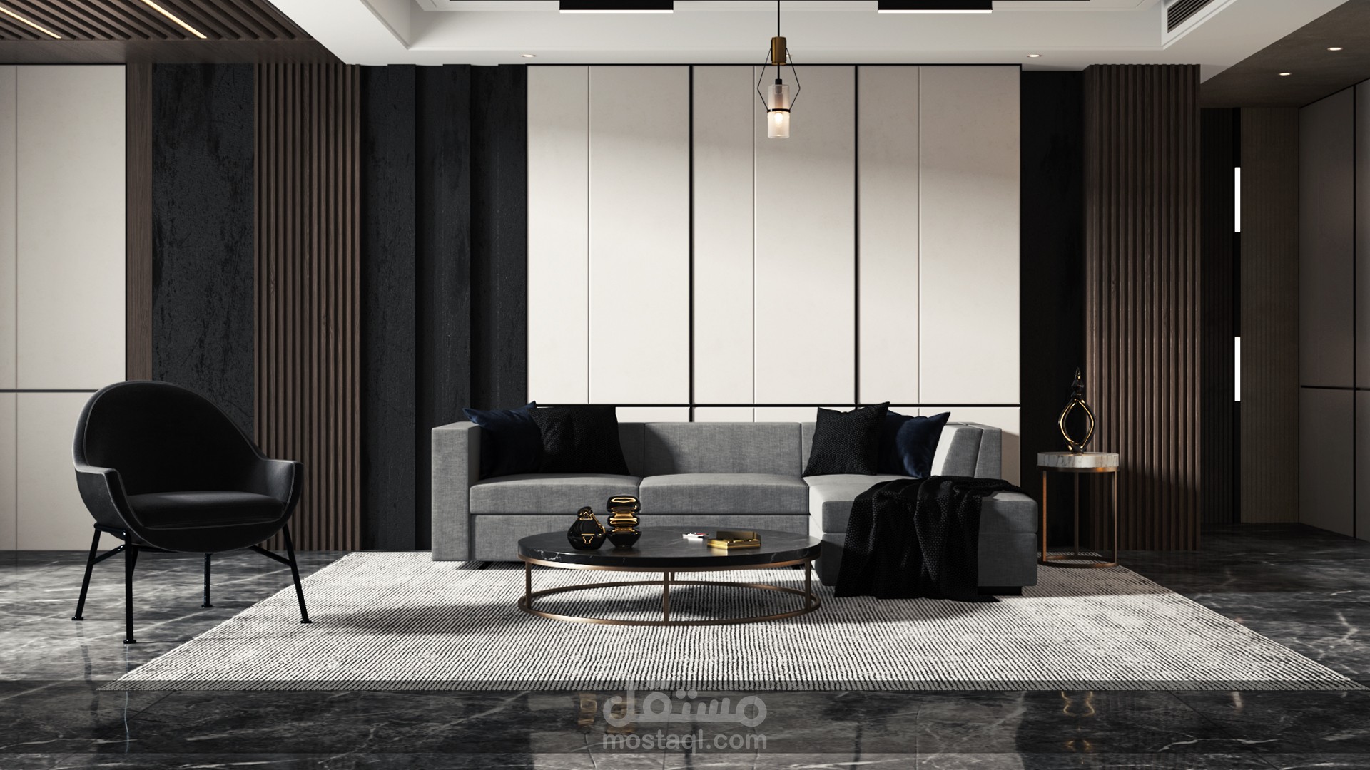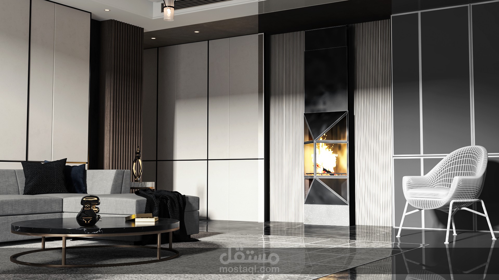 تم تنفيذ المشروع باستخدام 3ds Max و V-Ray مع مراعاة التفاصيل الدقيقة في الزخارف، والإضاءة، وتوزيع الأثاث.