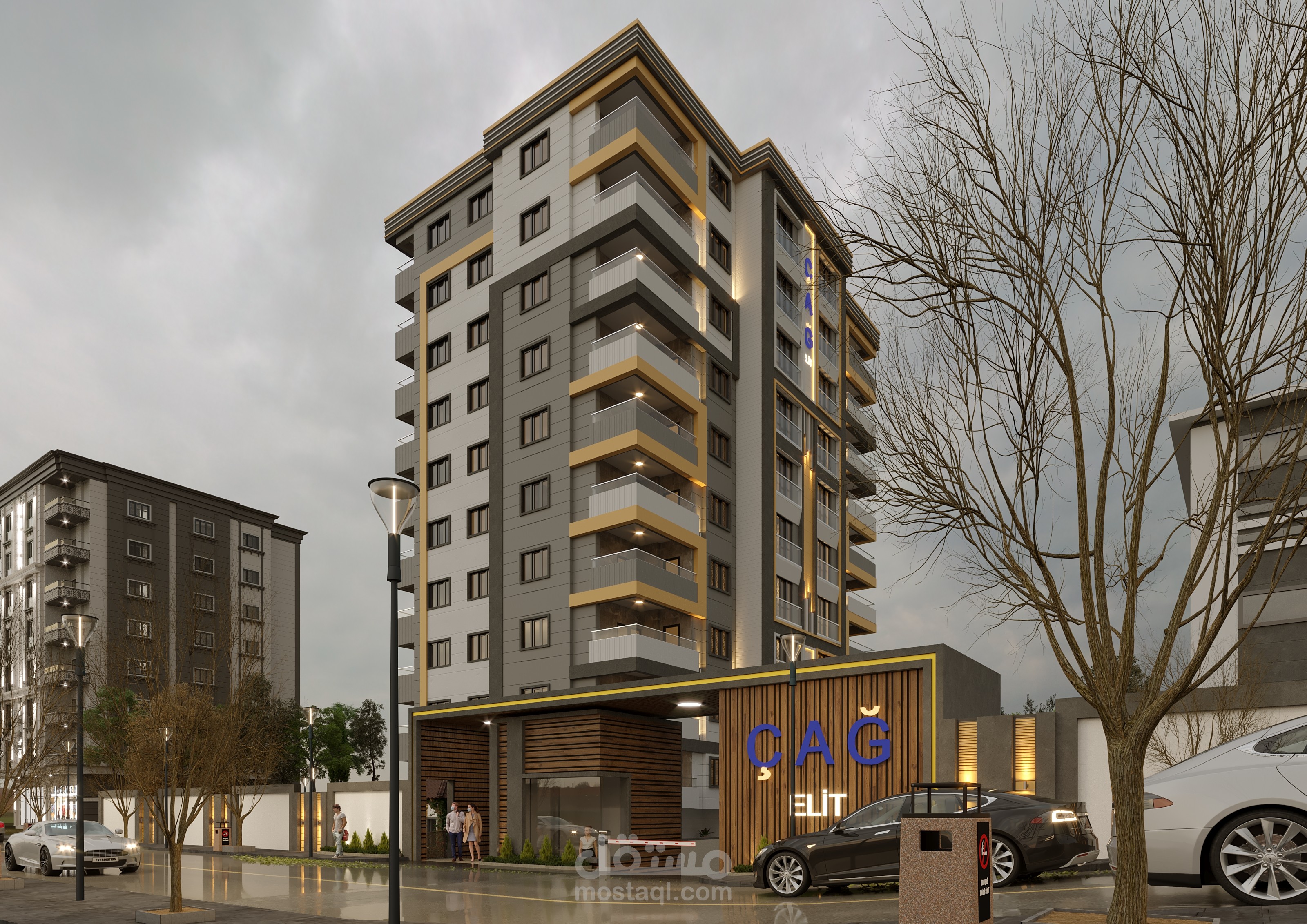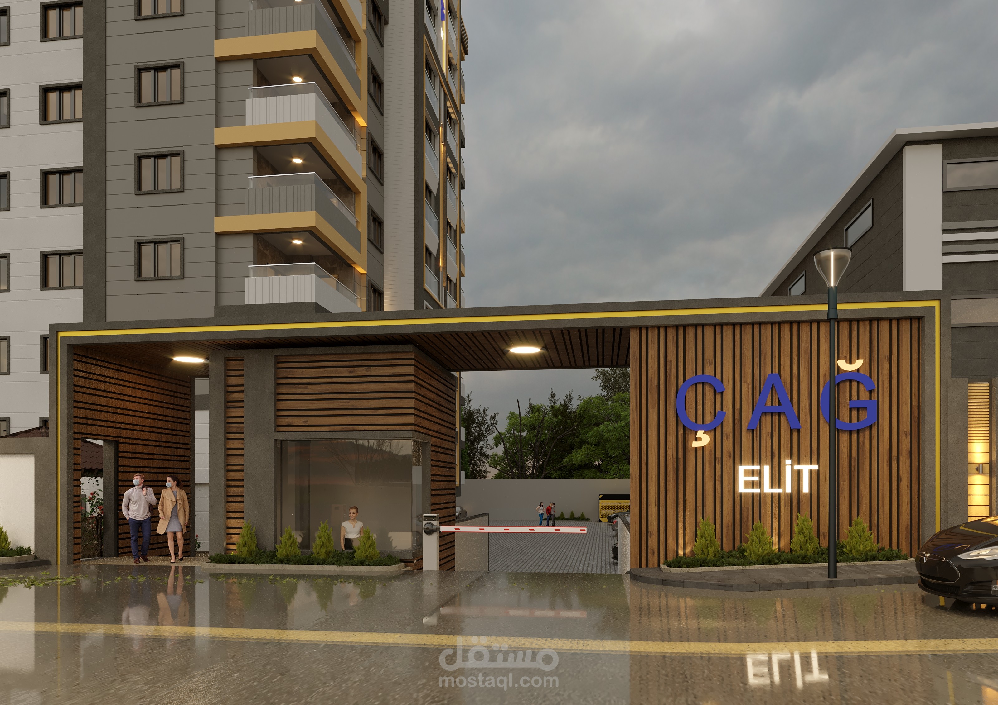 بتصميم داخلي وخارجي وحديقة المبنى مع عمل فيديو للمشروع