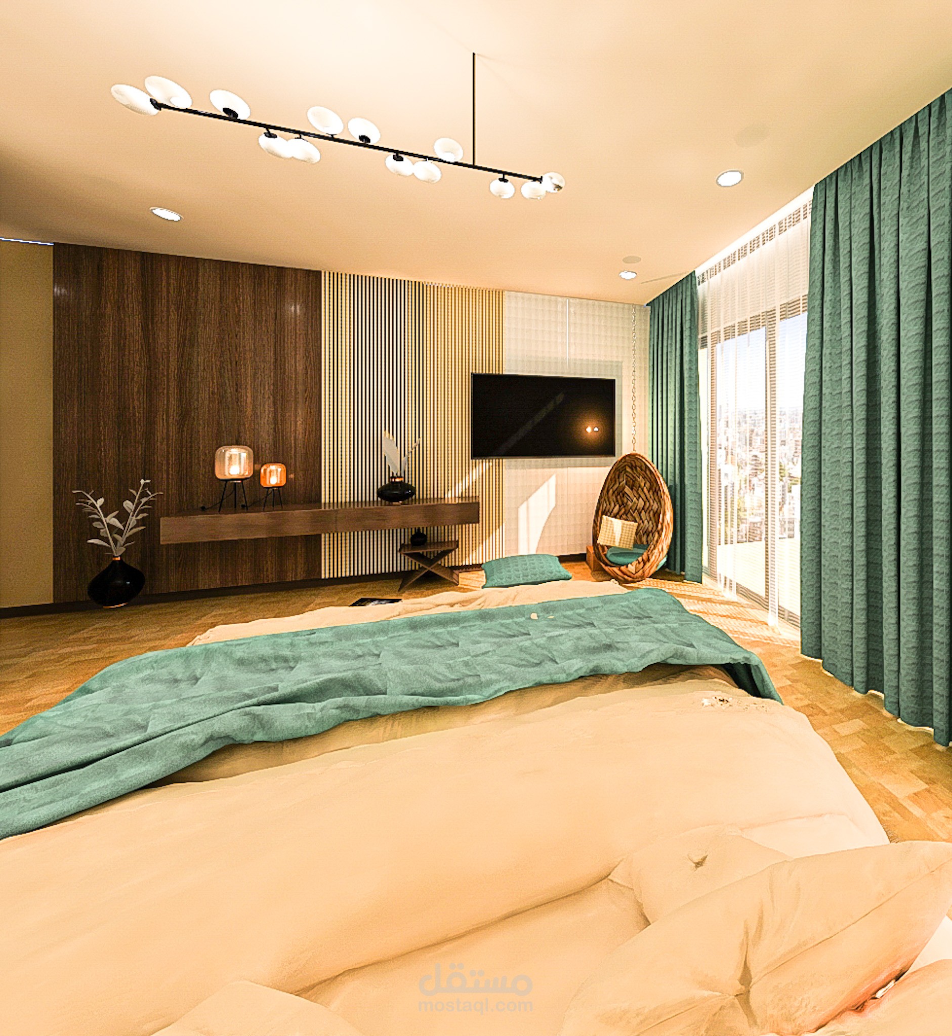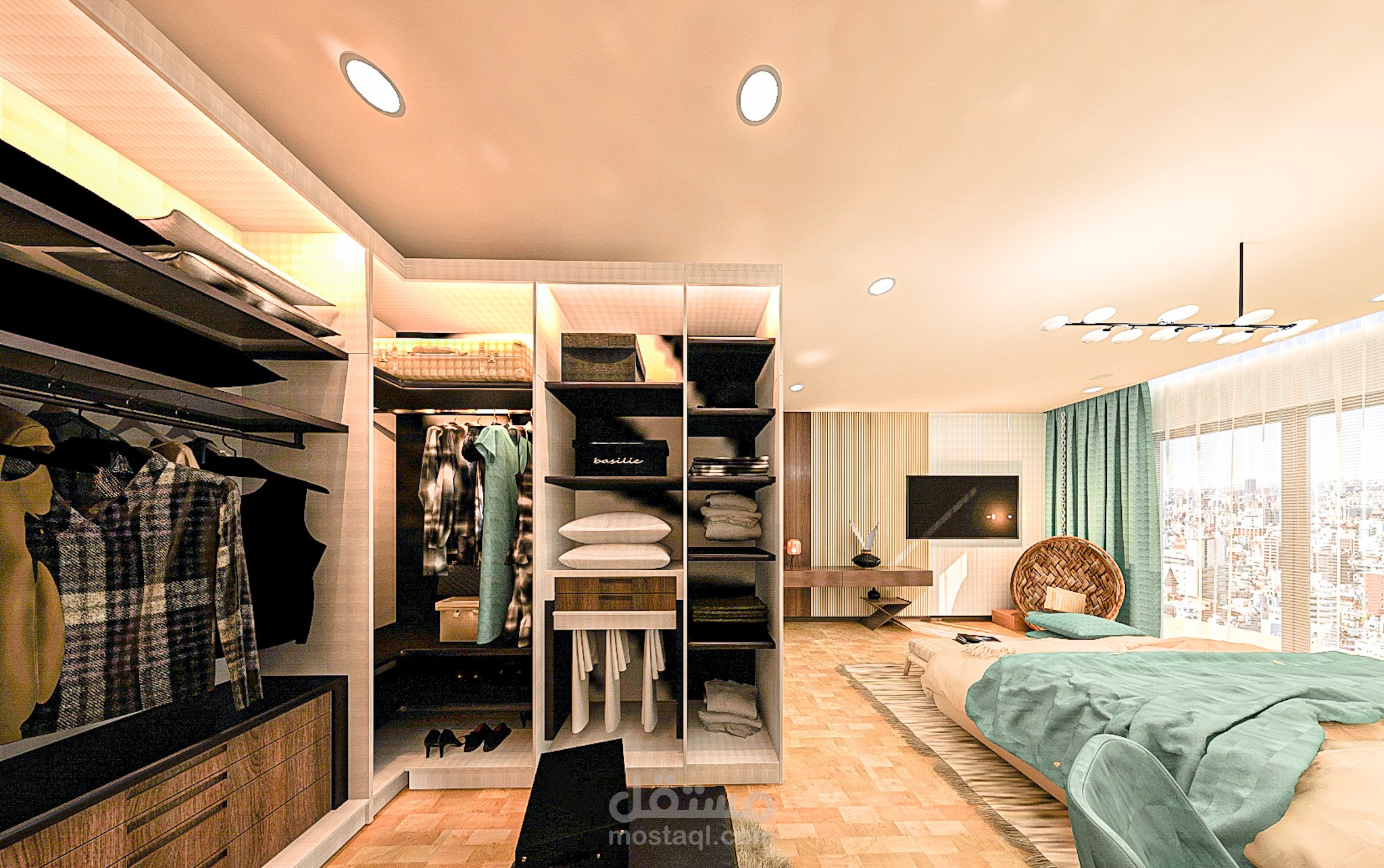تصميم غرفة نوم رئيسية ودريسنج وحمام داخلي